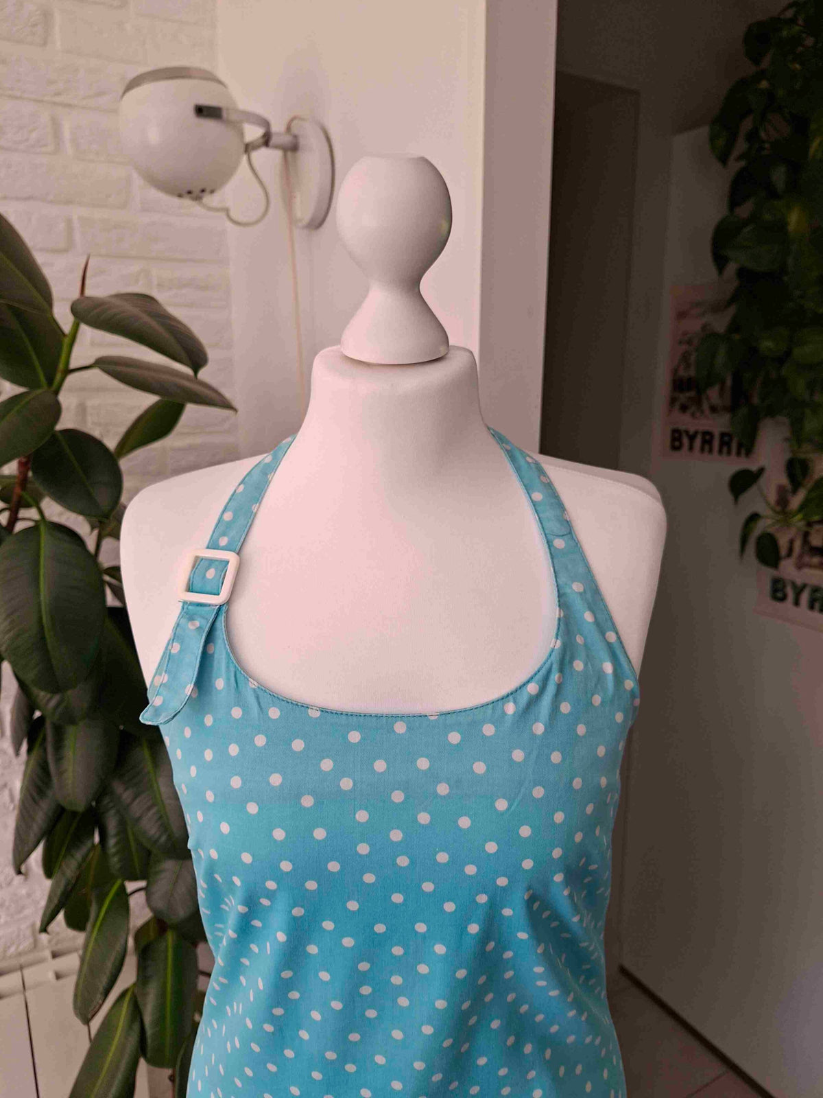En coton et élasthane turquoise et pois blancs