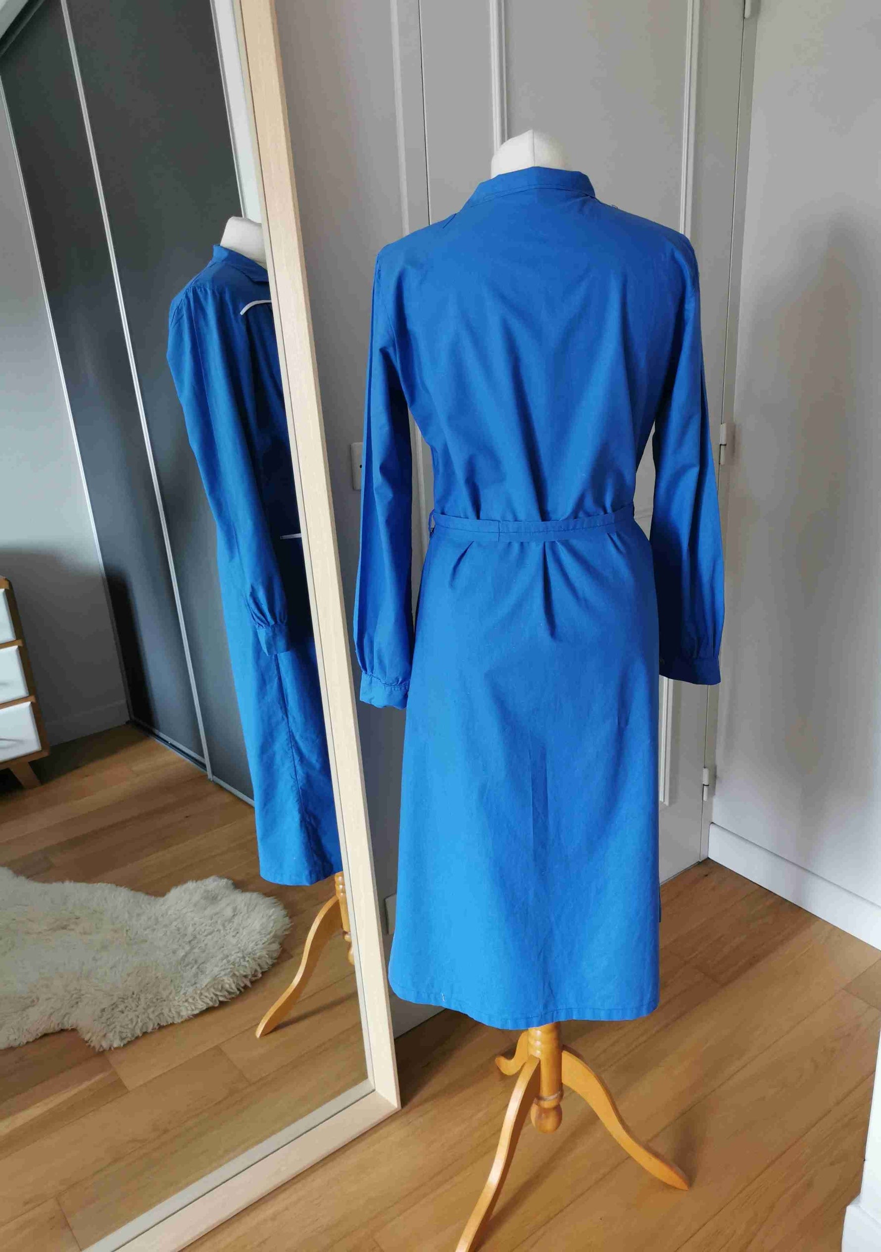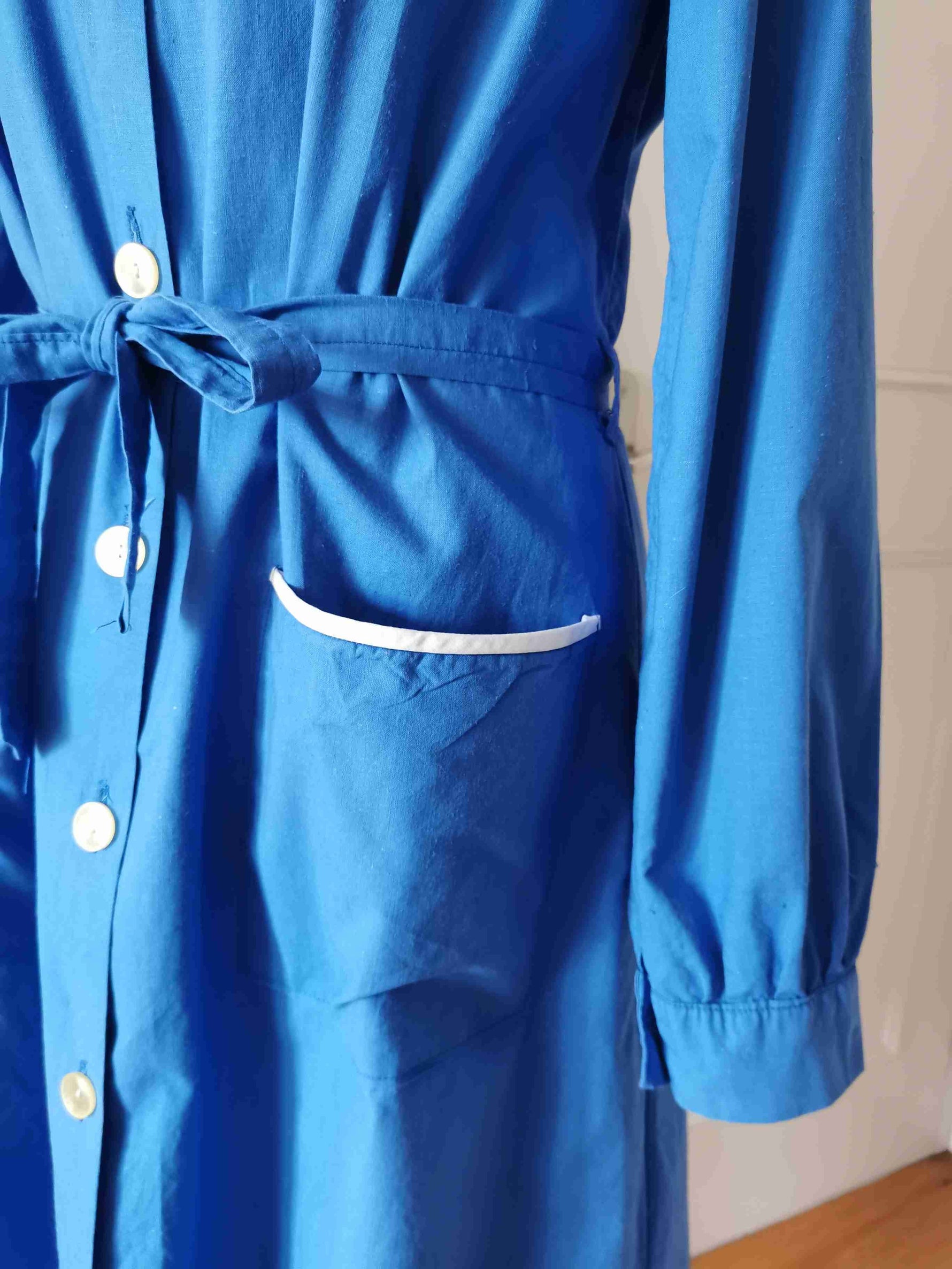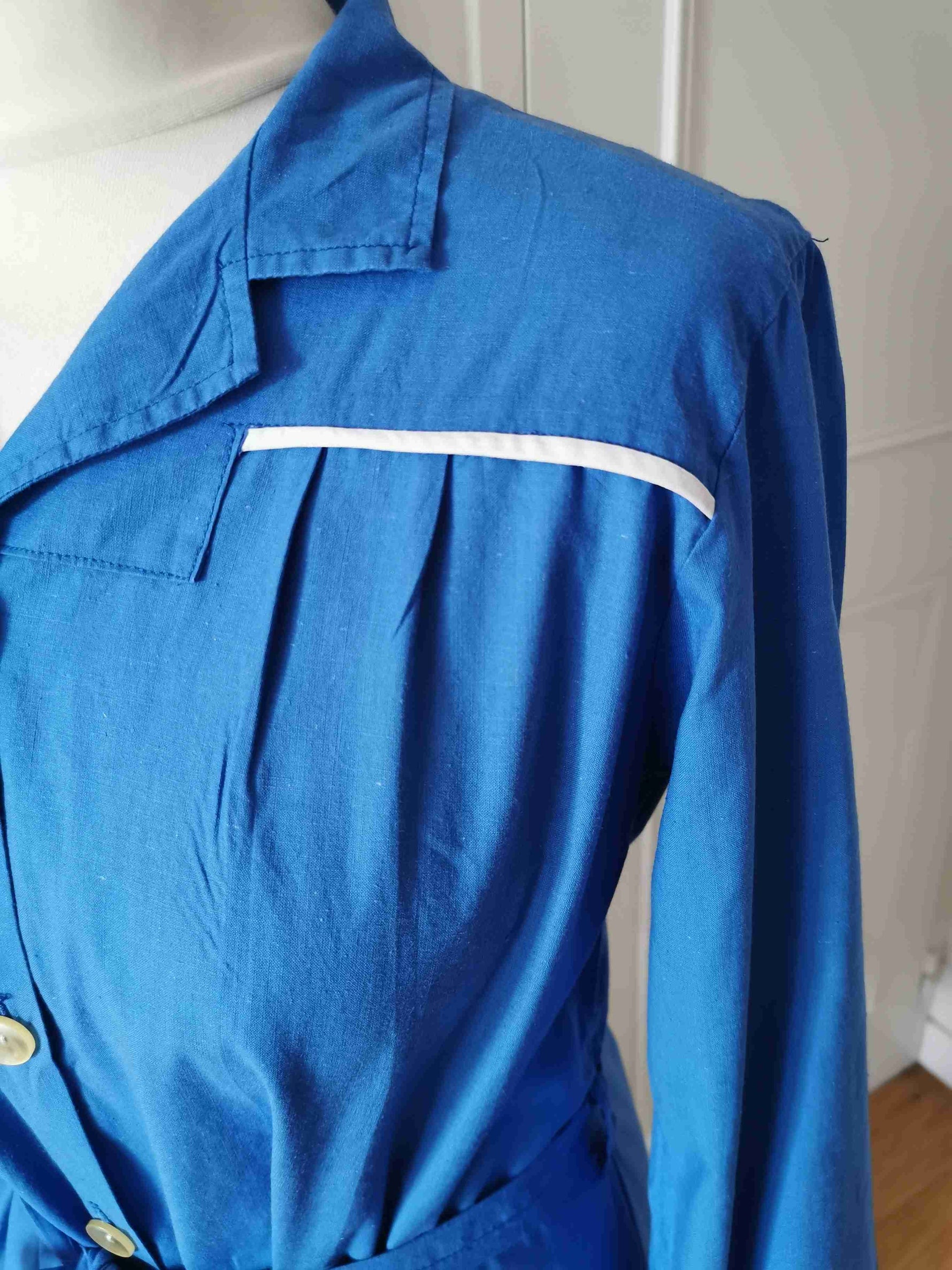 2 poches plaquées et des plis sur les épaules avec un passepoil blanc en finition.