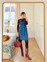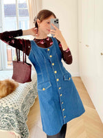 Prix unitaire parRobe en jean, boutonnée sur le devant de boutons dorés, tissu non stretch et non transparent, cintrée à la taille, légèrement évasée, col rond, portée ici sur une T36 pour 1m64