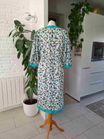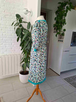 En voile de coton gaufré blanc imprimé turquoise, mauve,vert