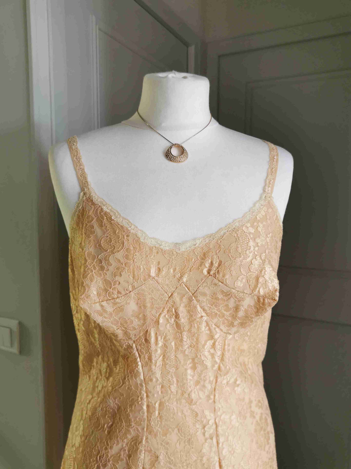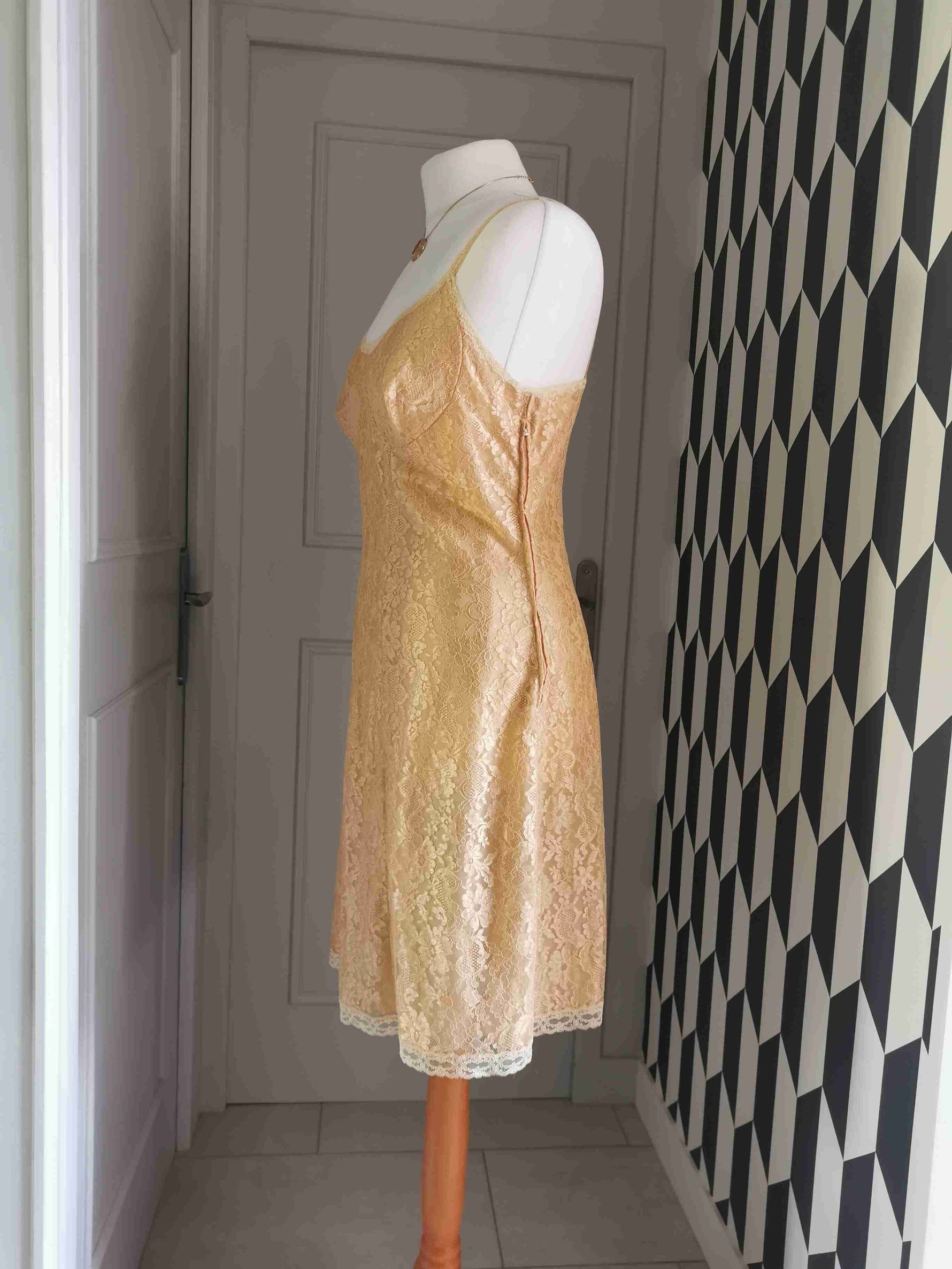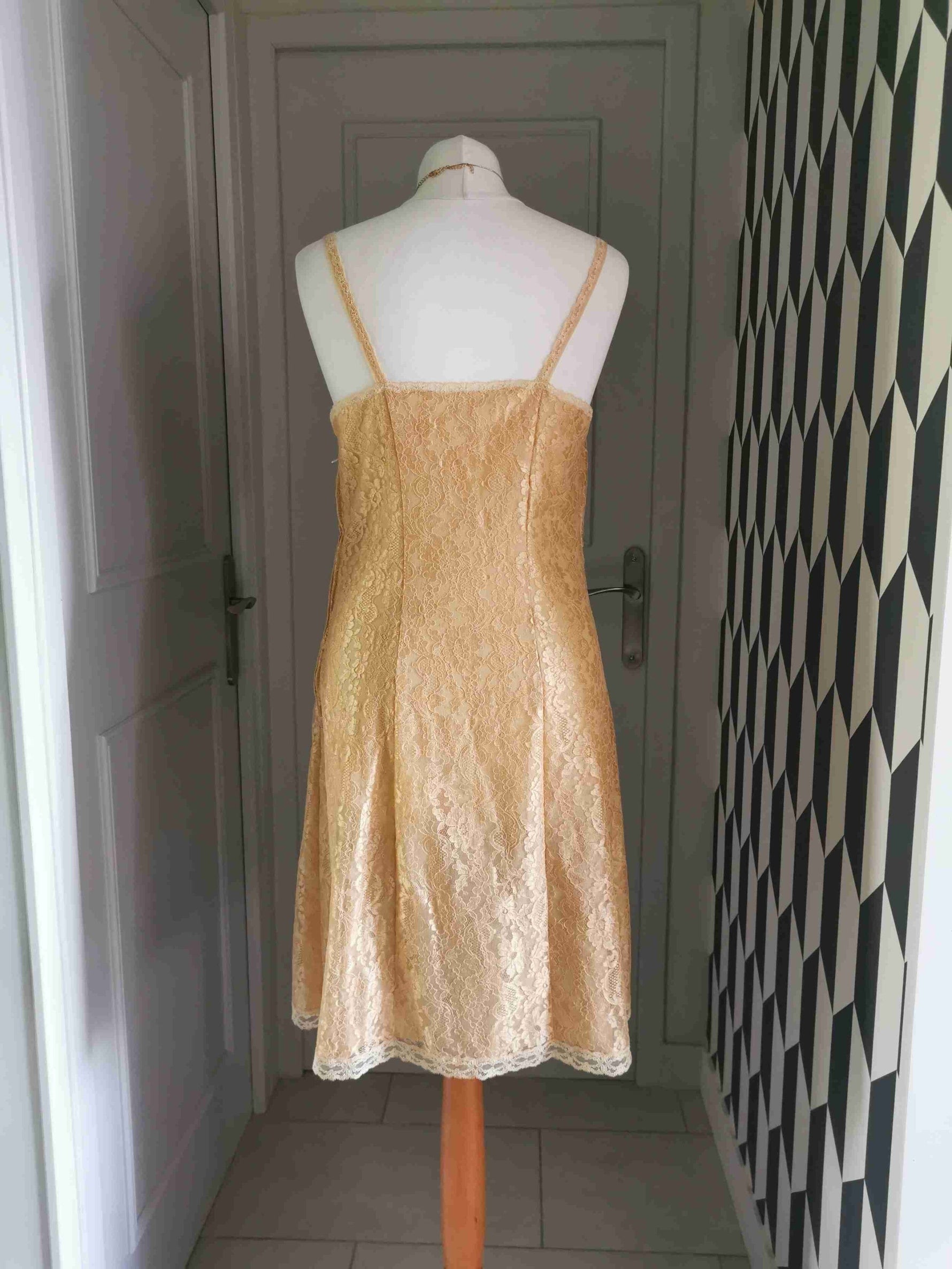 Prix unitaire parRobe nuisette en dentelle florale jaune /doré