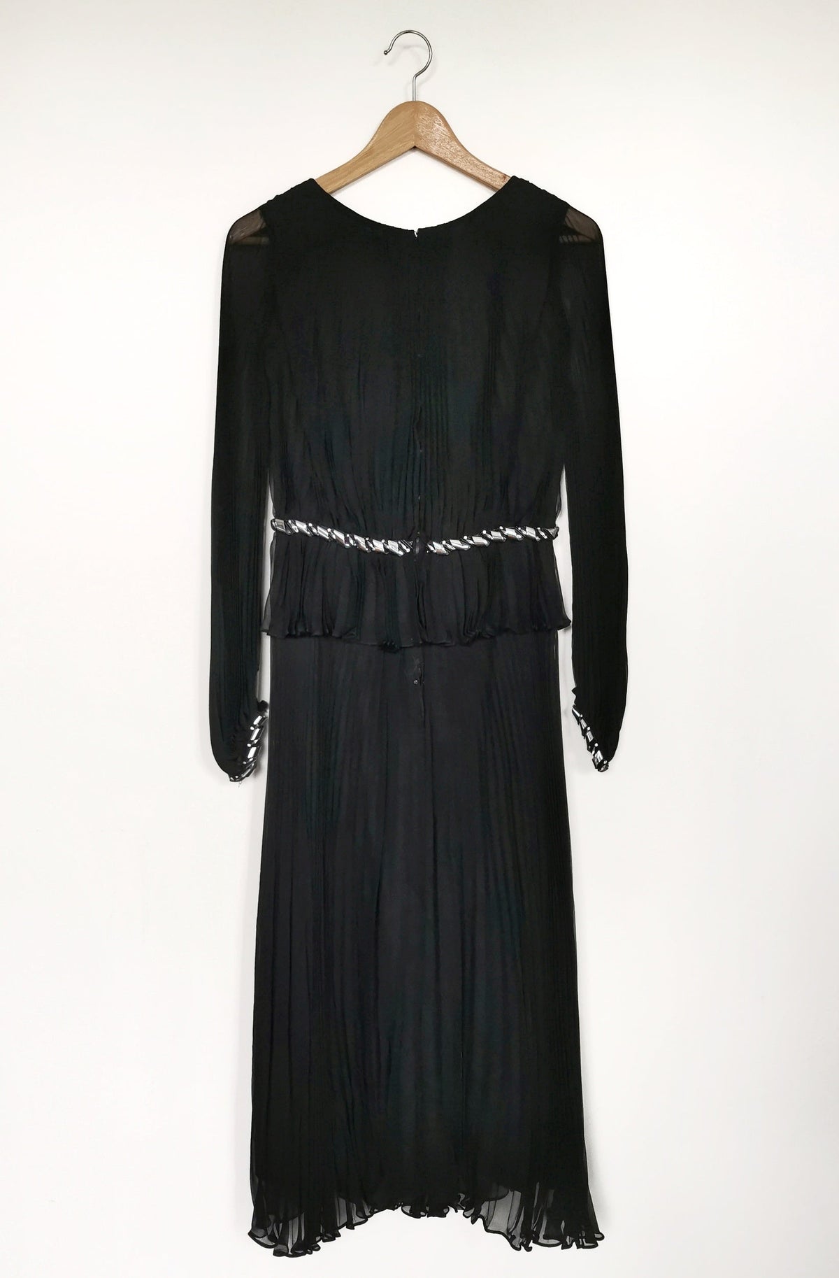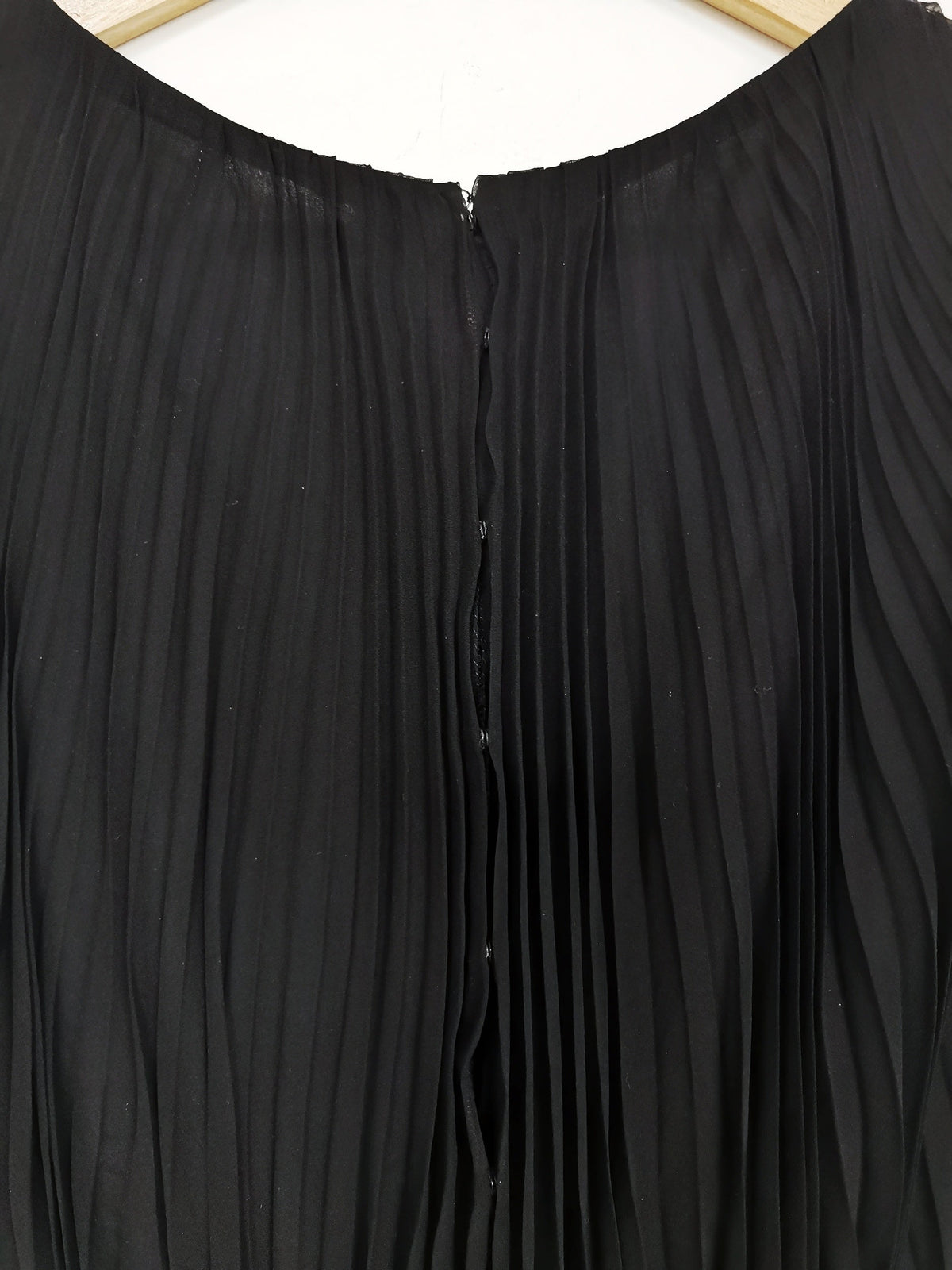 Prix unitaire parRobe plissée en mousseline de soie noire et bijoux agentés