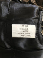 Robe courte sans manches en tweed beige et noir. Détails de ceinture simili cuir et bordures non finies. De la marque couture "Georges RECH". Poitrine 40 cm.