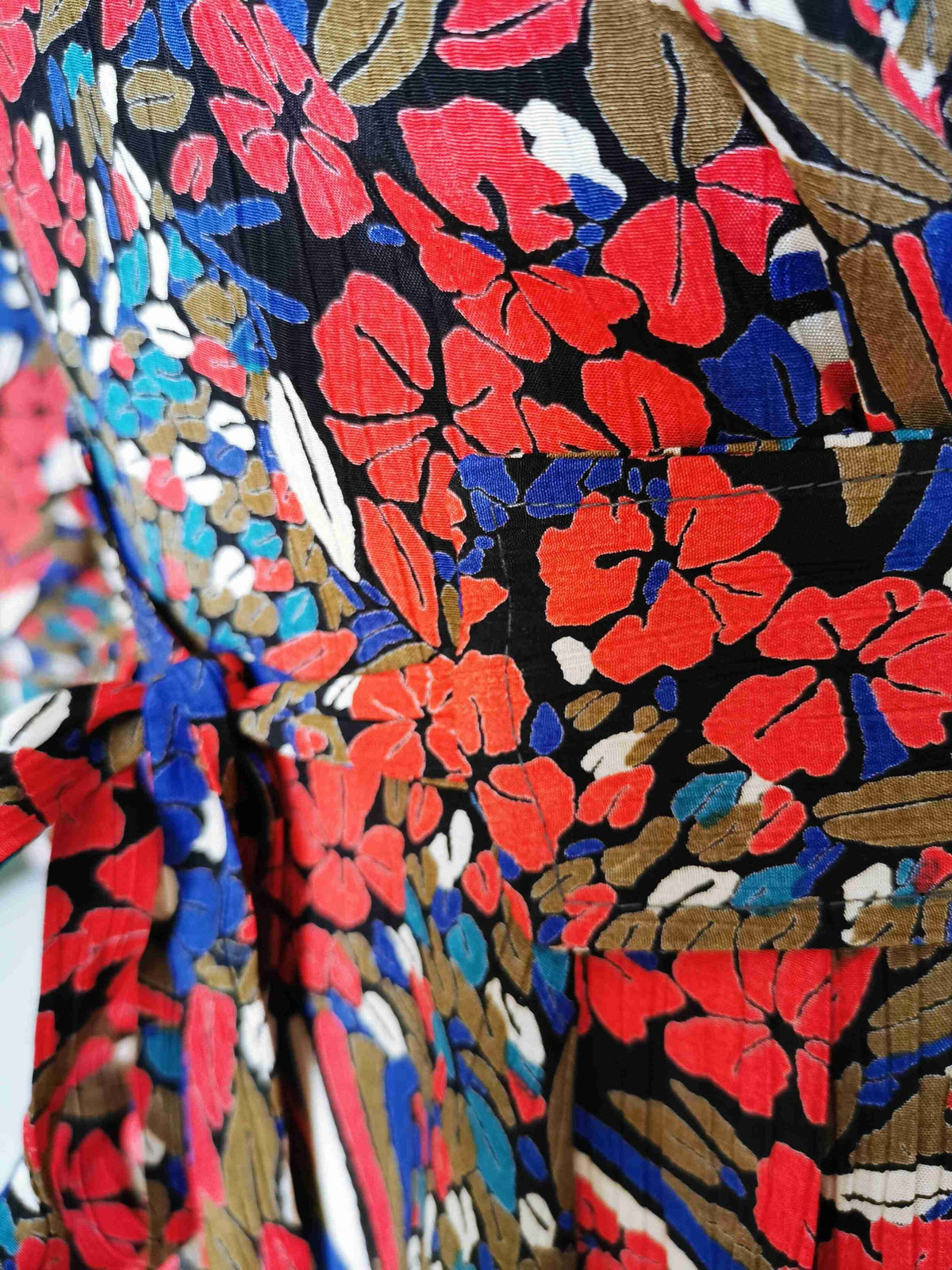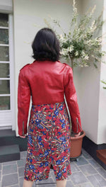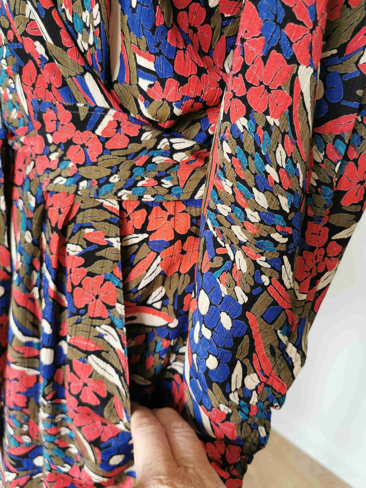 En viscose imprimée noir, bleu, rouge et crème