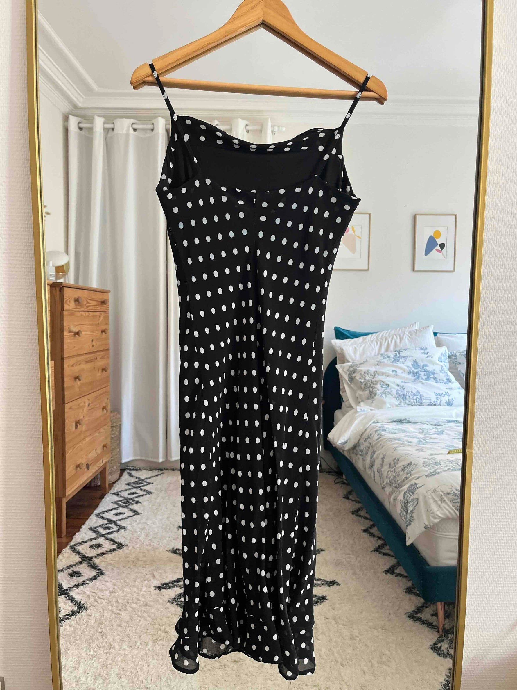 Prix unitaire parRobe midi à pois de la marque Lucy Paris, tissu entièrement doublé, bretelles non ajustables, volants en bas de la robe. Portée ici sur une T36 pour 1m64.