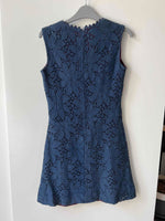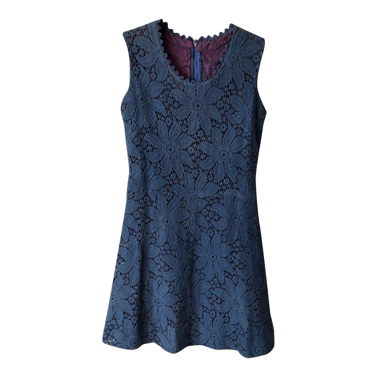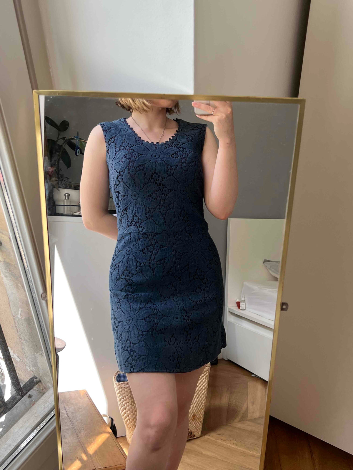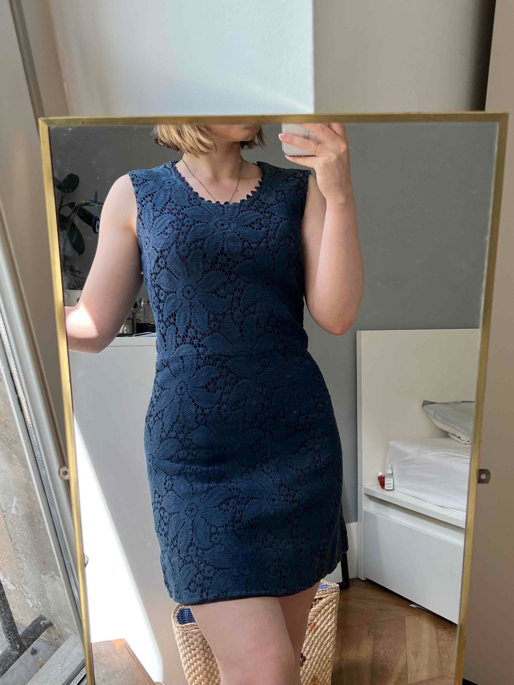 Prix unitaire parRobe mini en coton, courte en crochet bleu. Entièrement doublée. Taille 36. Cousue main. Années 70's