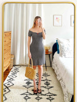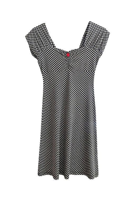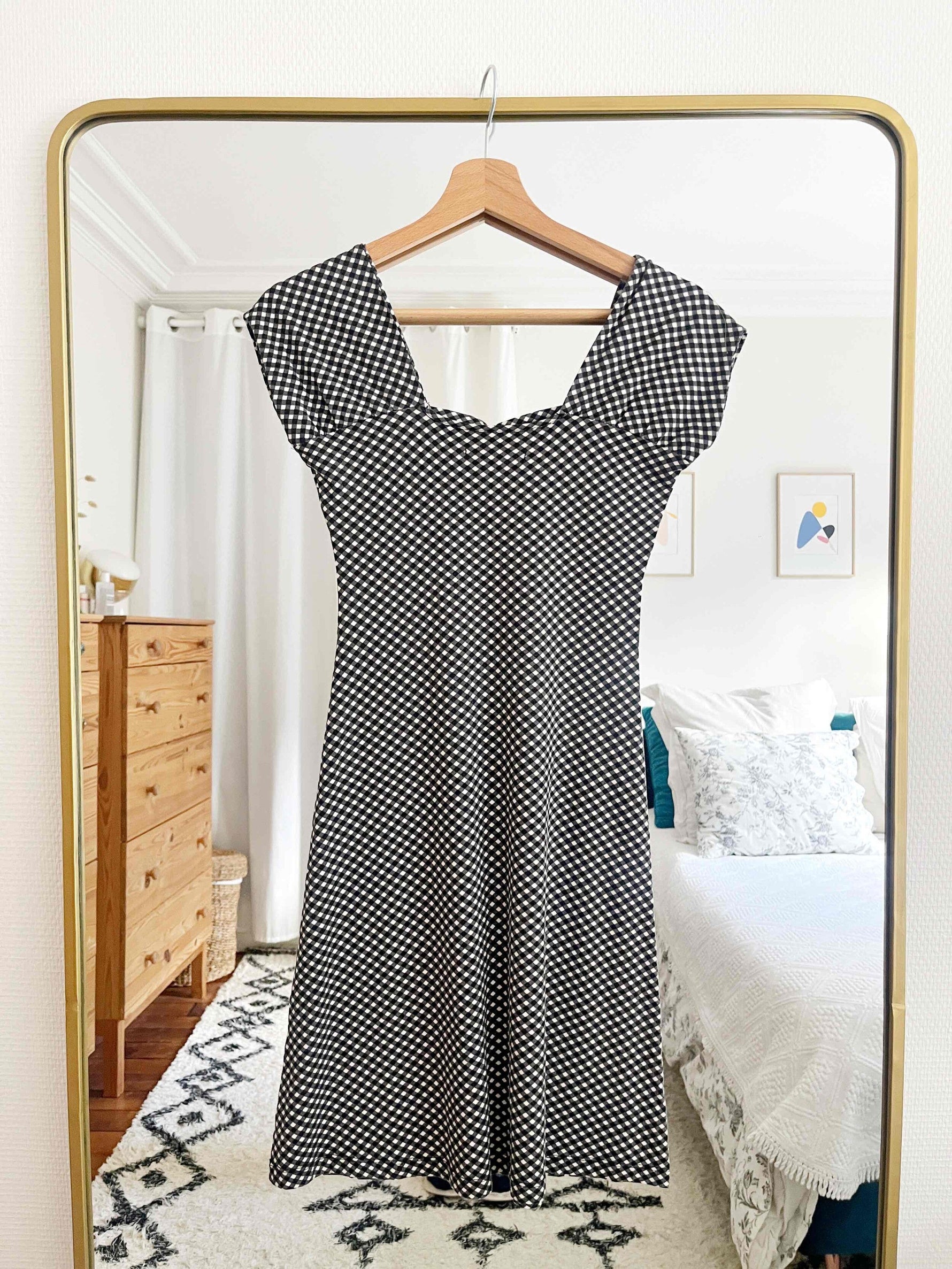 Prix unitaire parRobe vichy, tissu stretch sans transparence, col Bardot, petite rose sur le décolleté, portée ici sur une T36 pour 1m64