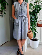 Forme droite cintrée par sa ceinture assortie à nouer devant