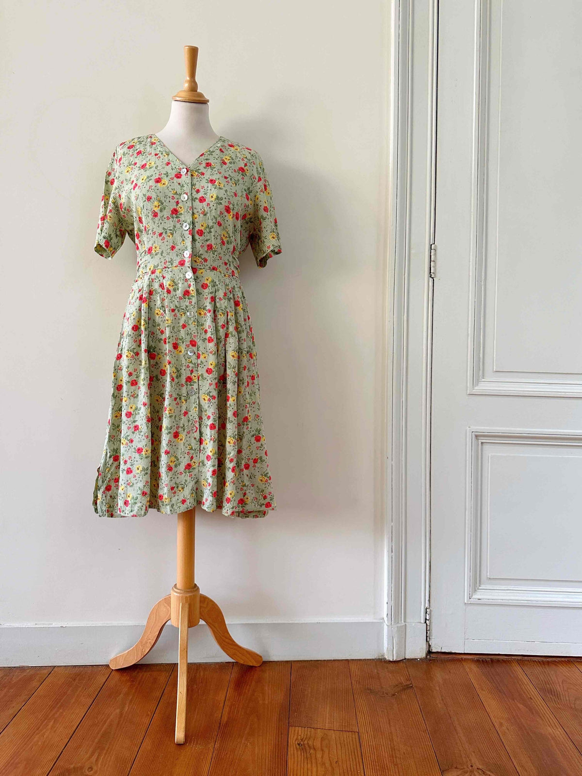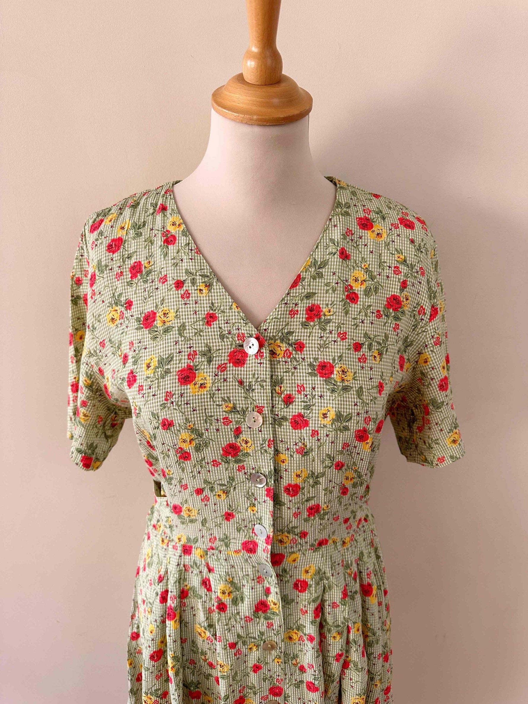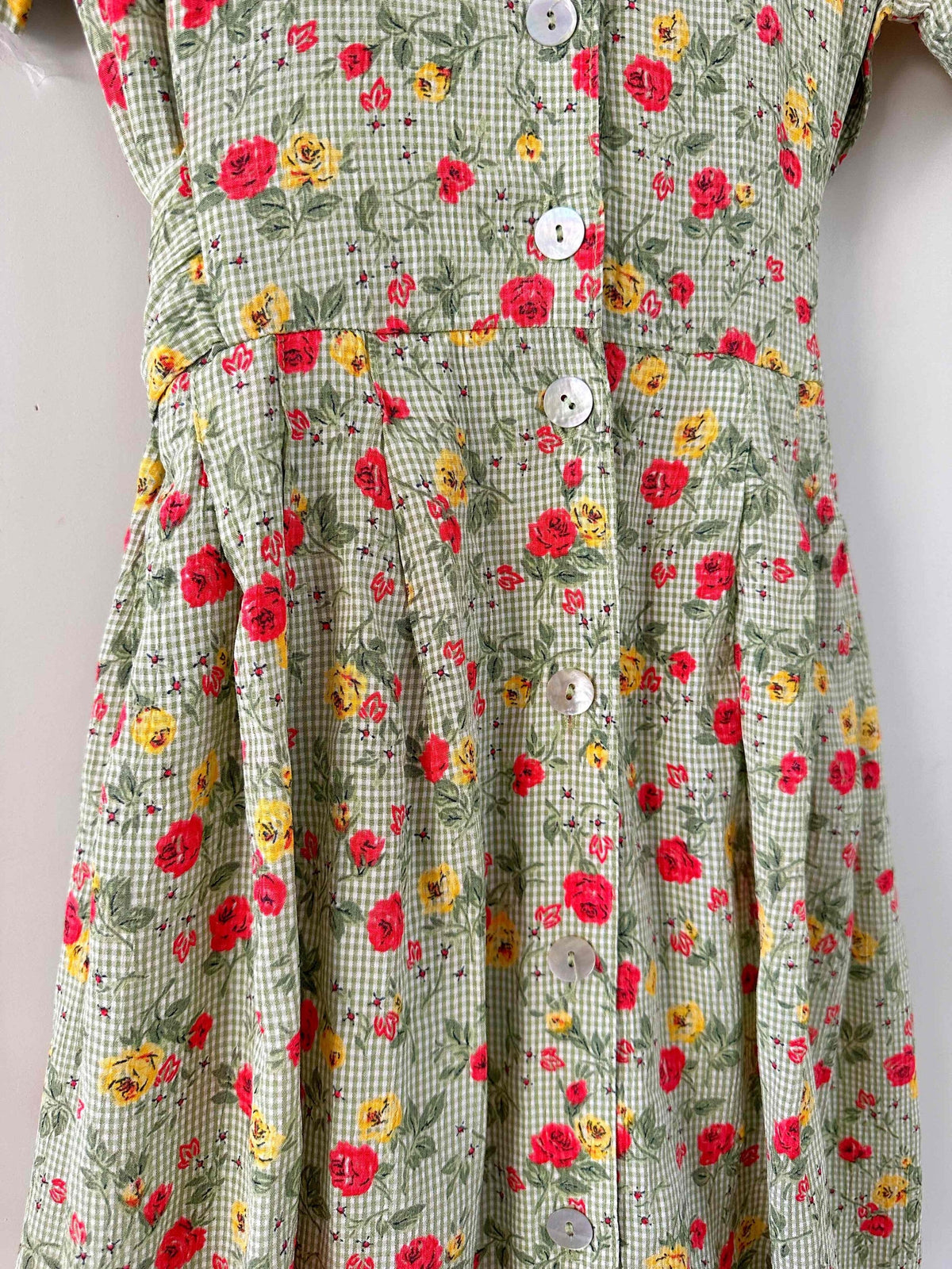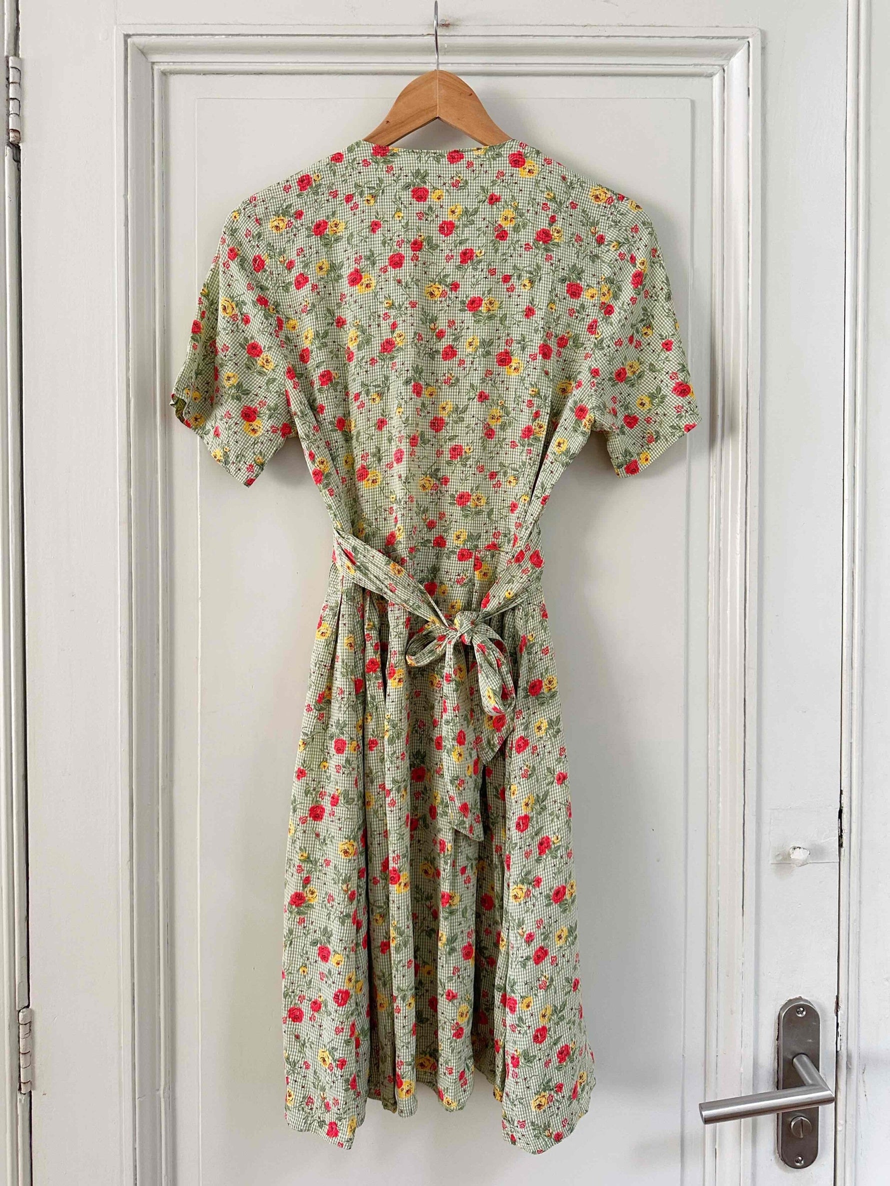 Prix unitaire parRobe vichy et fleurs, en viscose motifs vichy vert pistache et fleurs rouges et jaunes.