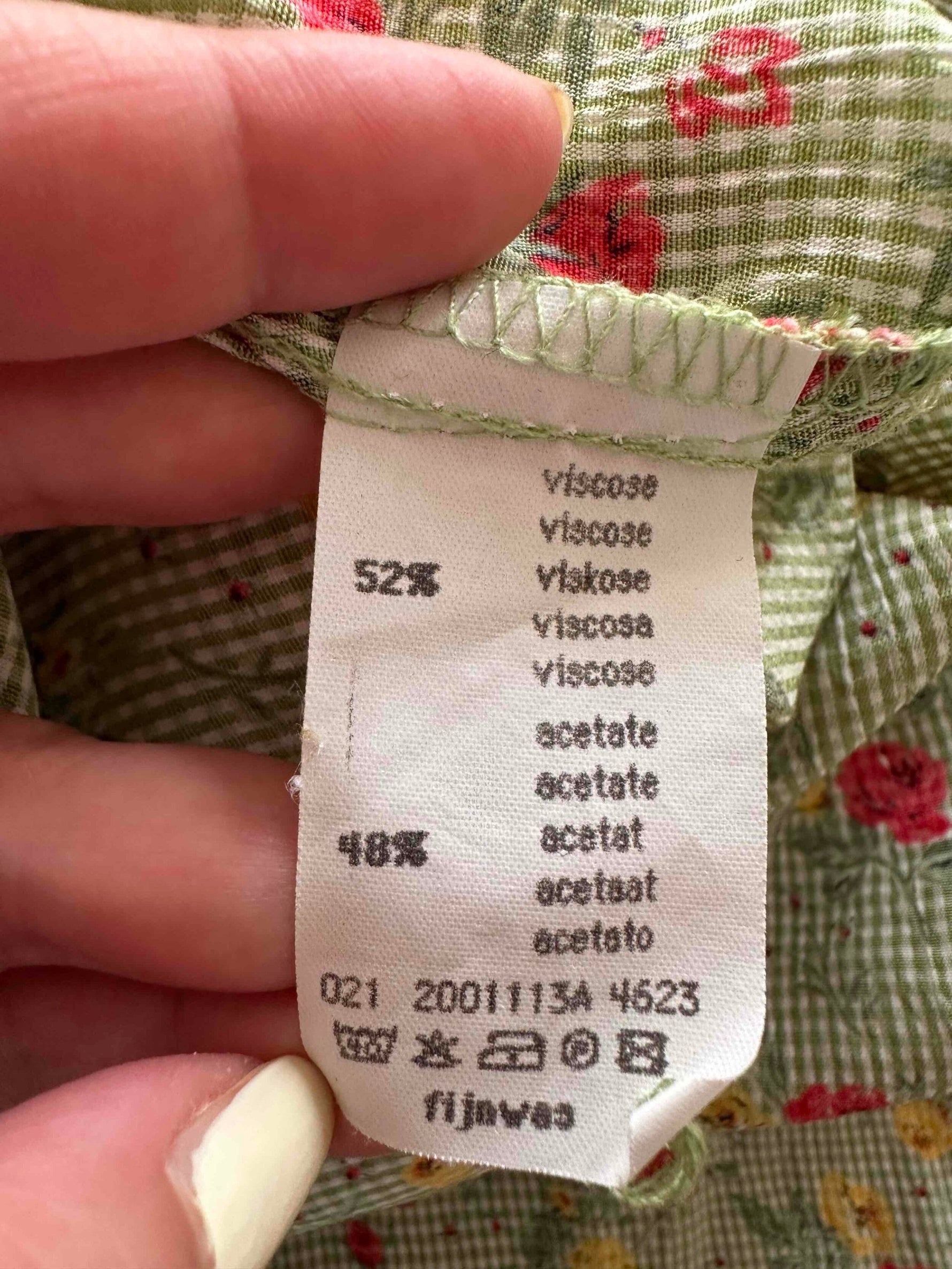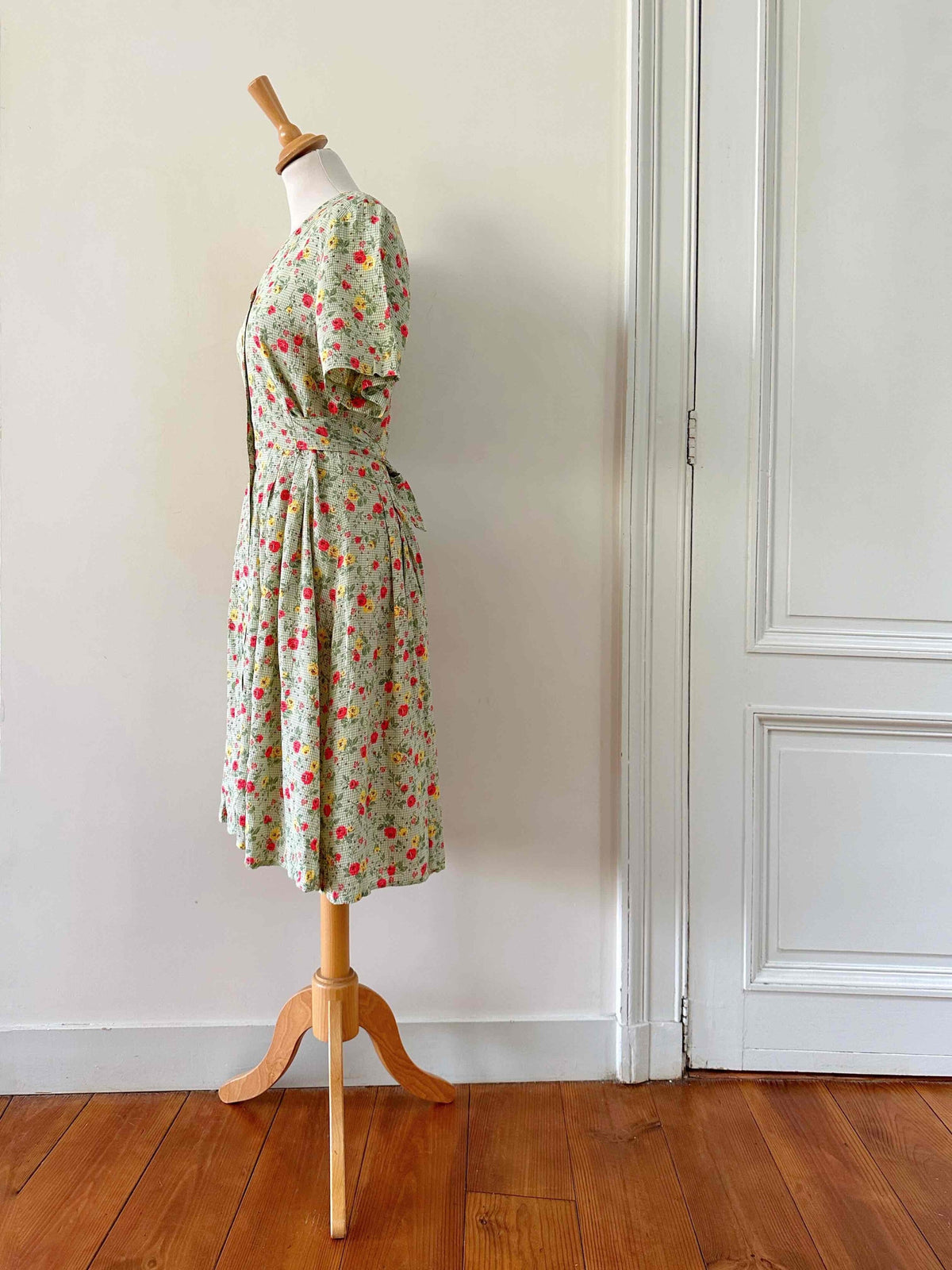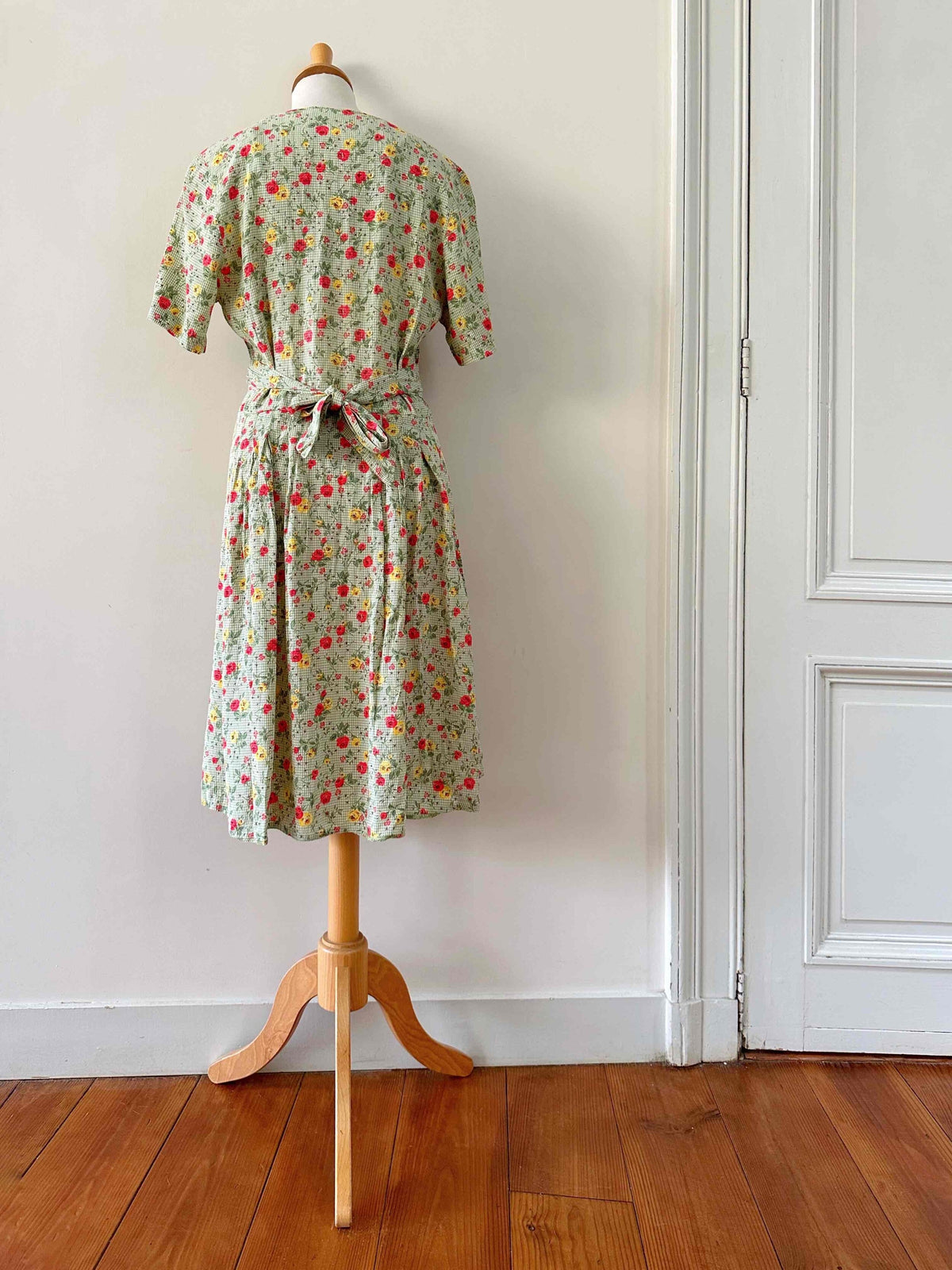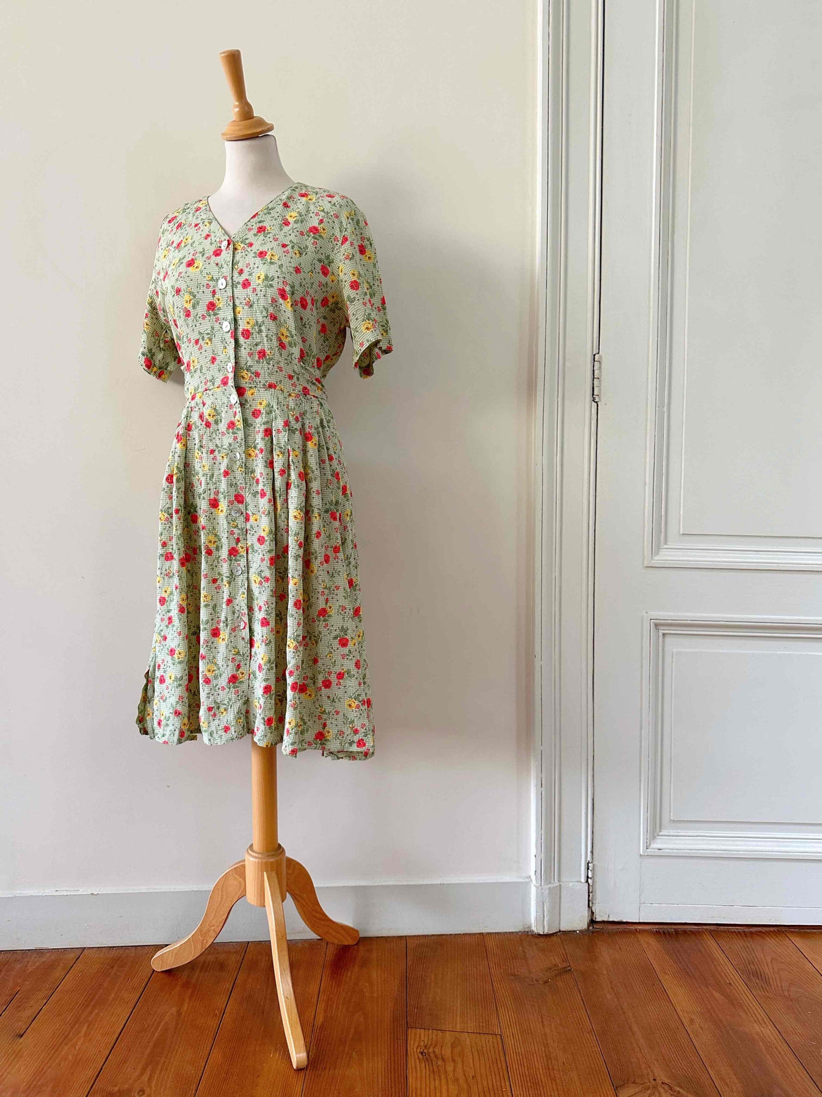 Prix unitaire parRobe vichy et fleurs, en viscose motifs vichy vert pistache et fleurs rouges et jaunes.