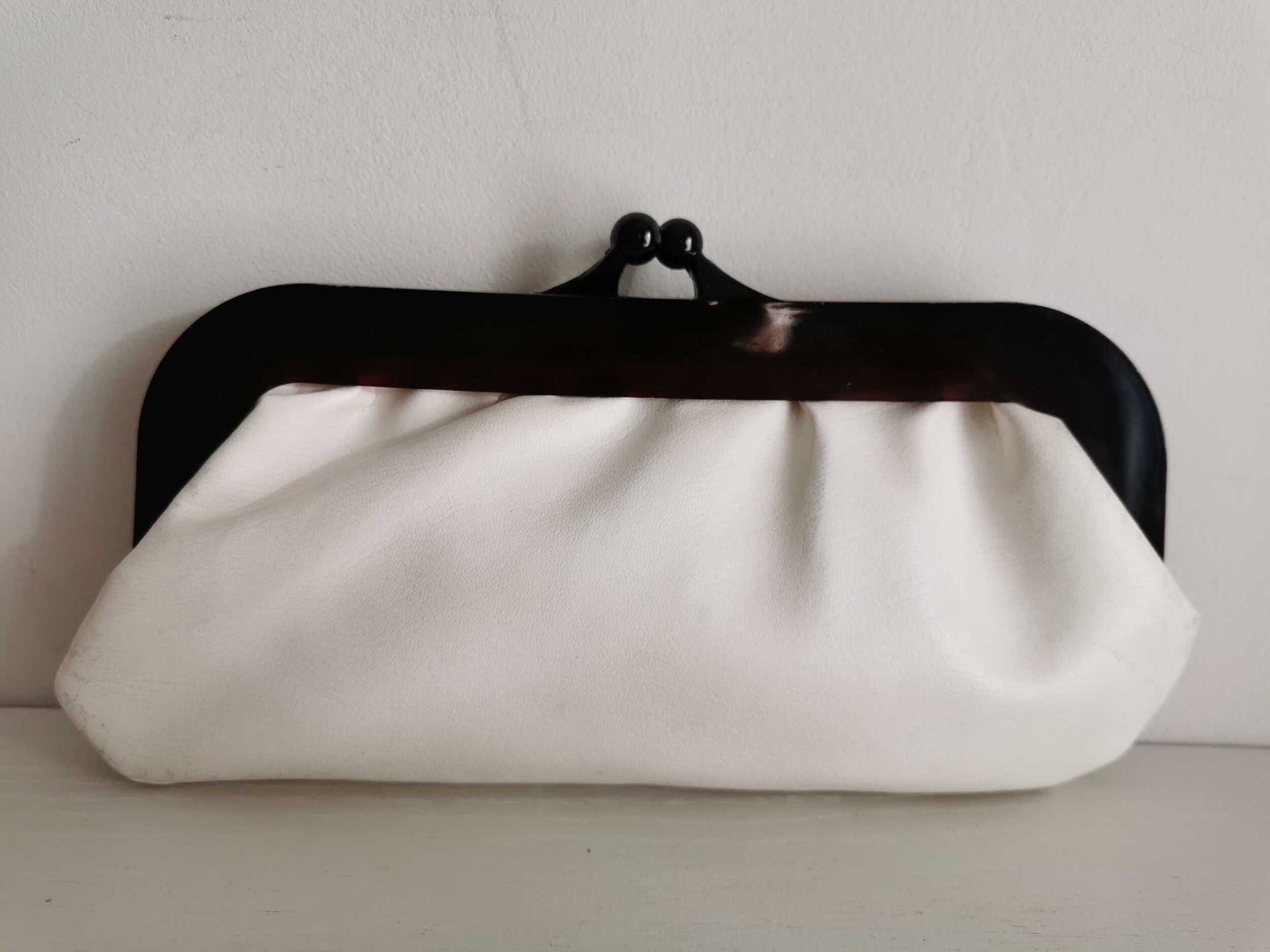Prix unitaire parPochette 60's en simili cuir blanc et plastique, fermeture " porte monnaie "