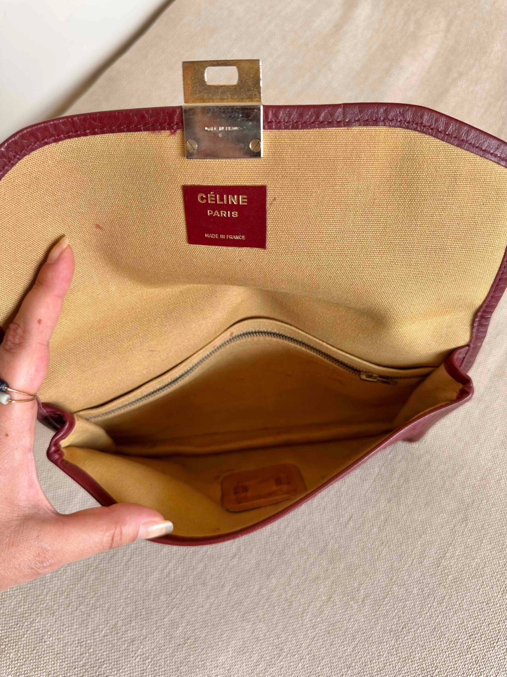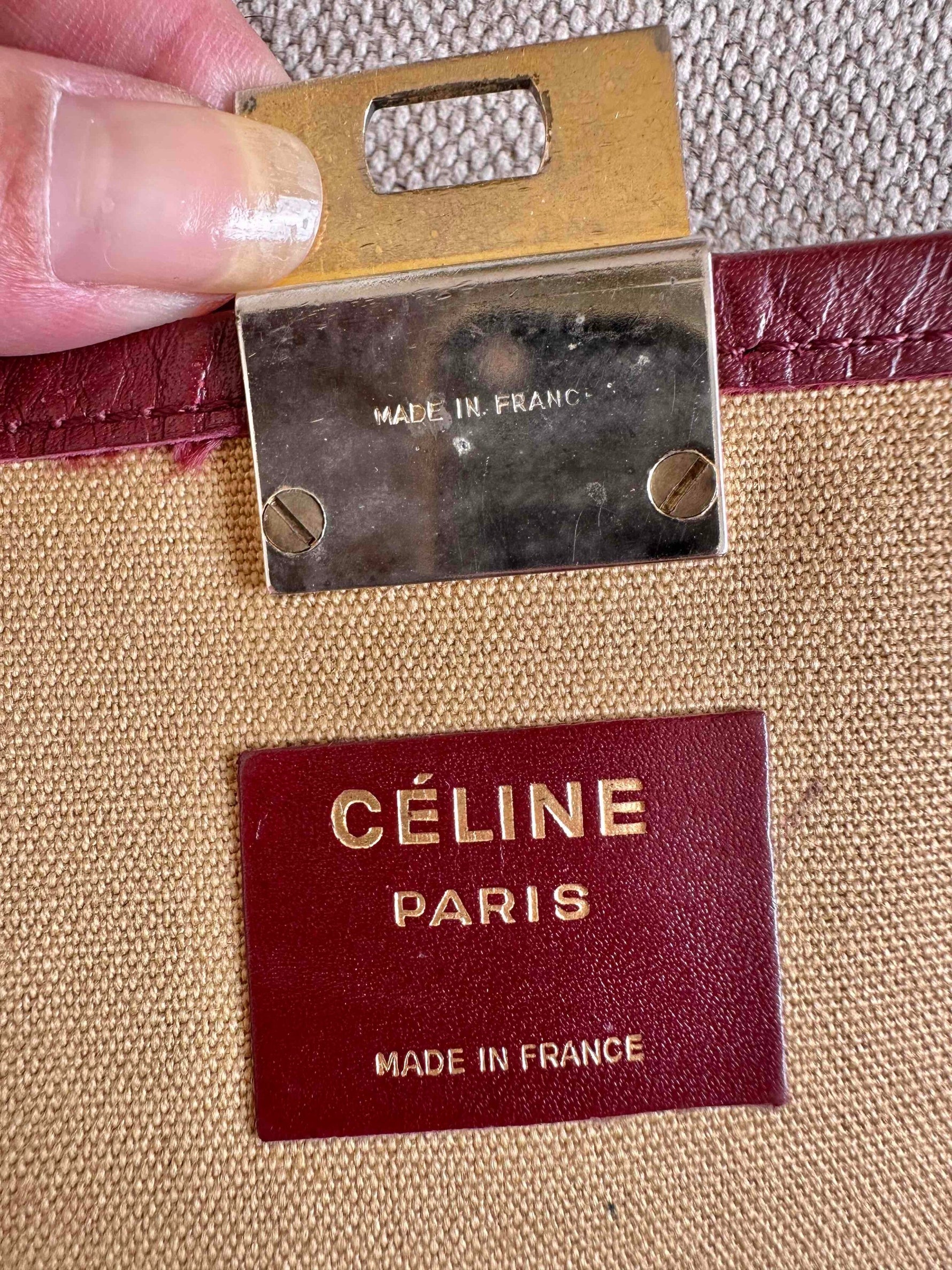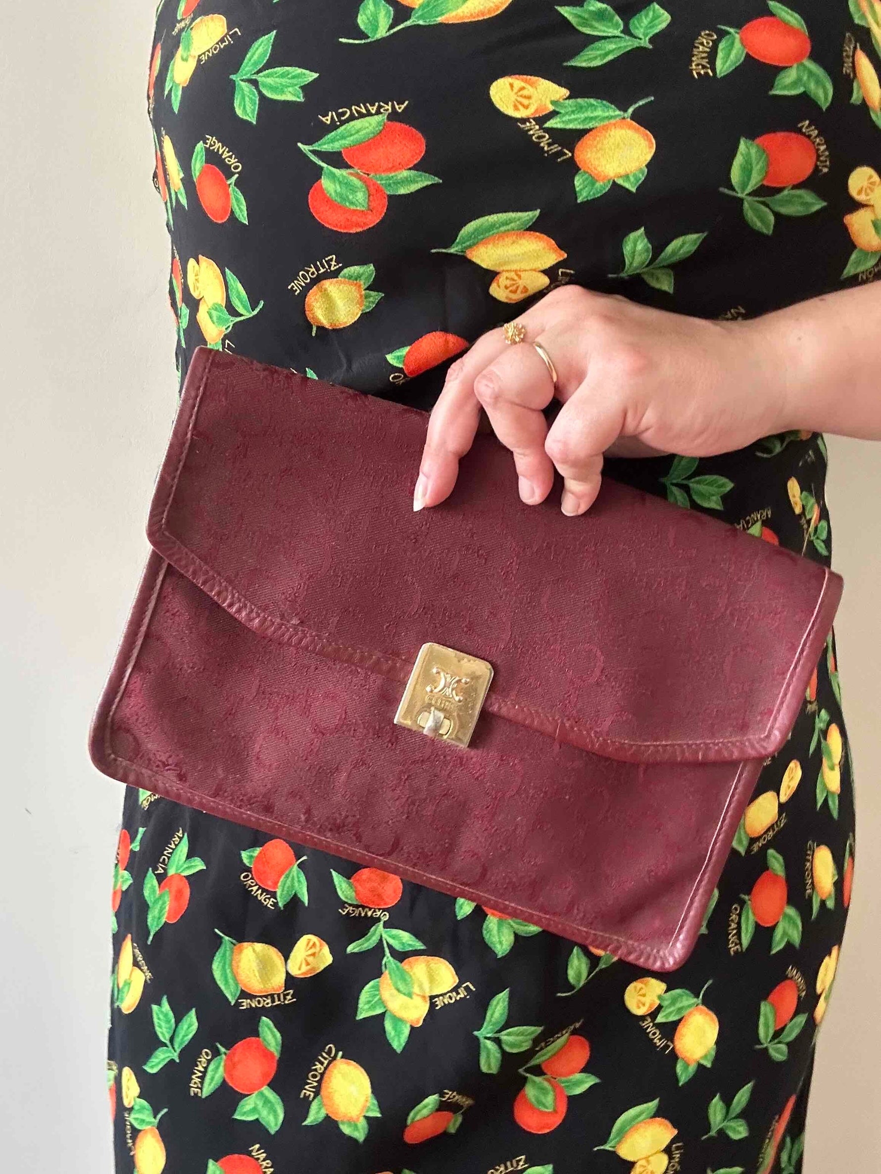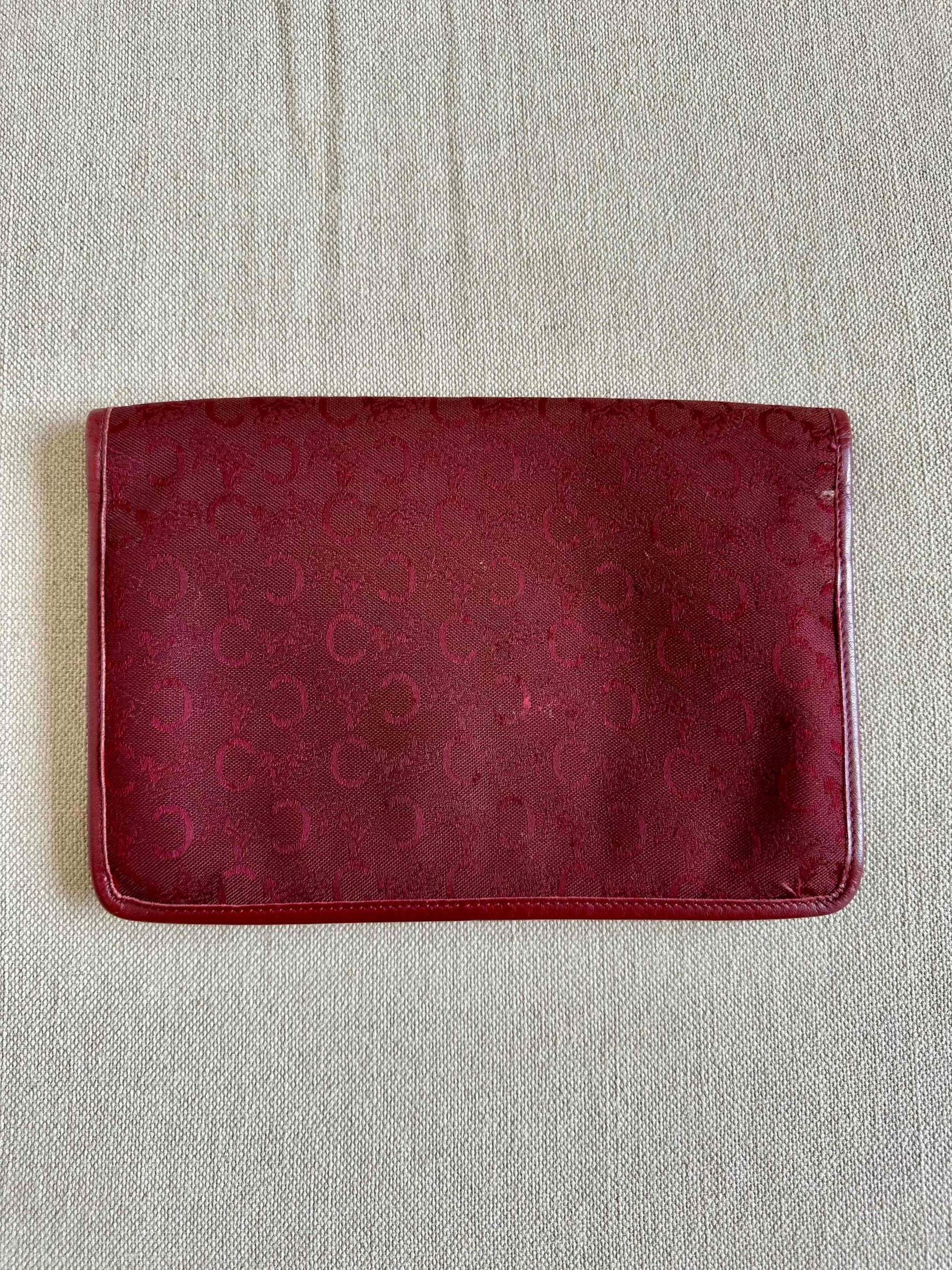 Prix unitaire parPochette Céline, en toile monogrammée rouge bordeaux, et bordures ganses en cuir rouge bordeaux.