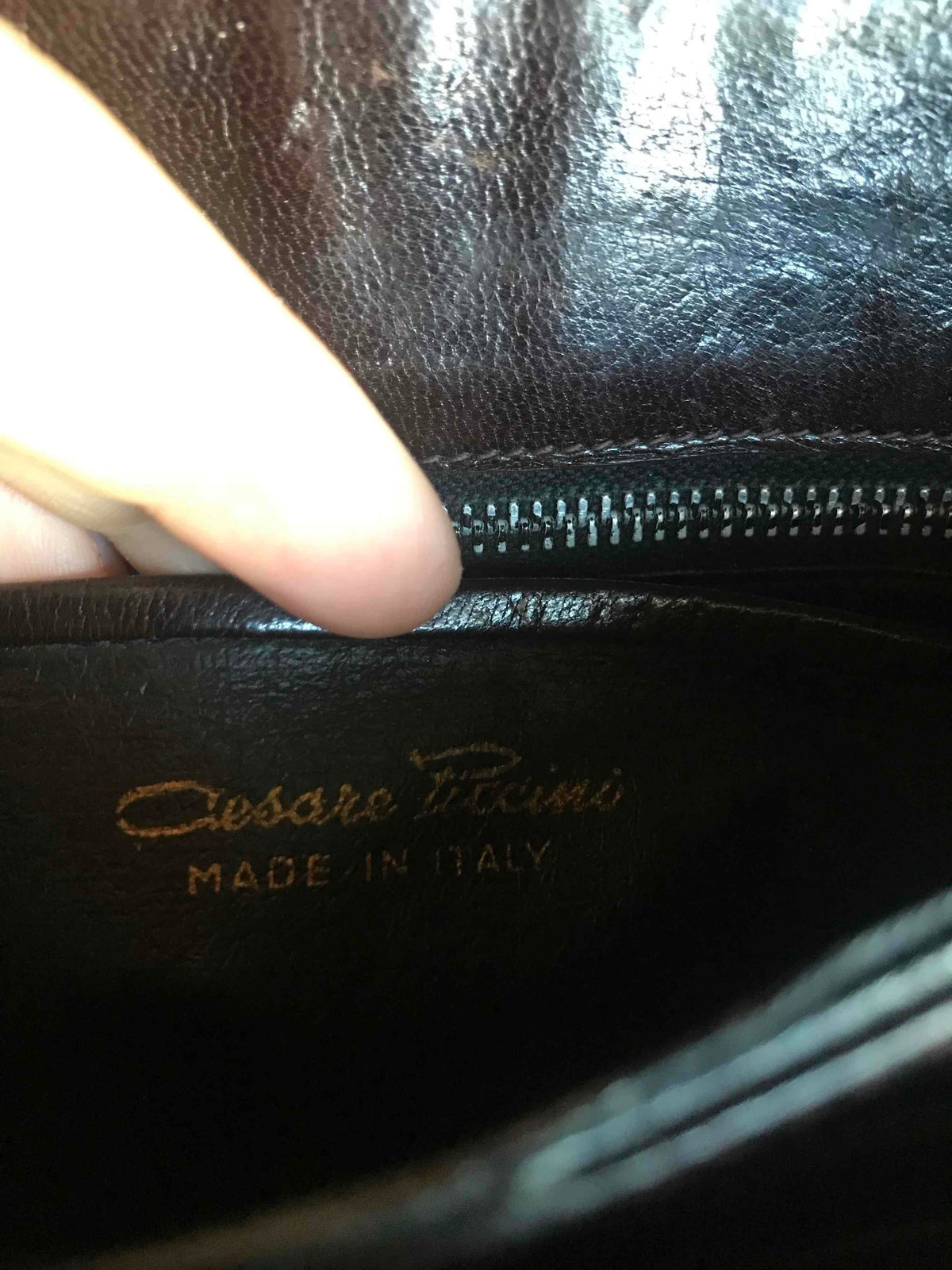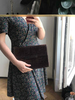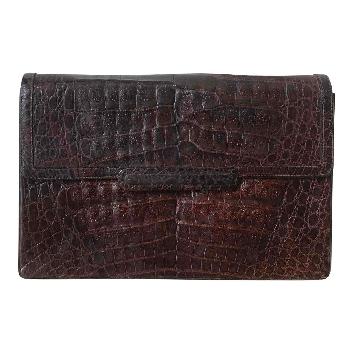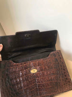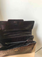 Prix unitaire parPochette à main en cuir exotique de crocodile dans un joli ton de marron foncé. Fermoir ancien. Made in Italy, de la marque Cesare Puccini. Joli détail de cuir, compartiments intérieurs.