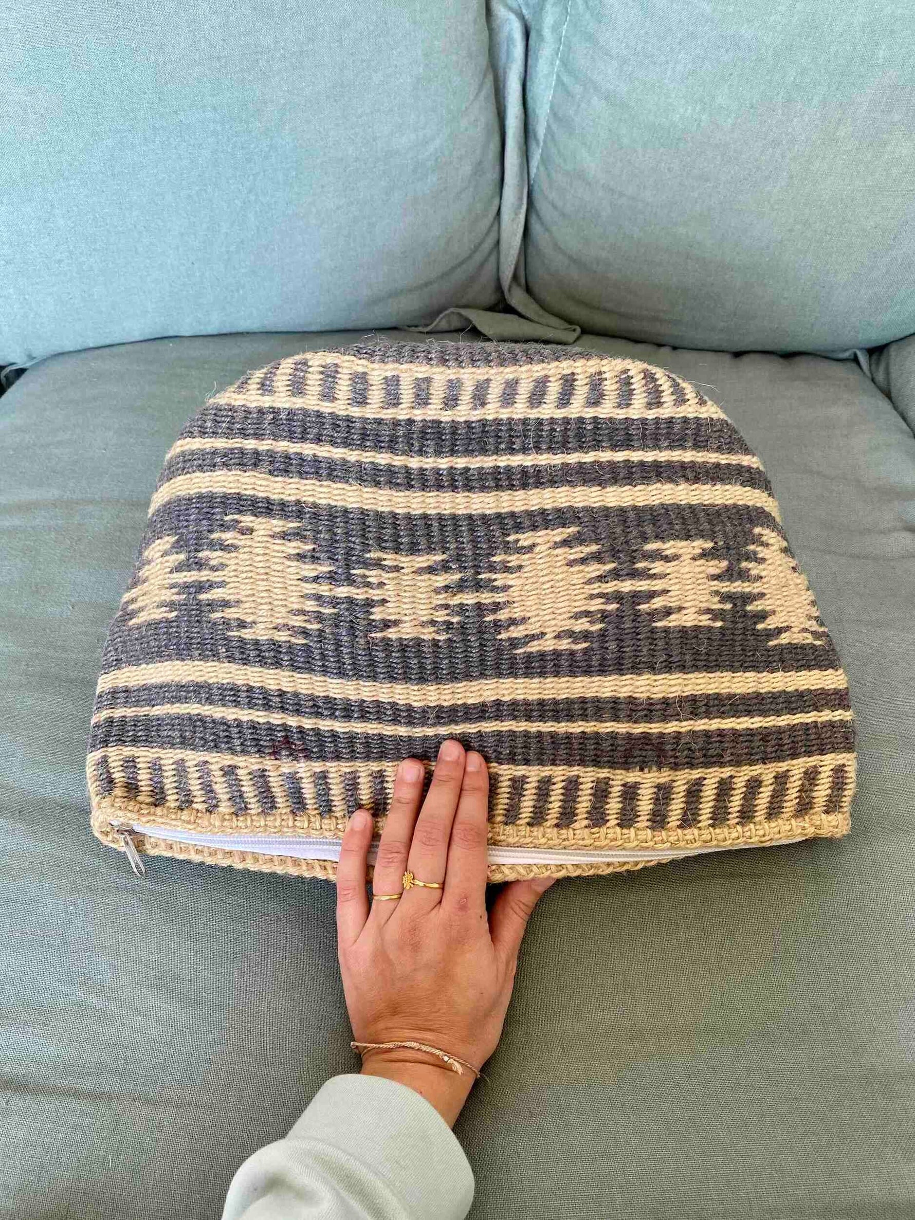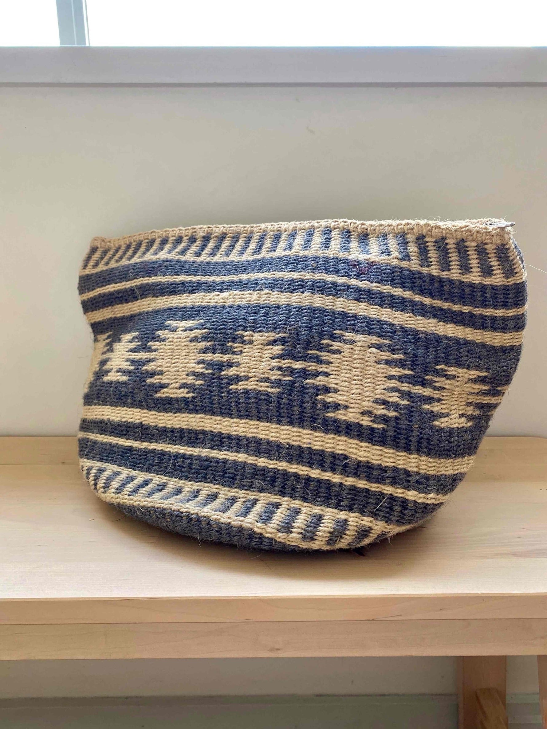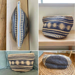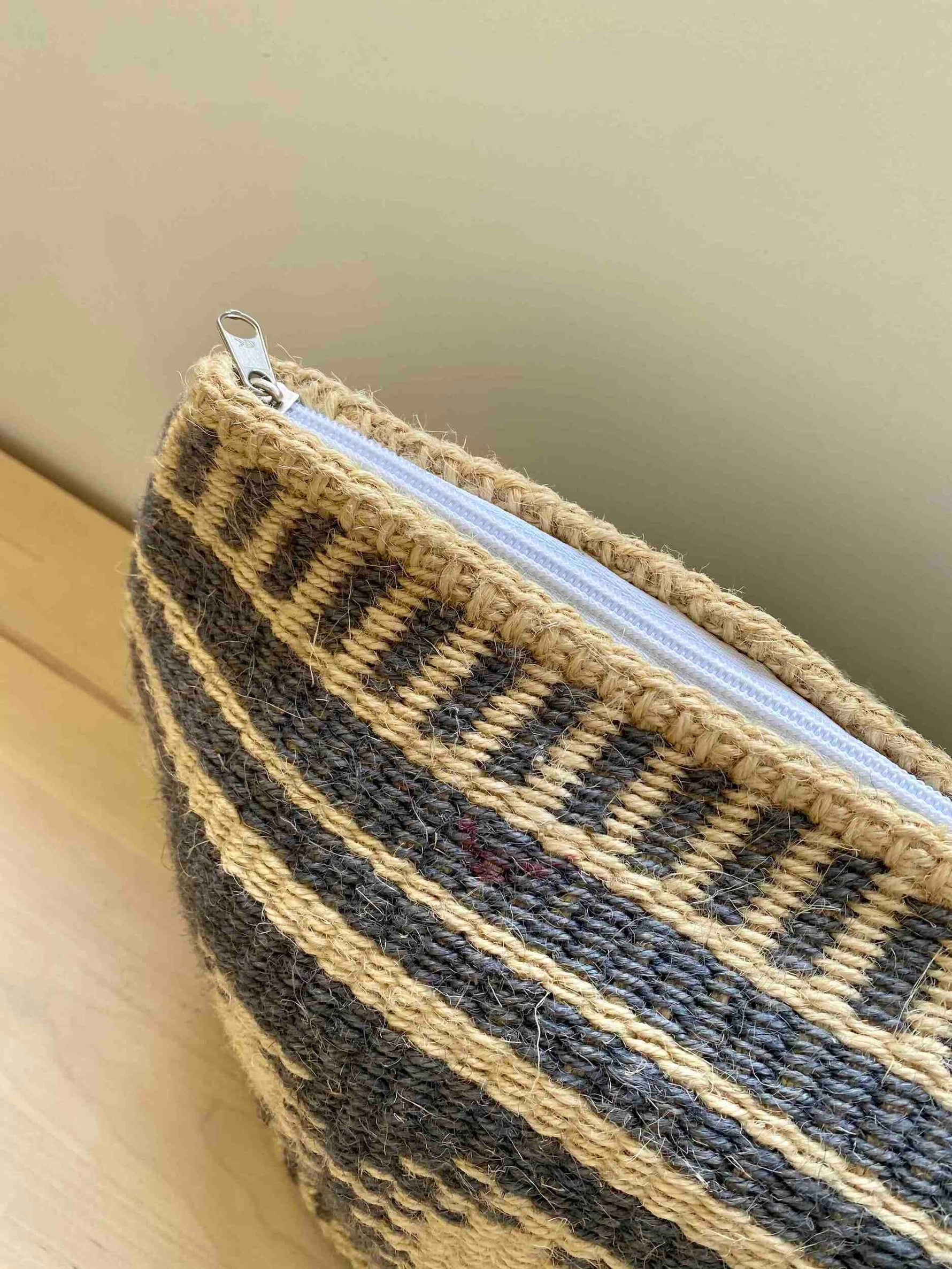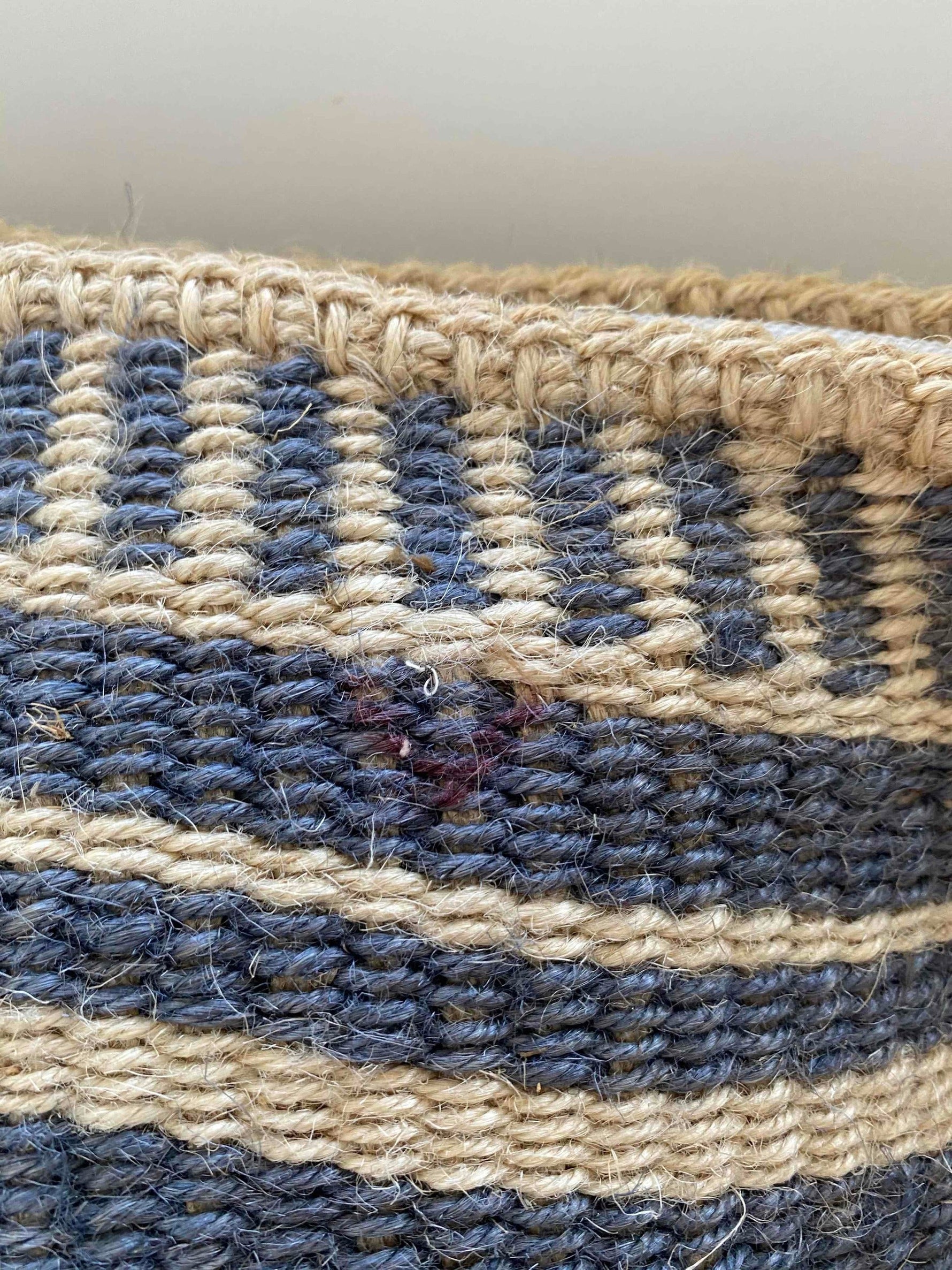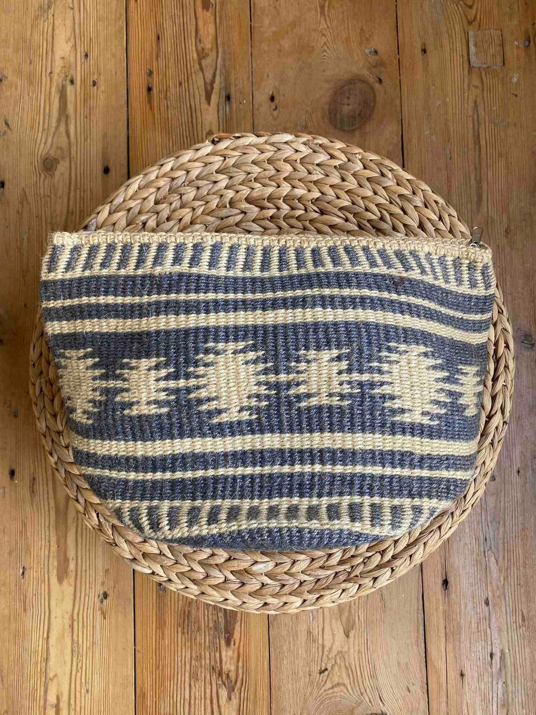 Prix unitaire parGrande pochette en sisal, à porter main, gris et beige naturel, doublure. Années 70’s.