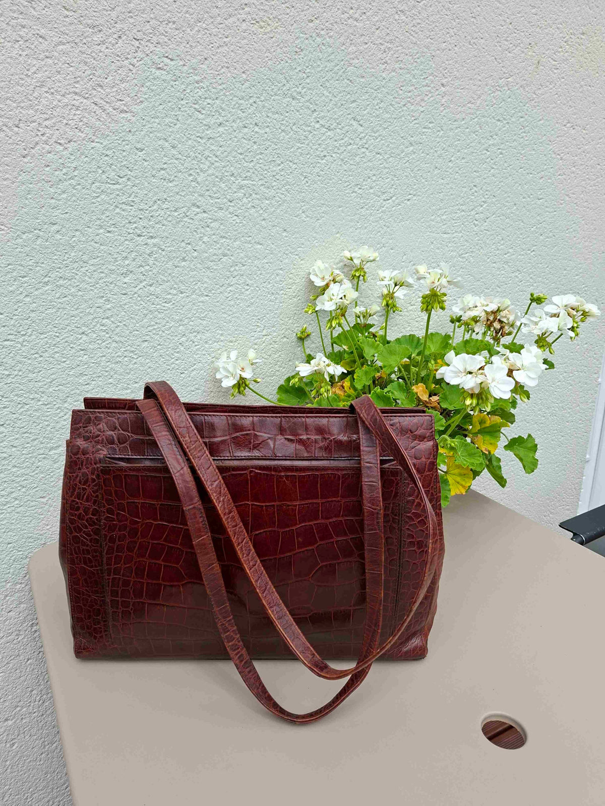 Prix unitaire parSac cabas Sylvain Lefebvre en cuir marron imprimé croco