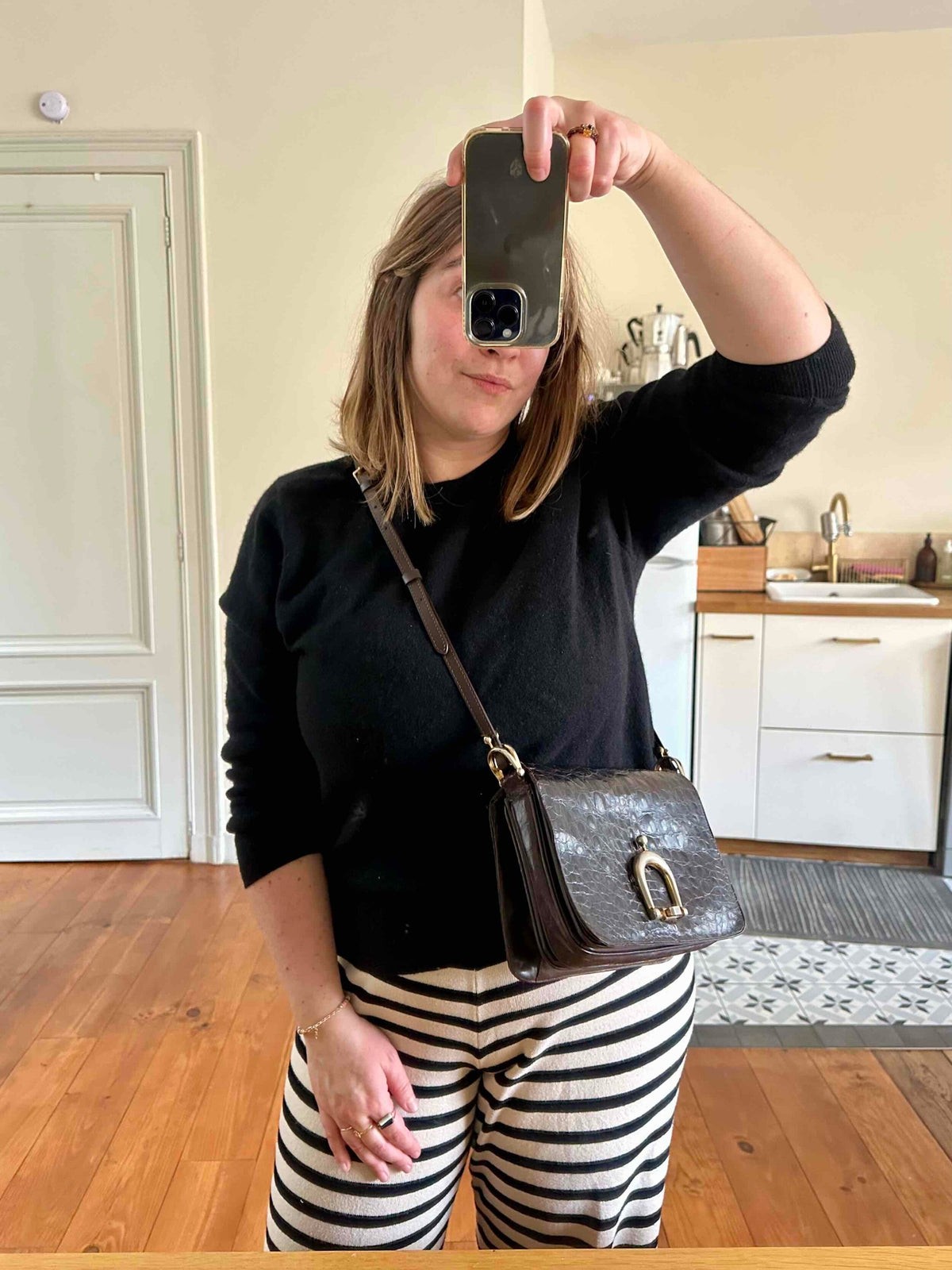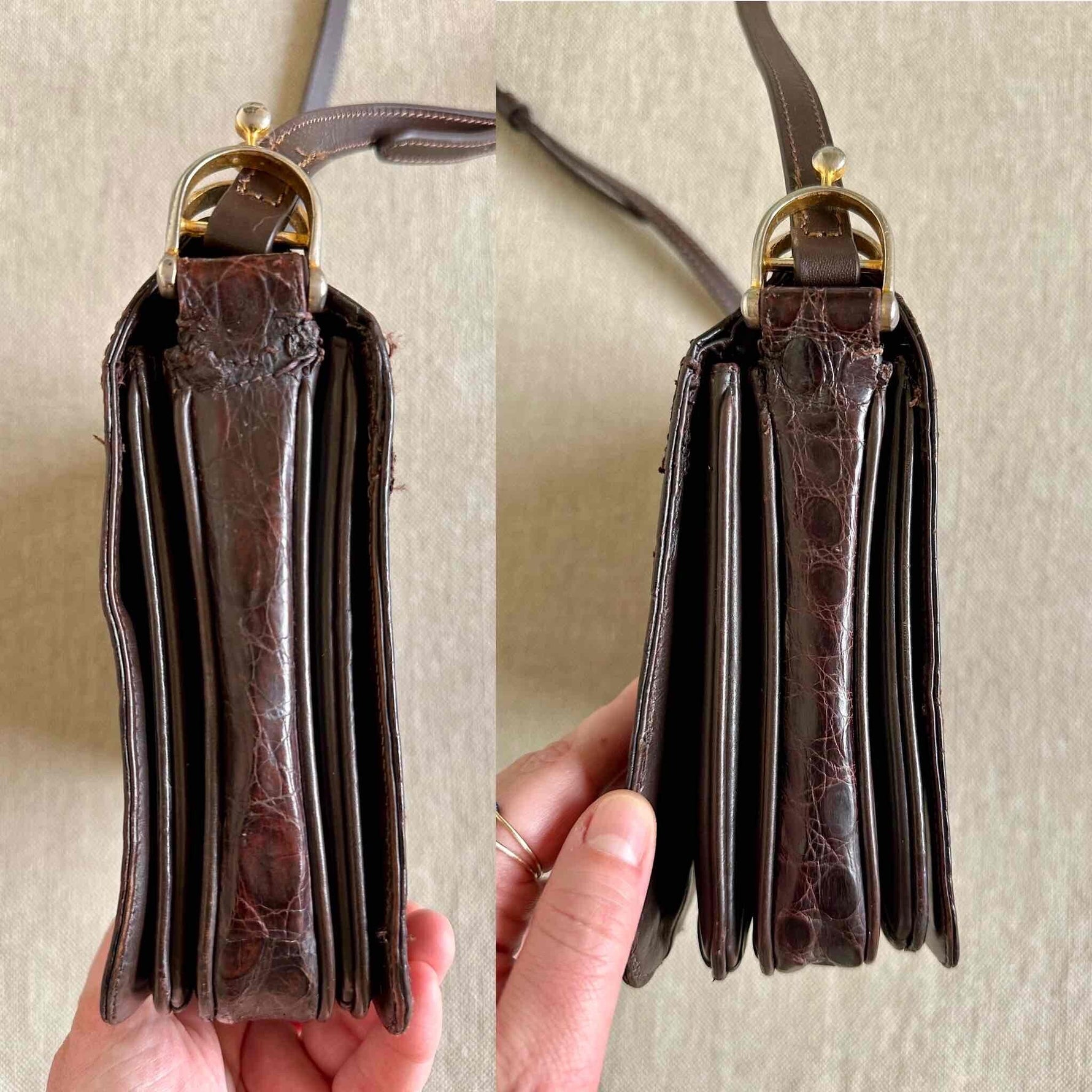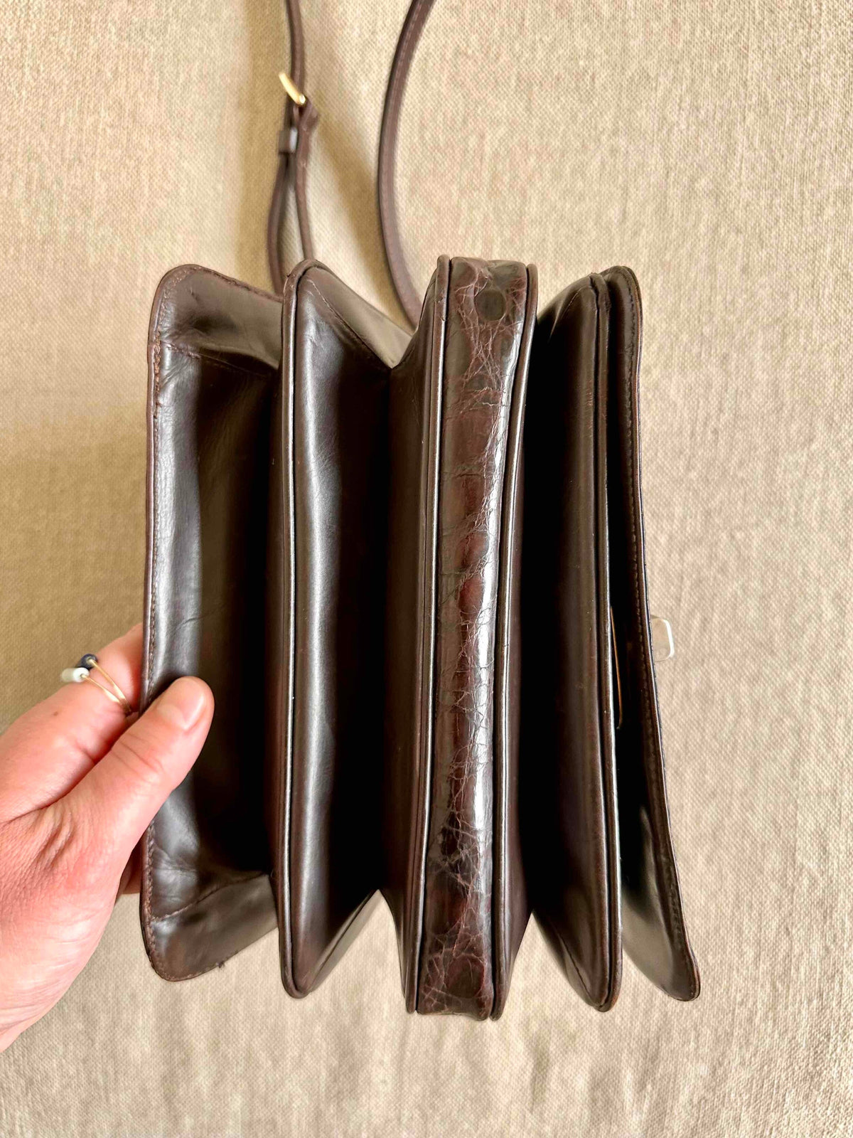 Prix unitaire parSac en cuir Céline, cuir de crocodile marron chocolat, fermoir à tourner motif étrier, 4 compartiments interieurs, bandouliere reglable.