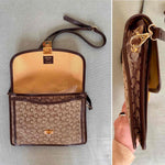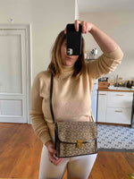 Prix unitaire parSac Céline, en cuir chocolat et toile monogrammée beige et brun, jacquard motif Triomphe, fermoir doré « C » et gravé Céline, bandoulière réglable par une boucle dorée et amovible pour une version pochette, 3 compartiments intérieurs et une pochette zippée, fabriqué en France, H 20cm x L 26cm x P 4cm, hauteur bandoulière de 45 cm à 50 cm.