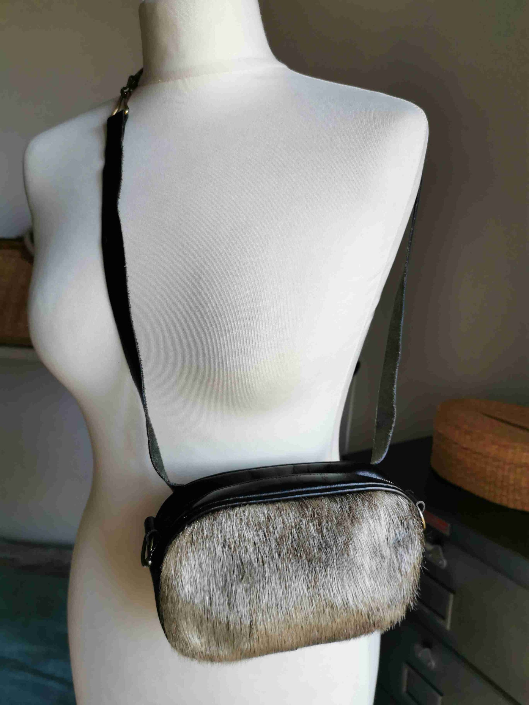 Prix unitaire parSac à bandoulière en cuir noir et fourrure.