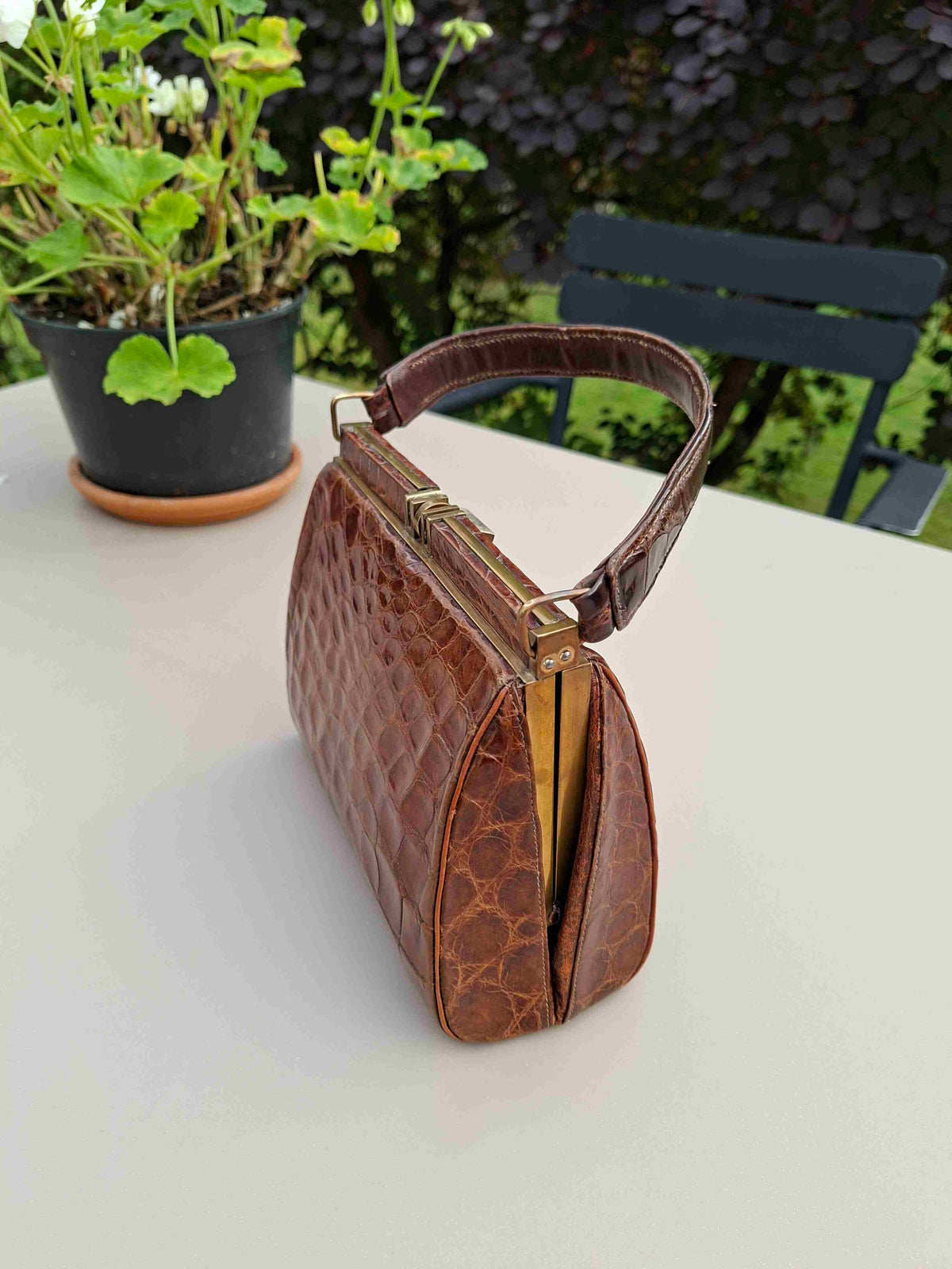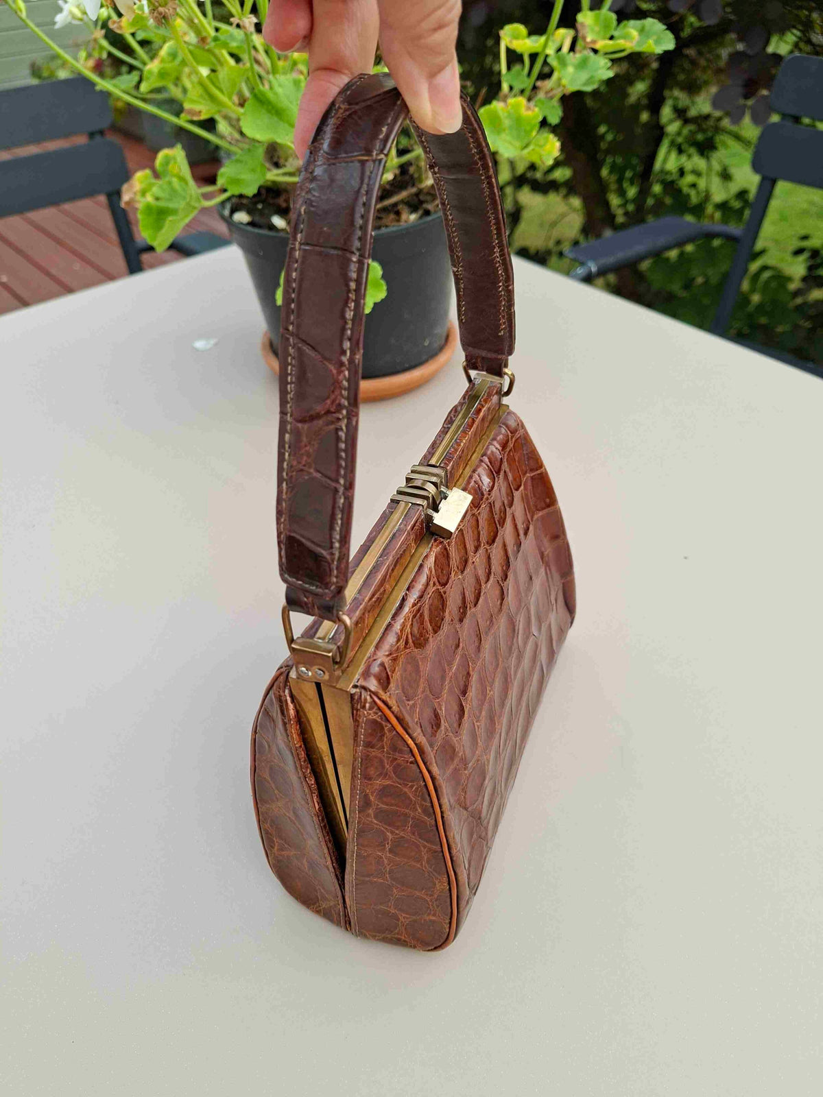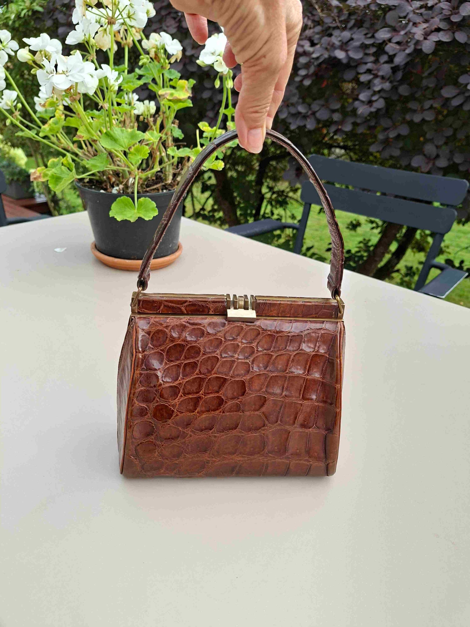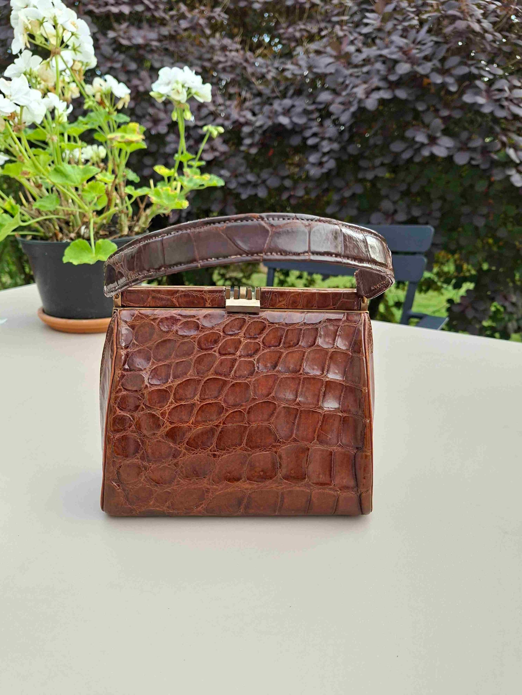 Prix unitaire parPetit sac à main en croco véritable vintage 50’s