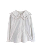 Prix unitaire parBlouse Autrichienne en coton blanc et grand col brodé de dentelle macramé en forme de coeurs, boutons coeurs nacrés, manches ballons, taille 38 portée ici sur un mannequin T36, fabriquée en Autriche.