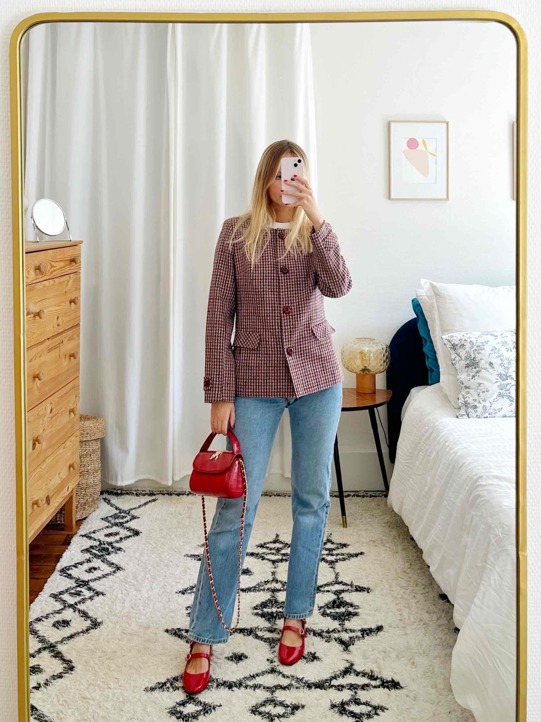 Prix unitaire parBlazer en laine, col rond, boutonné sur le devant, deux fausses poches sur le devant, épaules renforcées, Portée ici sur une T36 pour 1m64