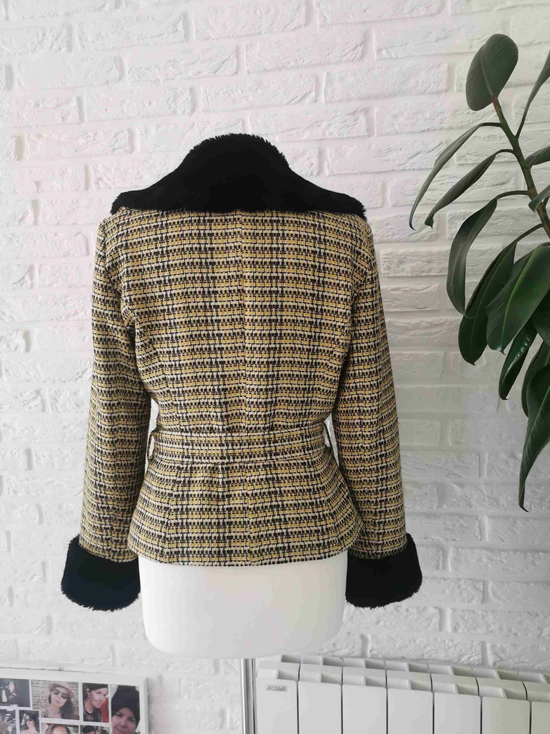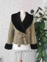 À col châle en fausse fourrure noire