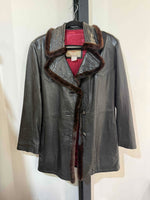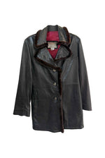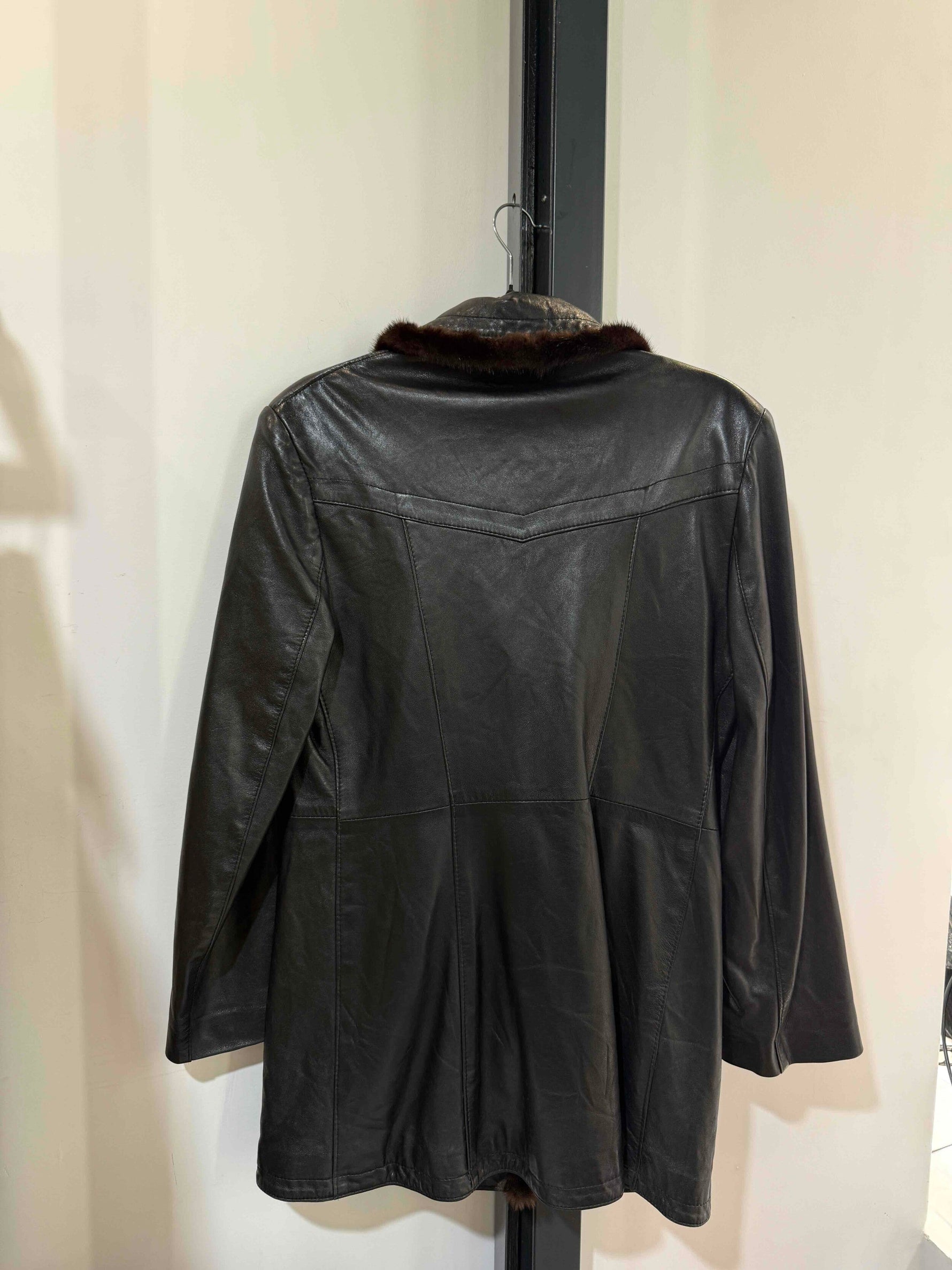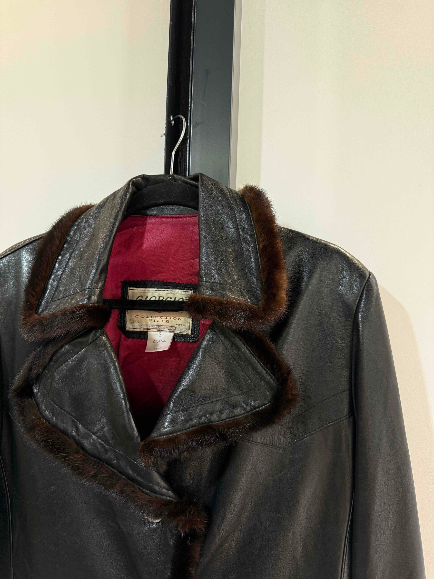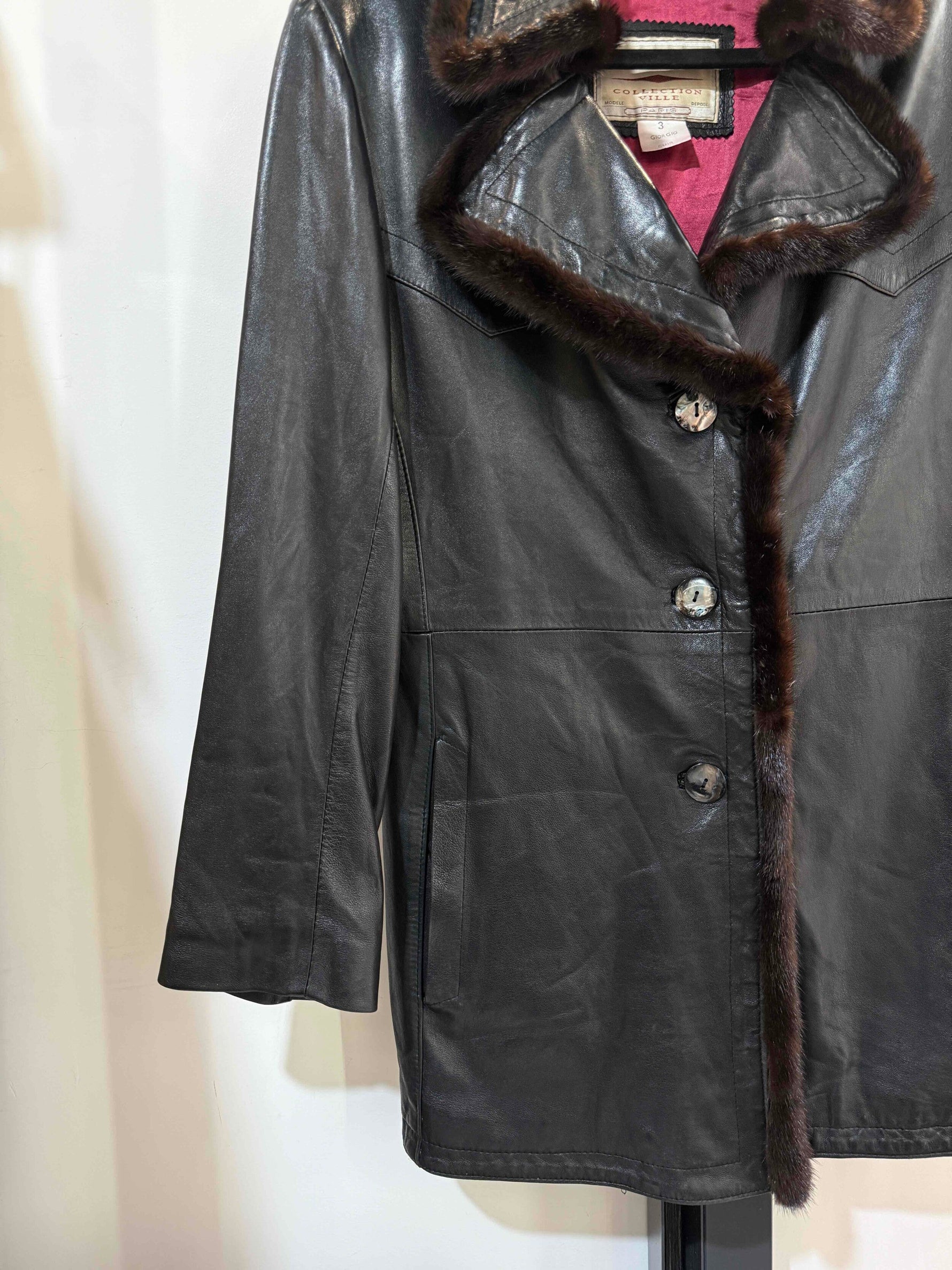 Prix unitaire parVeste en cuir d’ageau noir avec une bordure au col et le long de la veste en fourrure marron. Fourrure de vision. Excellent état. Cuir très doux. Made in France. Taille M ou S porté oversize.