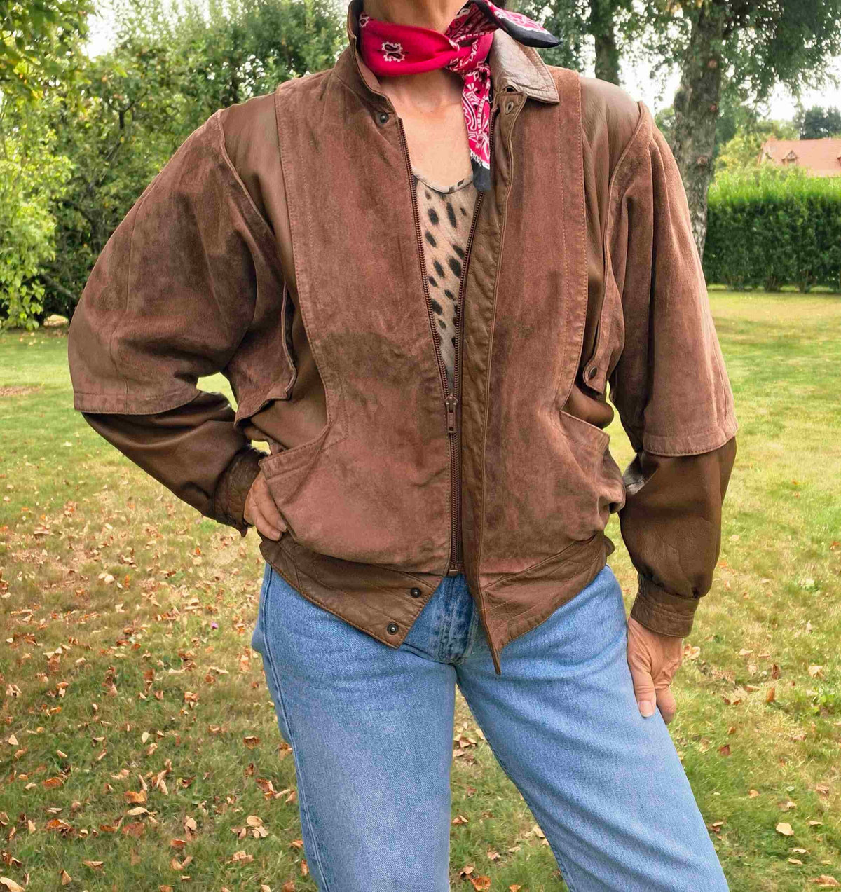 Prix unitaire parVeste en cuir et en daim marron cognac
