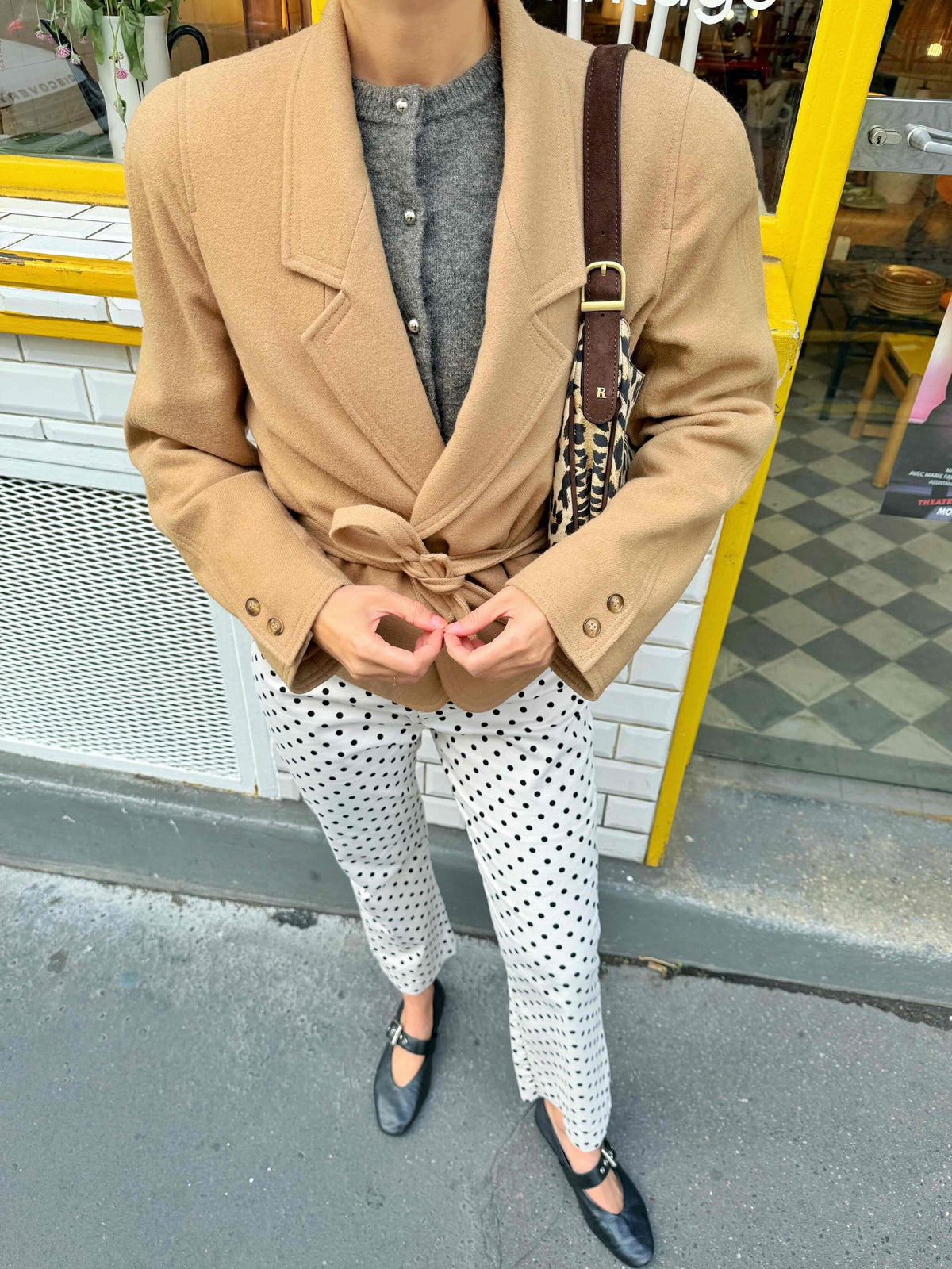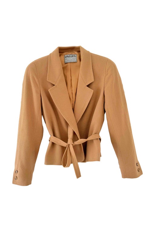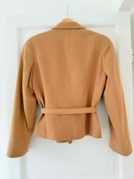 Prix unitaire parVeste en laine beige, ceinturée à la taille, col en V, portée ici sur une T36 pour 1m64.