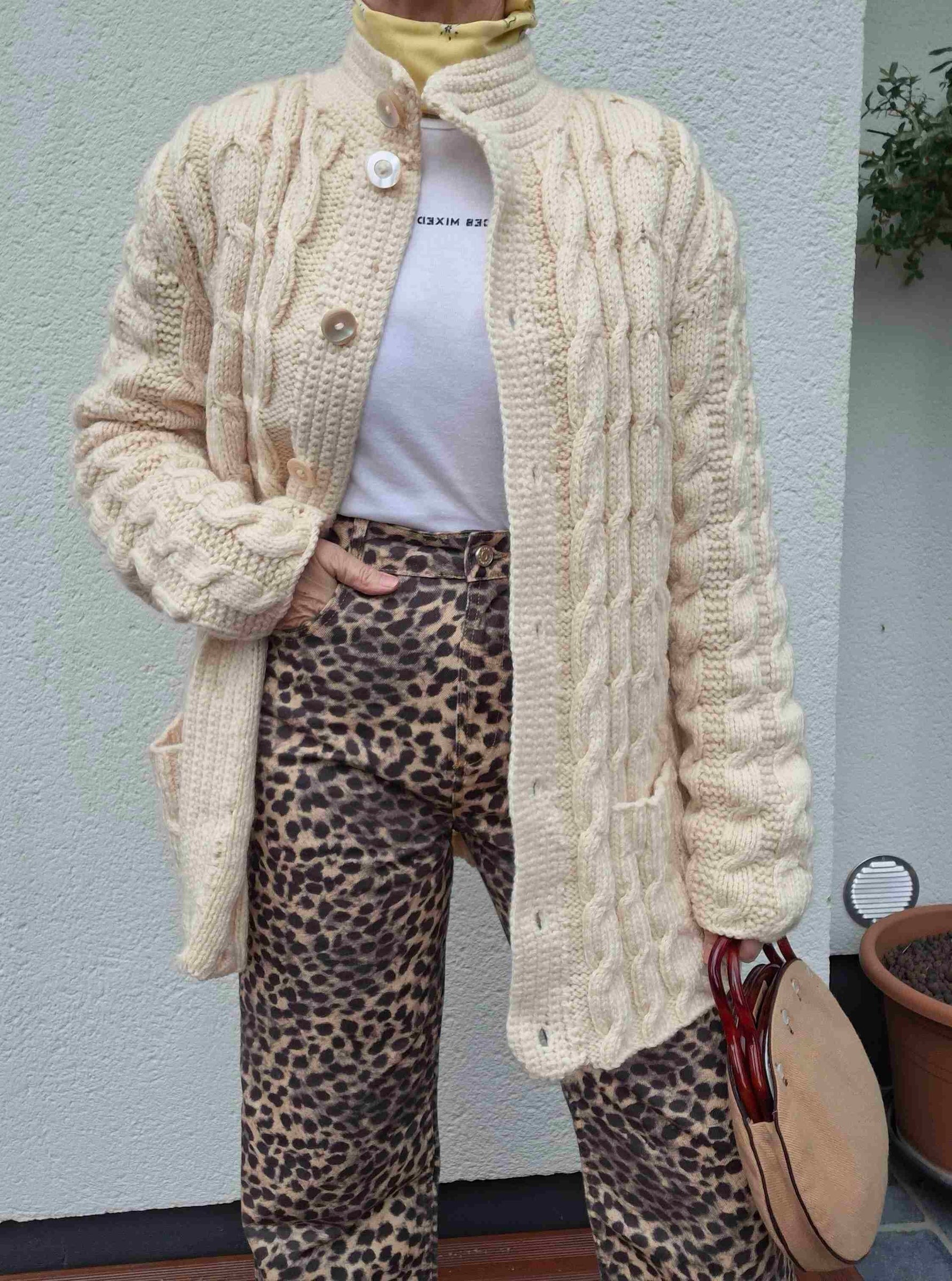 Prix unitaire parVeste en pure laine torsadée tricotée à la main
