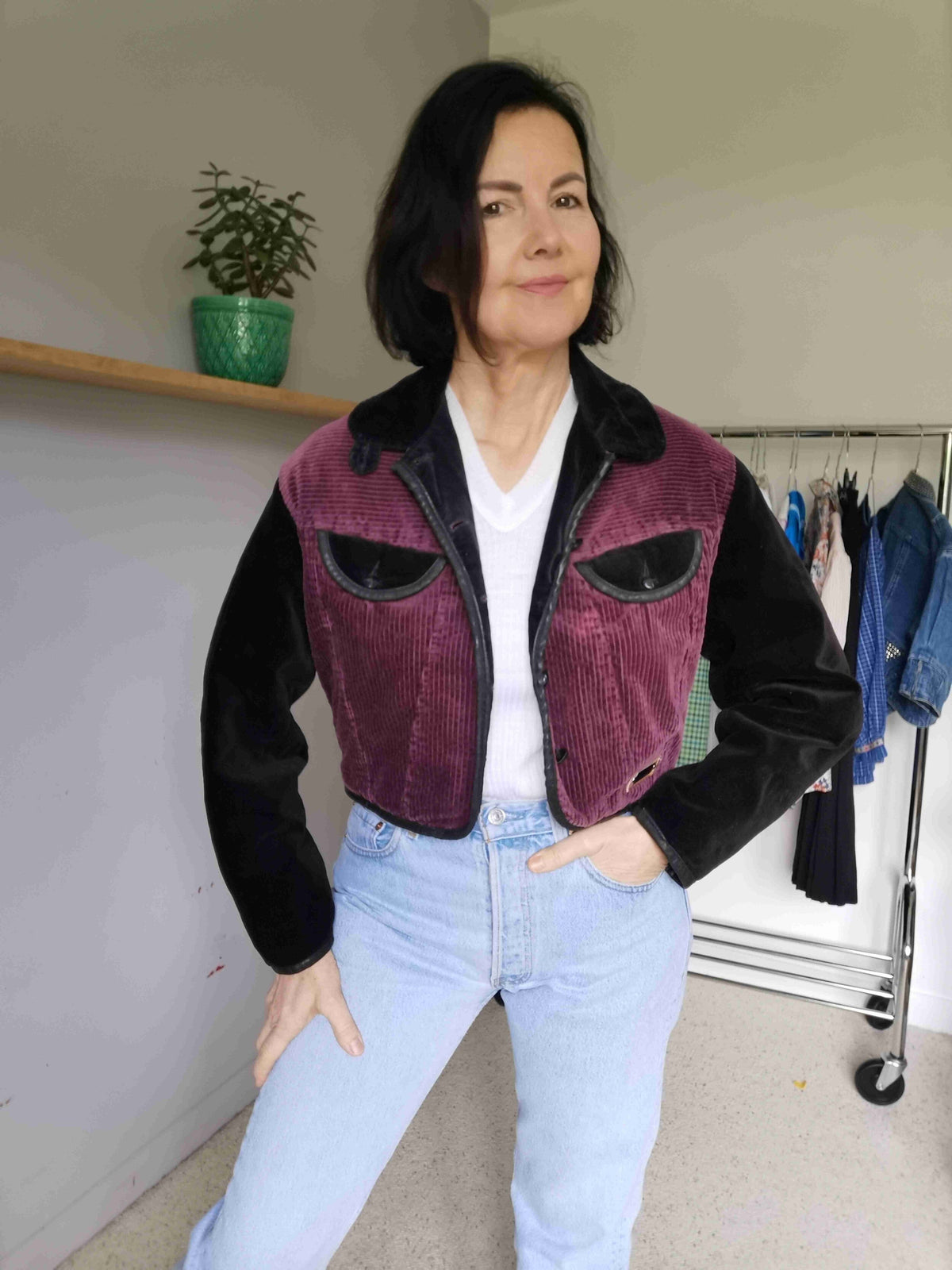 Prix unitaire parVeste cropped 80's en velours côtelé violet