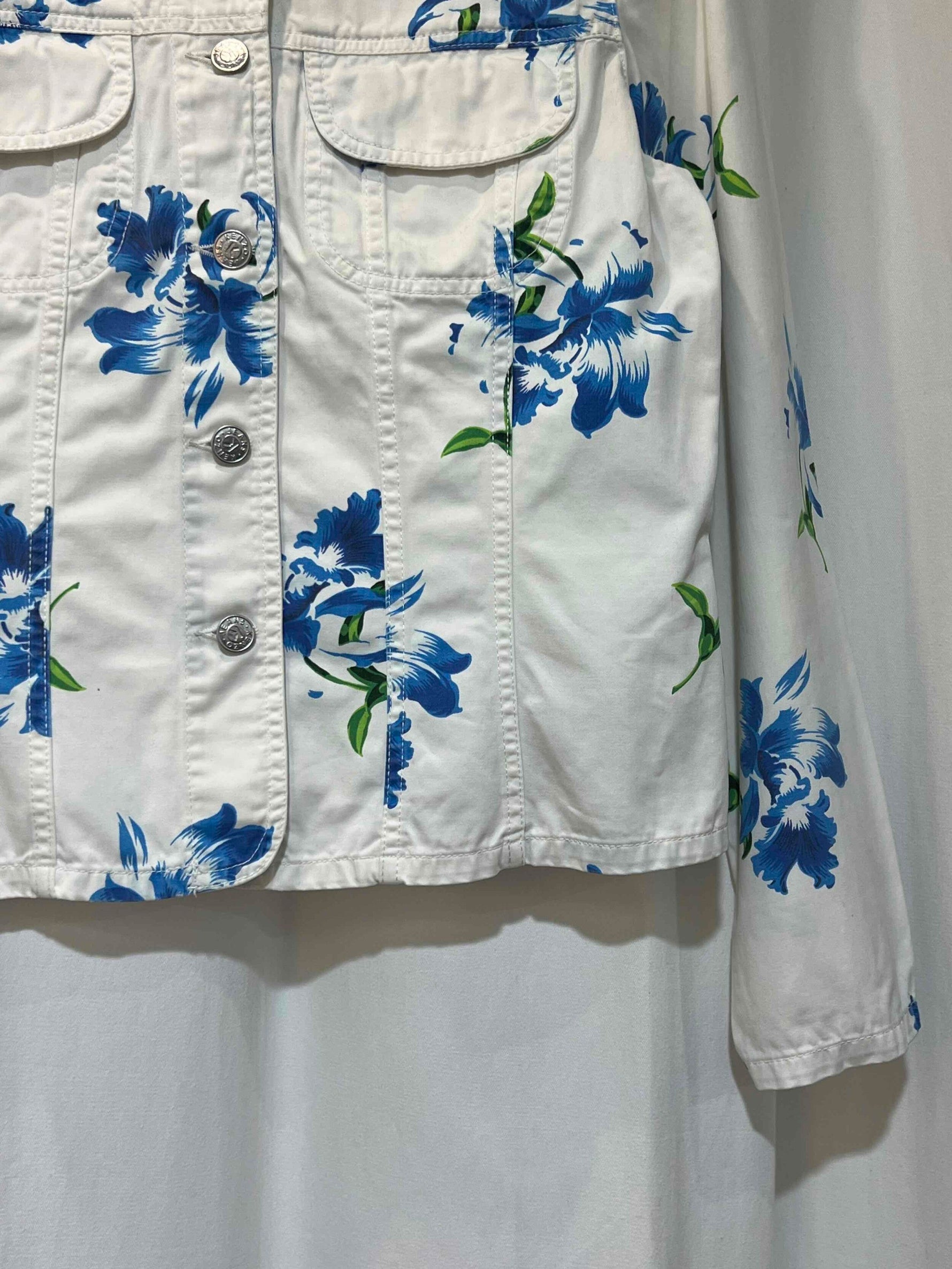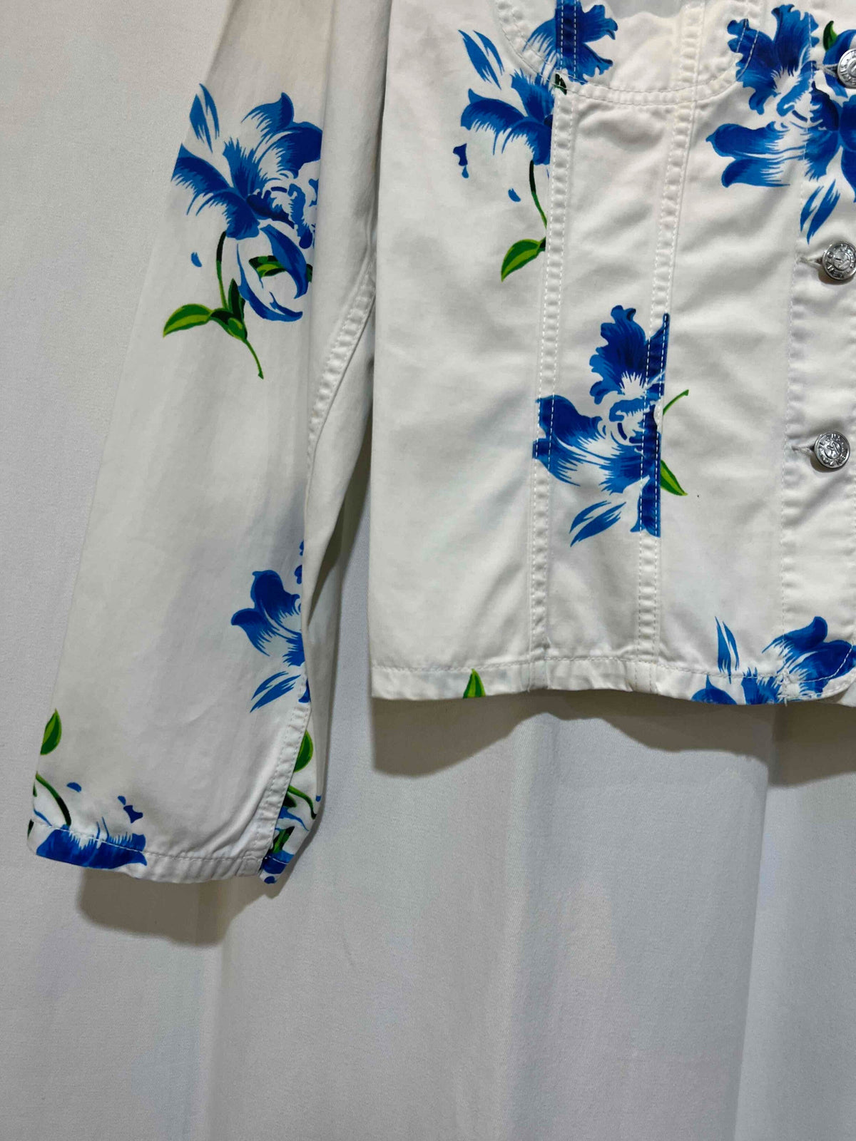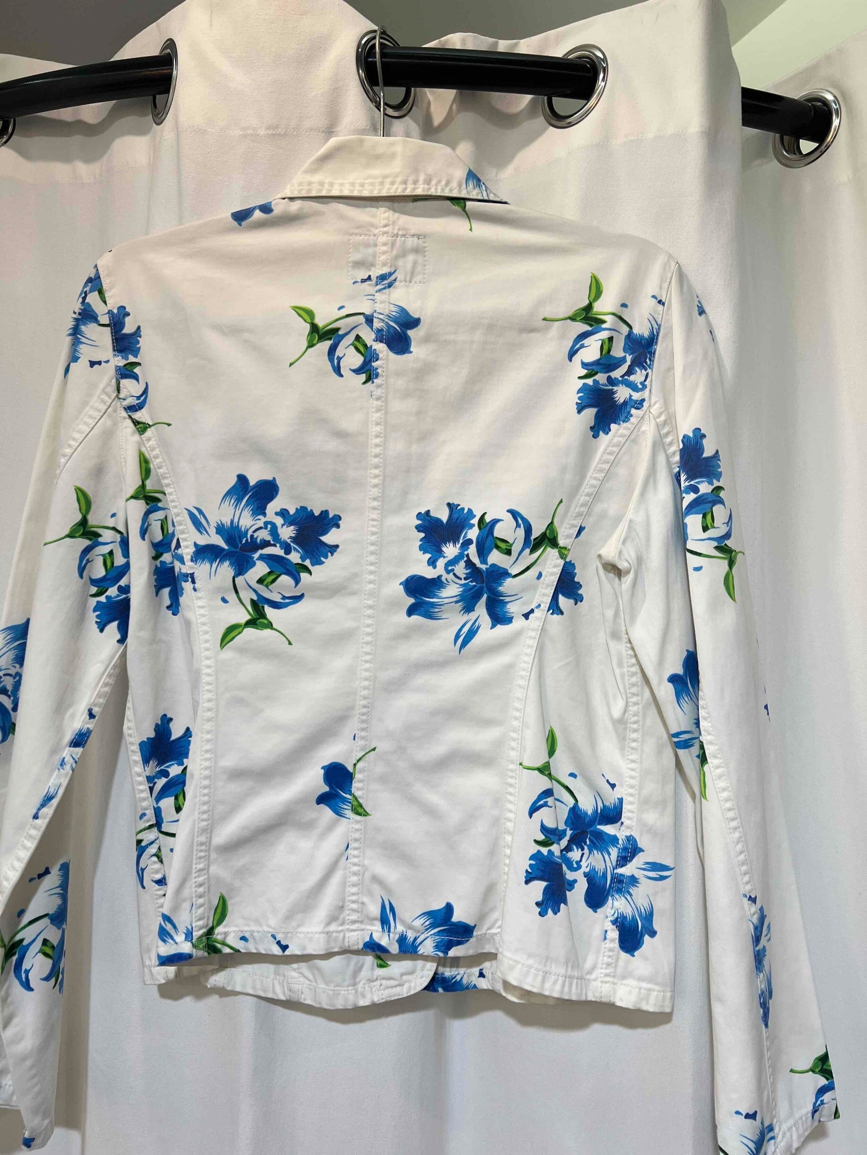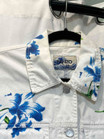 Prix unitaire parVeste en toile de coton blanche à fleurs bleues de la marque Kenzo jeans. Taille 36/38. Années 90s. Coupe veste en jeans.