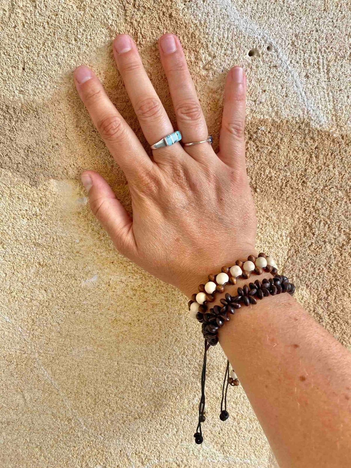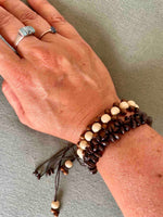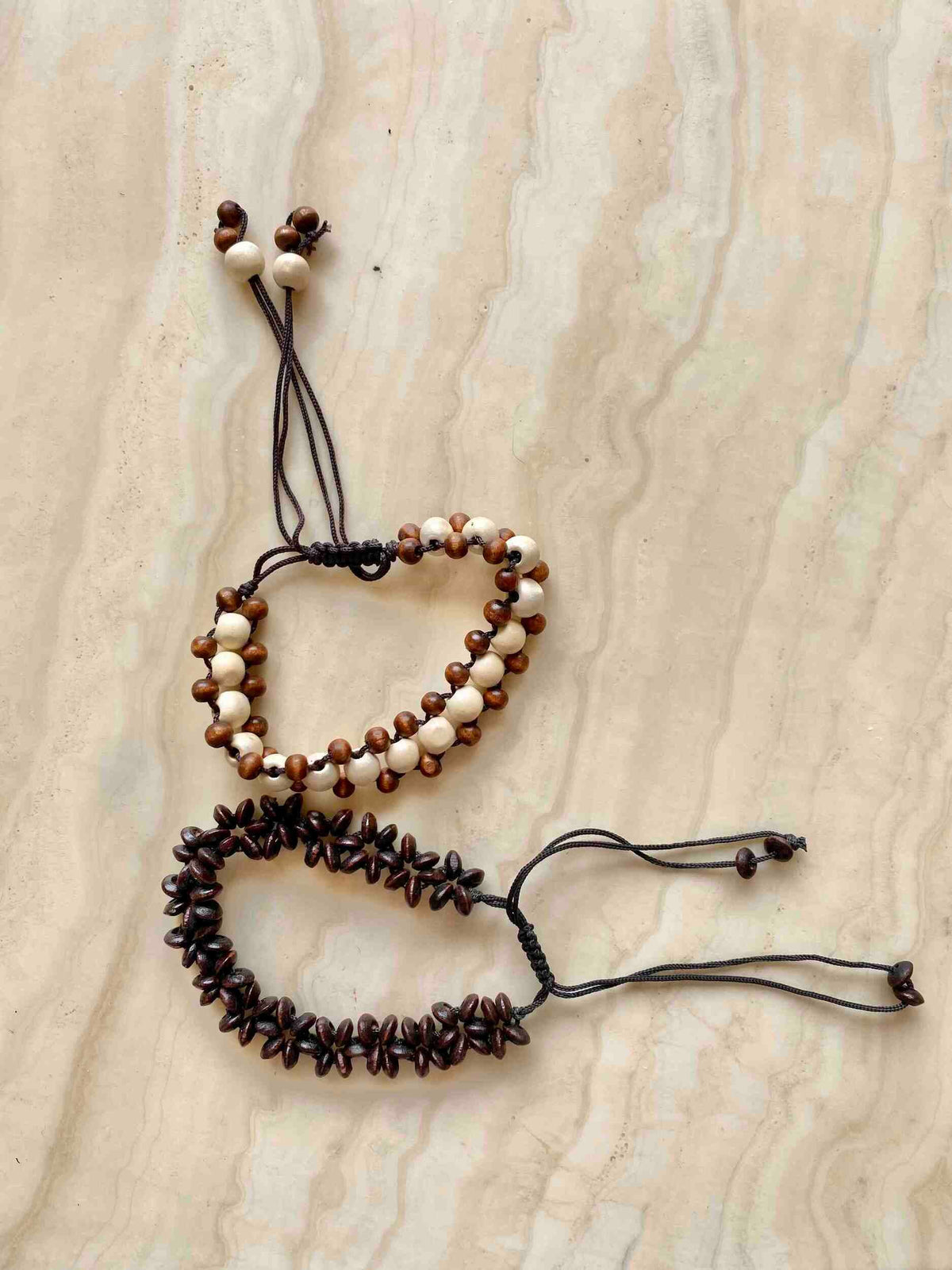 Prix unitaire parBracelets Perles de bois et Graines, avec coulisses réglables, perles de bois et graines naturelles, fabriqués à Cuba.
