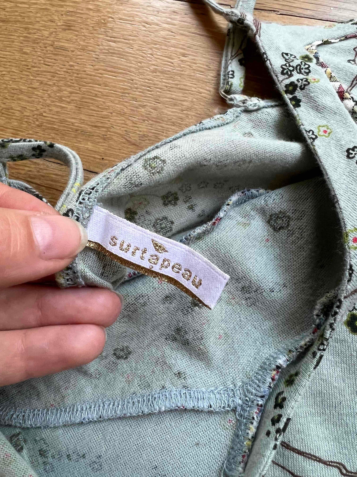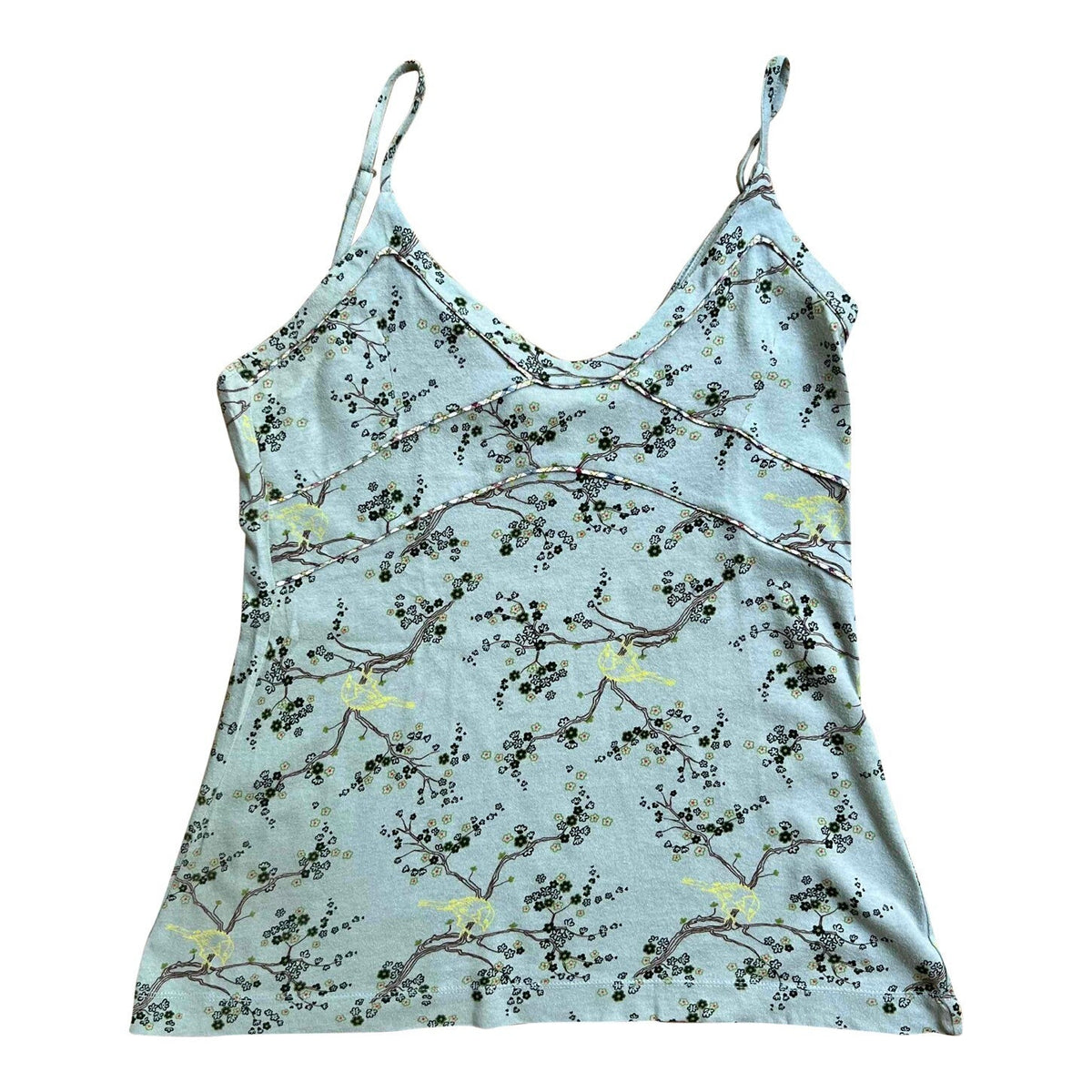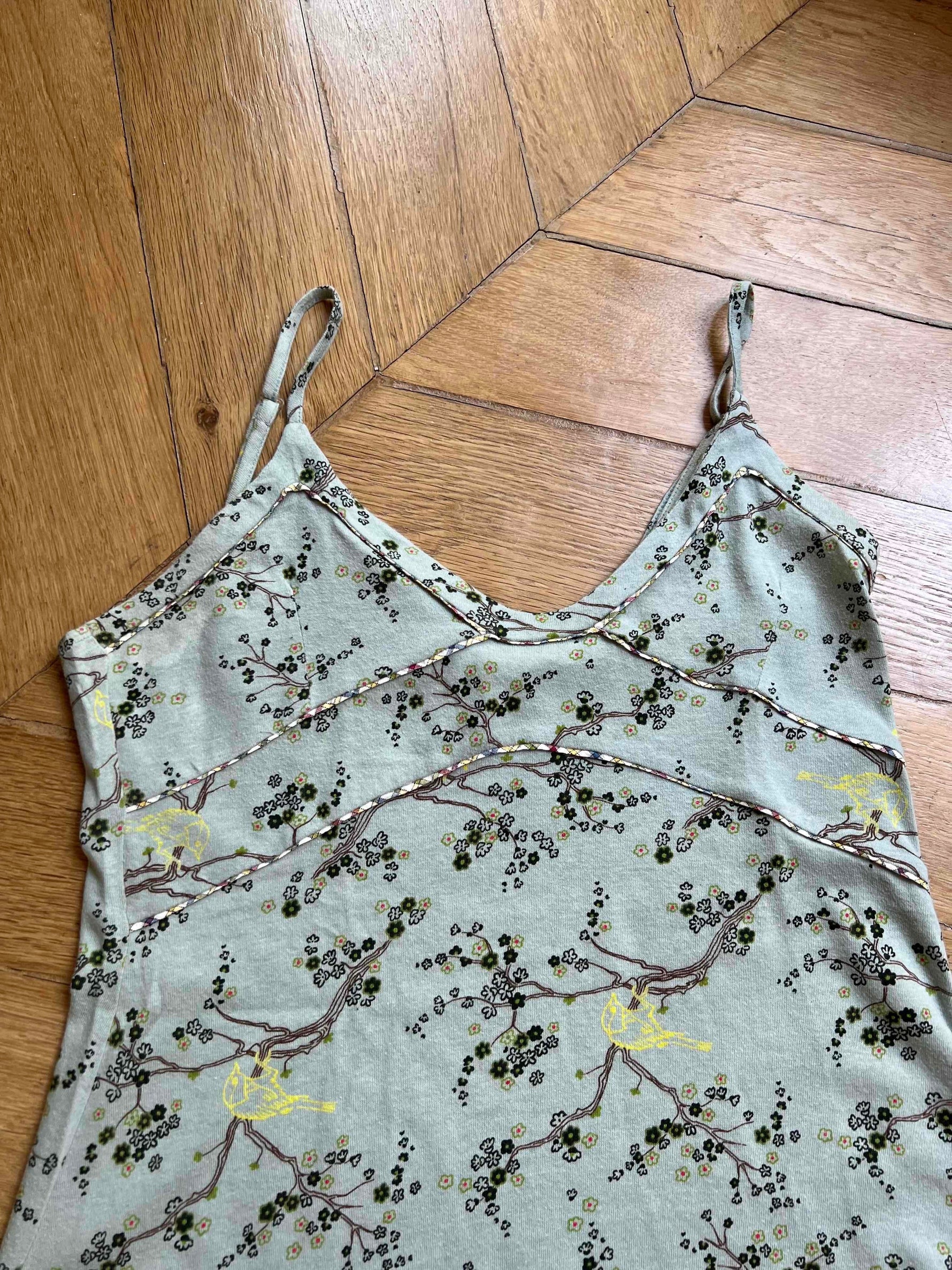 Caraco en coton bleu vert à fleurs, année 2000. Bretelles réglables de la marque sur ta peau. Taille 36/38.