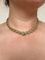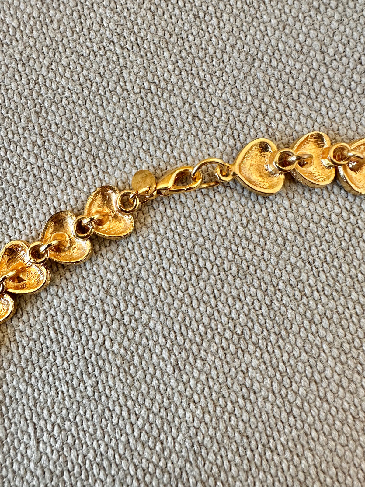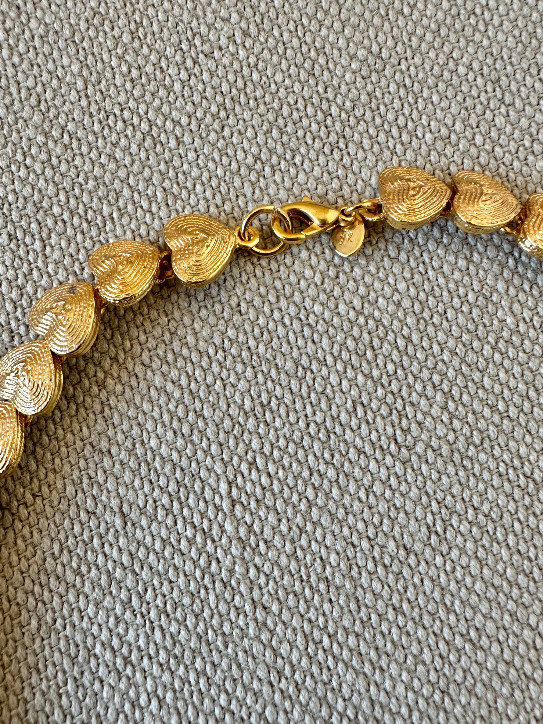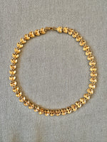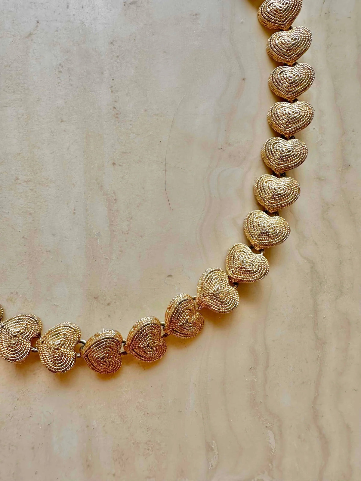 Prix unitaire parCollier coeurs, en metal plaqué or, chainette petits coeurs gravés, fermoir à mousqueton, fabriqué en France, longueur 46cm, largeur 1,3cm.