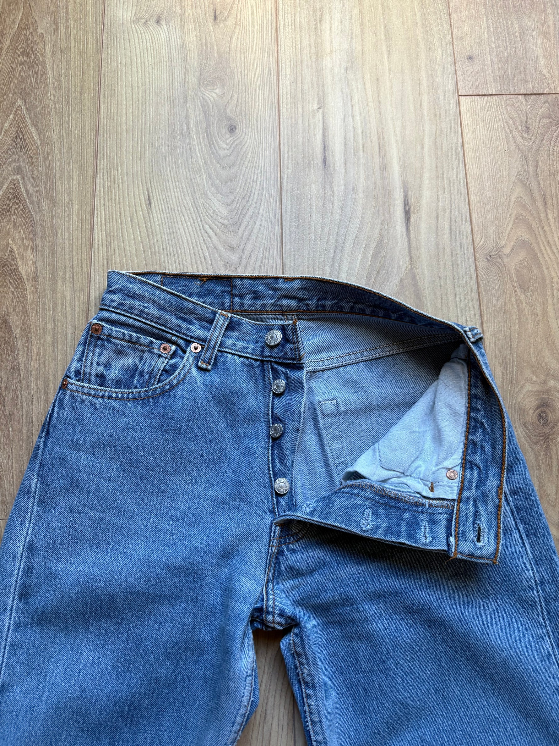 Prix unitaire parJean Levi's 501 vintage 27W 34L d'une qualité premium. Largeur des hanches : 45cm ; Longueur : 96cm ; Longueur entrejambe : 71cm ; Taille : 37cm Etat : très bon état Couleur : bleu Matière : 100% coton Le colis est emballé et envoyé avec soin (168)