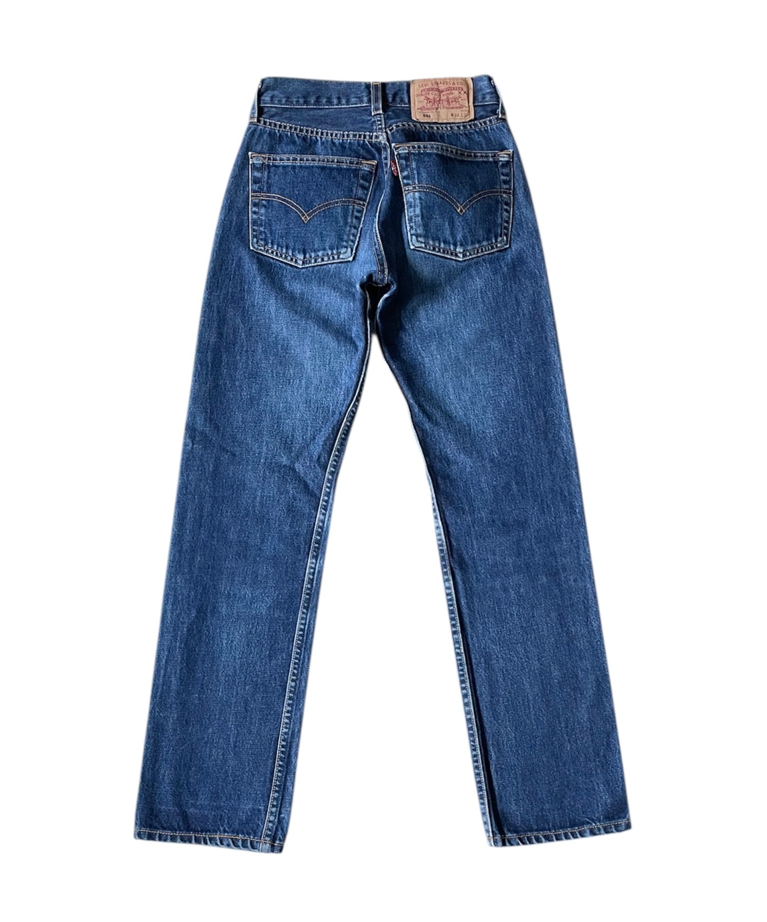 Prix unitaire parJean Levi's 501 vintage, taille W26 L32 Pièce vintage de très bonne qualité Fabriqué il y a environ 20 ans, ce jean est un classique intemporel 100 % coton, ce jean épais garantit une excellente durabilité Couleur : Bleu marine Pays de fabrication : Non spécifié Très bien conservé, aucune tache ! Nous vous recommandons de comparer les mesures avec celles d'un de vos jeans pour un ajustement parfait. Mesures prises à plat : Hanches : 46 cm Longueur : 103 cm Entrejambe : 79 cm Taille : 31 cm