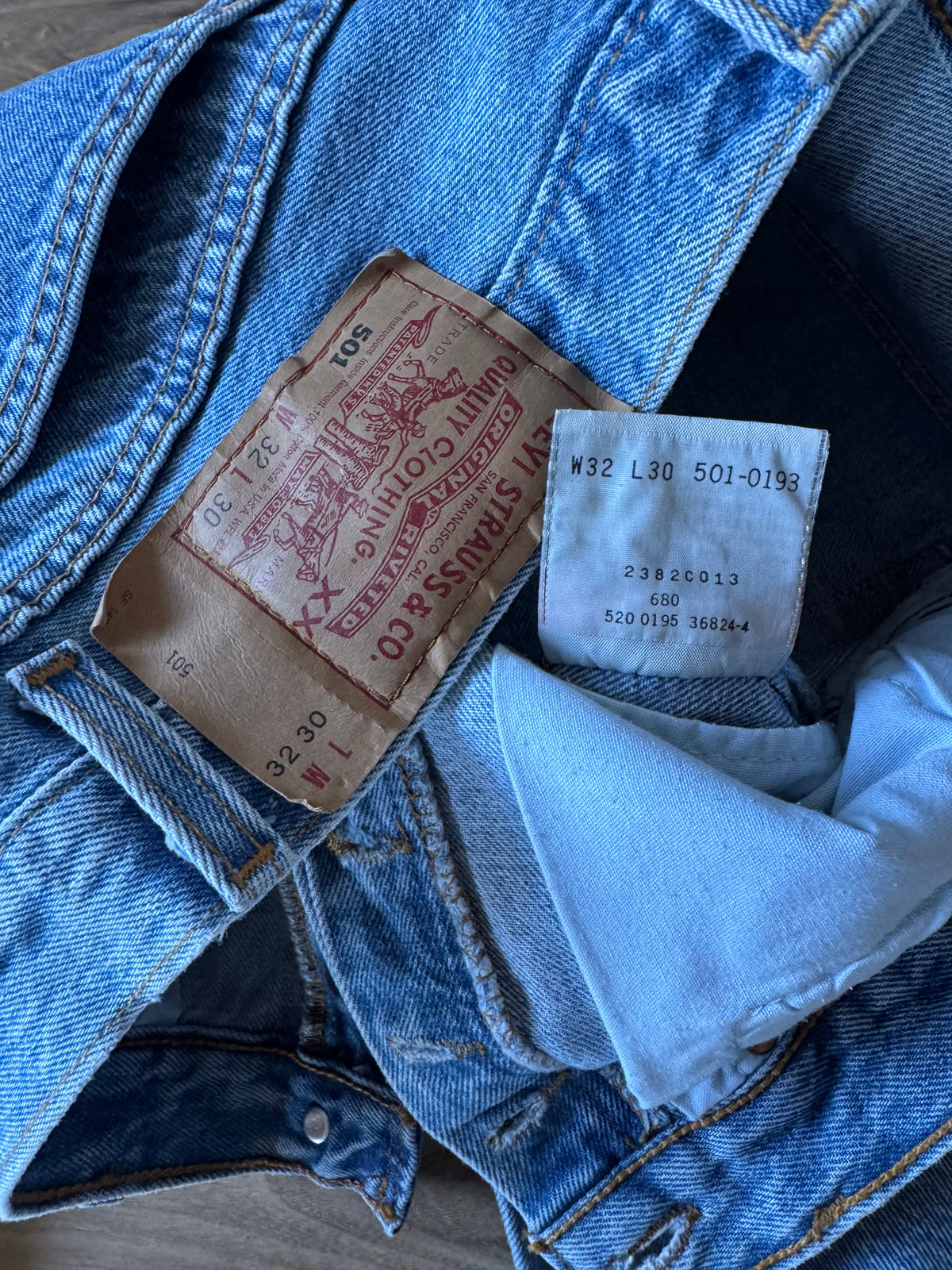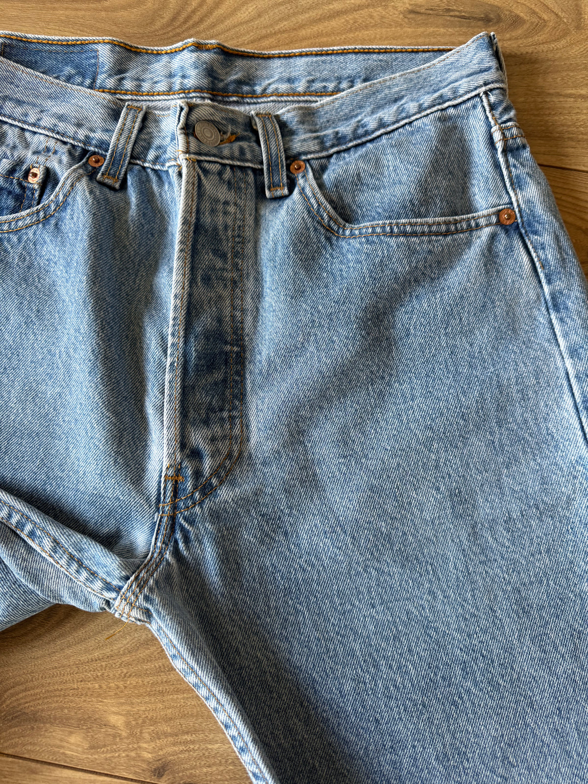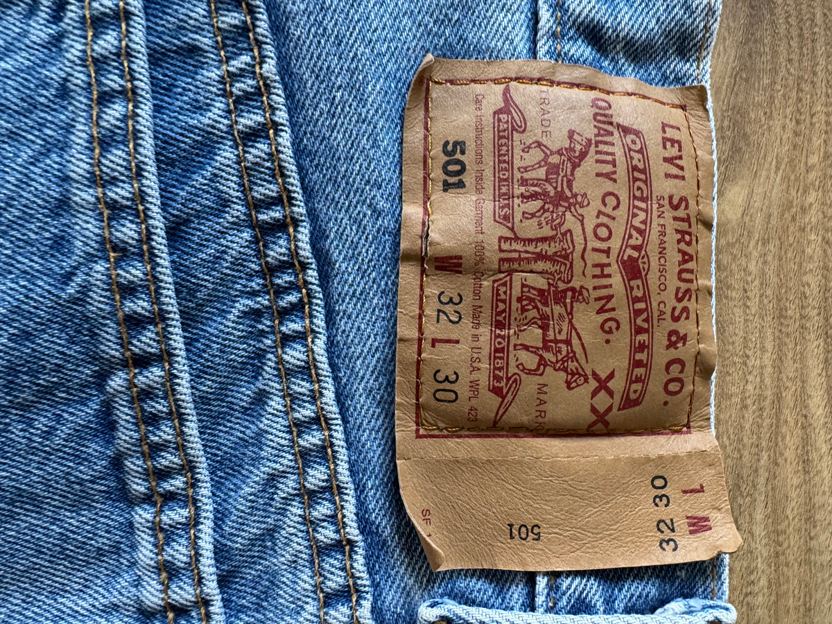 Prix unitaire parJean Levi’s 501 Vintage = années 90’s Taille indiquée W32L30 ⚠️ taille petit il correspond à un 501 actuel en W28-29 Couleur stone clair