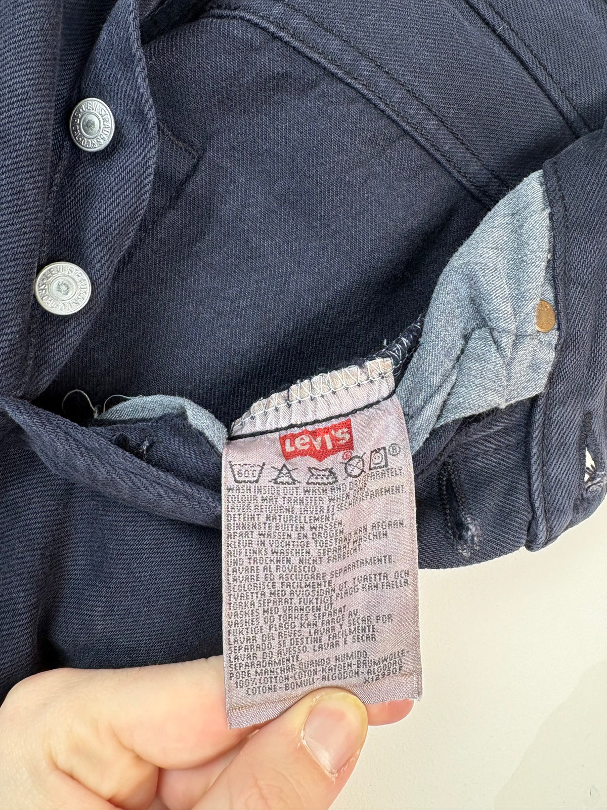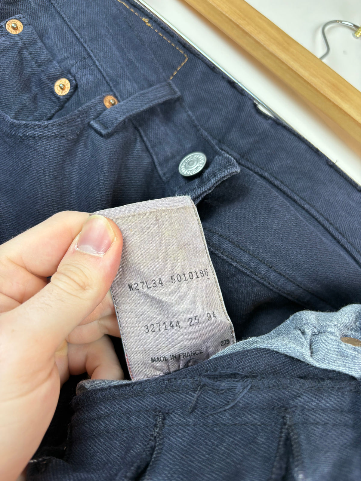 Jeans Levi’s 501 vintage W27 L34 France Un article vintage de très bonne qualité Fabriqué il y a environ 20 ans, ce jean est un classique intemporel Confectionné en 100 % coton, ce jean est assez épais pour garantir une excellente durabilité 🌱 Couleur : Noir qui tire très très légèrement vers le marine Pays de Fabrication : France 🇫🇷 Nous vous conseillons de comparer les mesures avec celles de vos propres jeans pour garantir un ajustement parfait 😇 📏 - Mesures prises à plat: Longueur : 113cm Longueur entrejambe : 85cm Taille : 35cm Hanches : 43cm