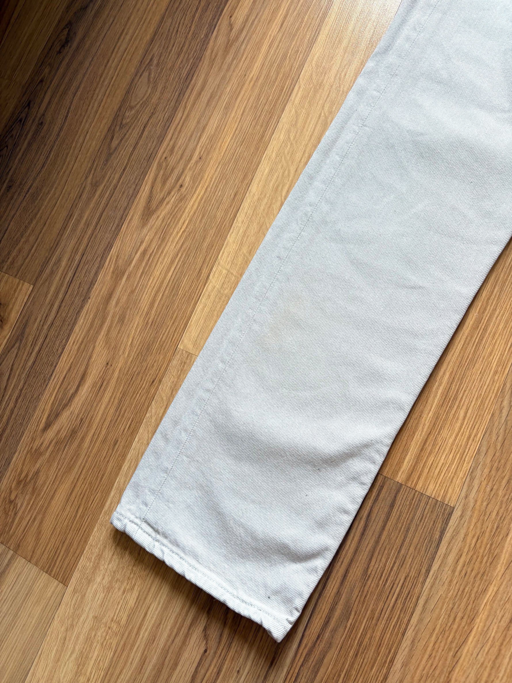 Jeans Levi’s 501 vintage W28 L34 Un article vintage de très bonne qualité Fabriqué il y a environ 20 ans, ce jean est un classique intemporel Confectionné en 100 % coton, ce jean est assez épais pour garantir une excellente durabilité 🌱 Couleur : Beige Pays de Fabrication : Espagne Nous vous conseillons de comparer les mesures avec celles de vos propres jeans pour garantir un ajustement parfait 😇 Tache diffuse peu visible à l’avant 📏 - Mesures prises à plat: Hanche : 44cm Longueur : 107cm Longueur entrejambe : 81cm Taille : 33cm