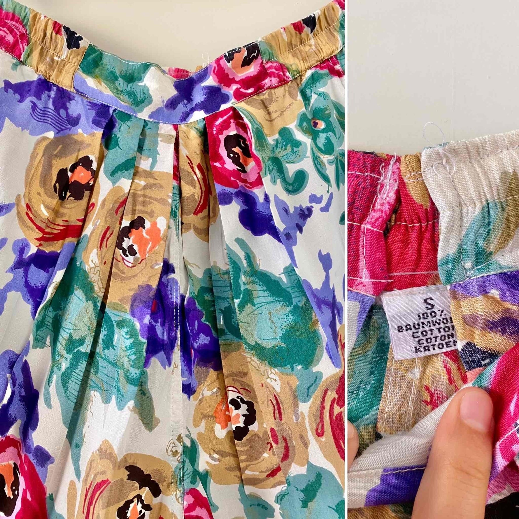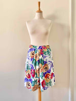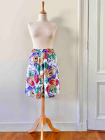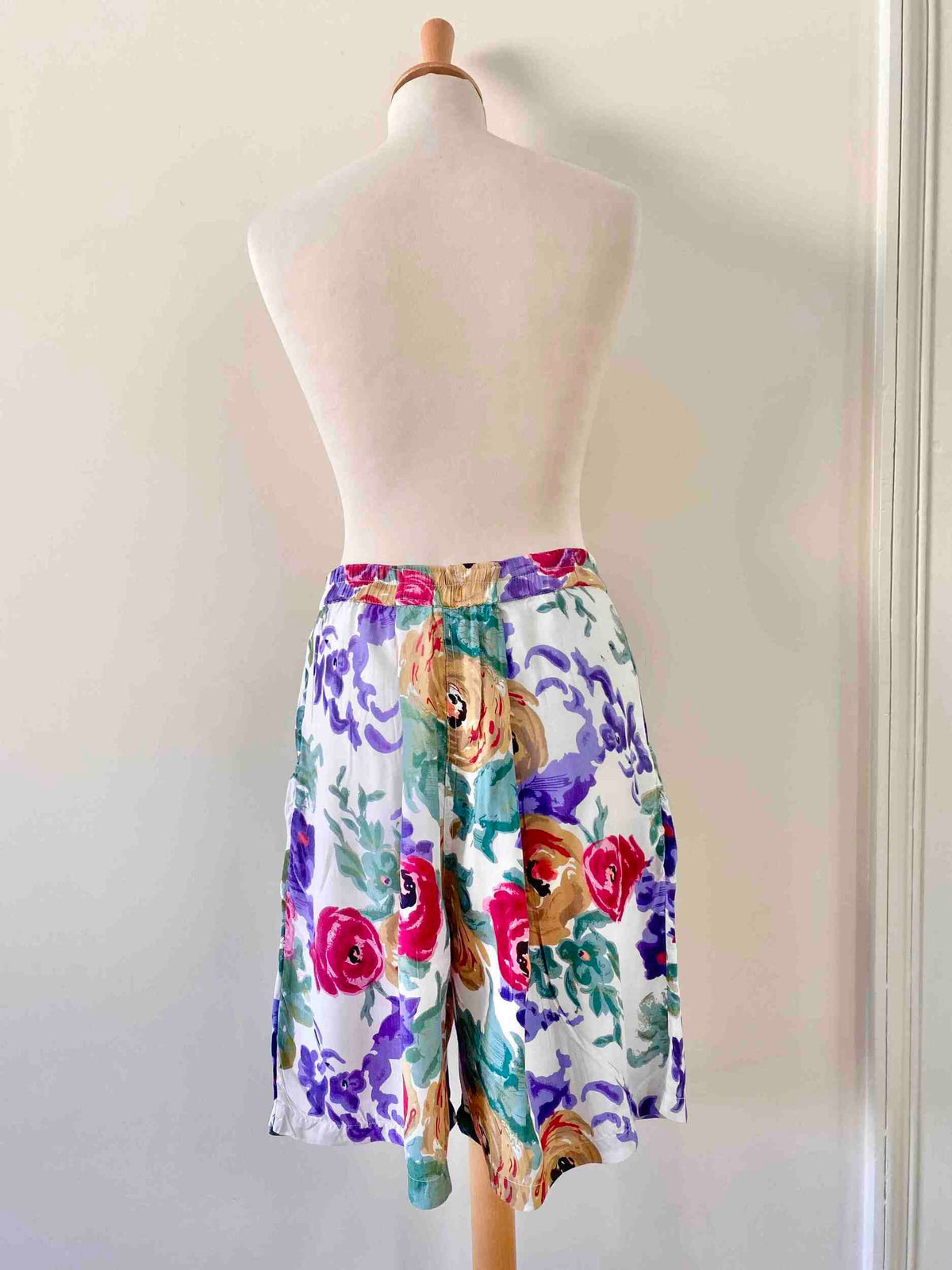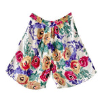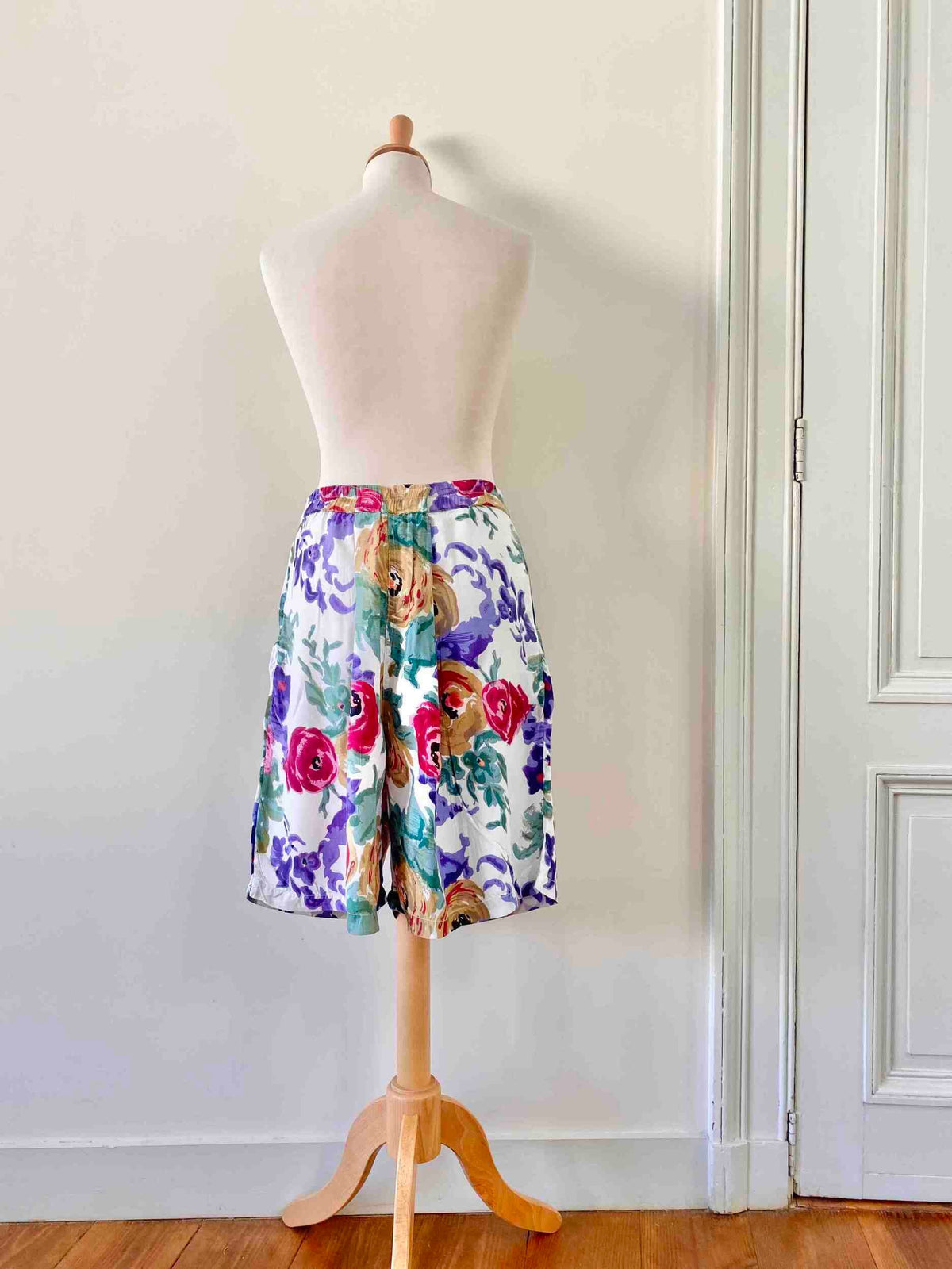 Jupe Culotte à Fleurs en coton fluide, jambes évasées bermudas, taille élastique, poches côtés.