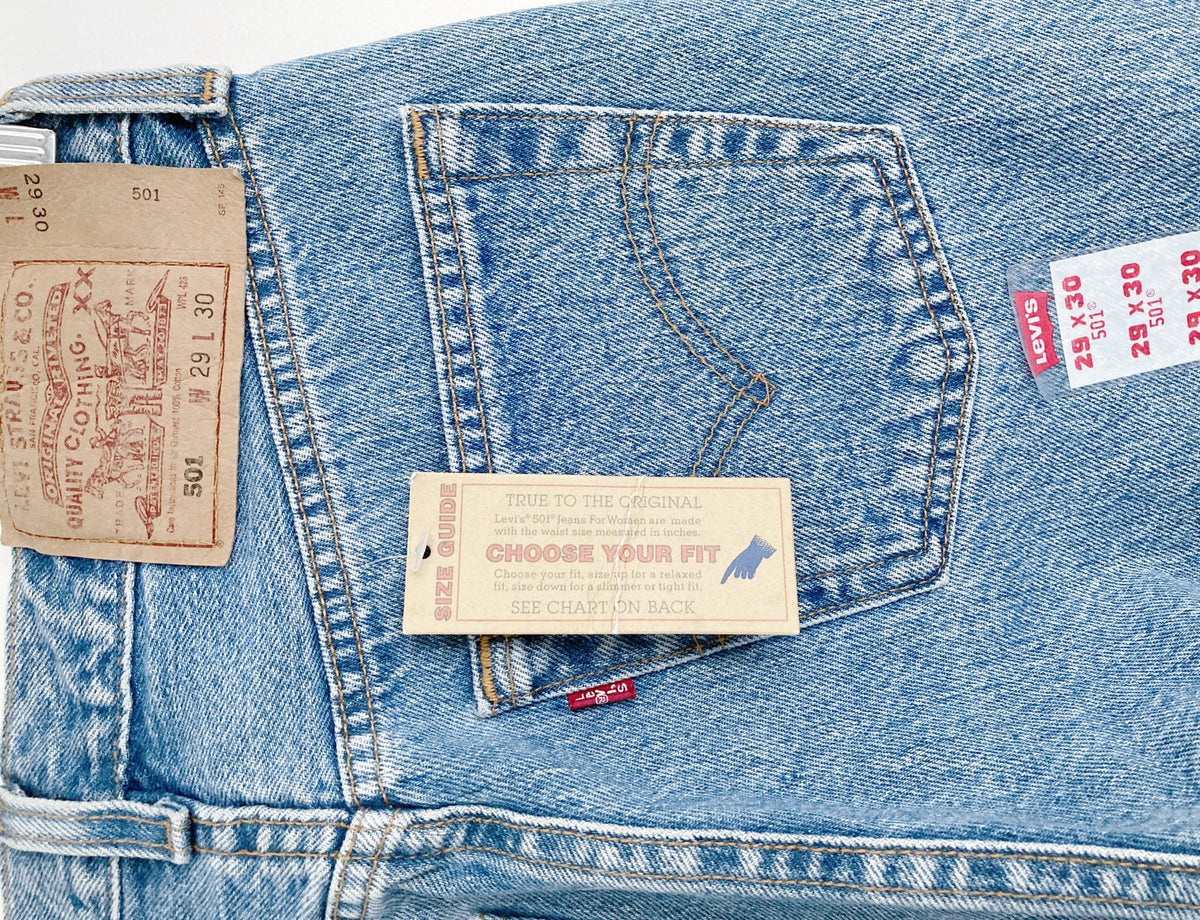 Prix unitaire parCoupe femme, bleu clair, made in USA. Coupe et ourlets d’origine.