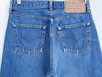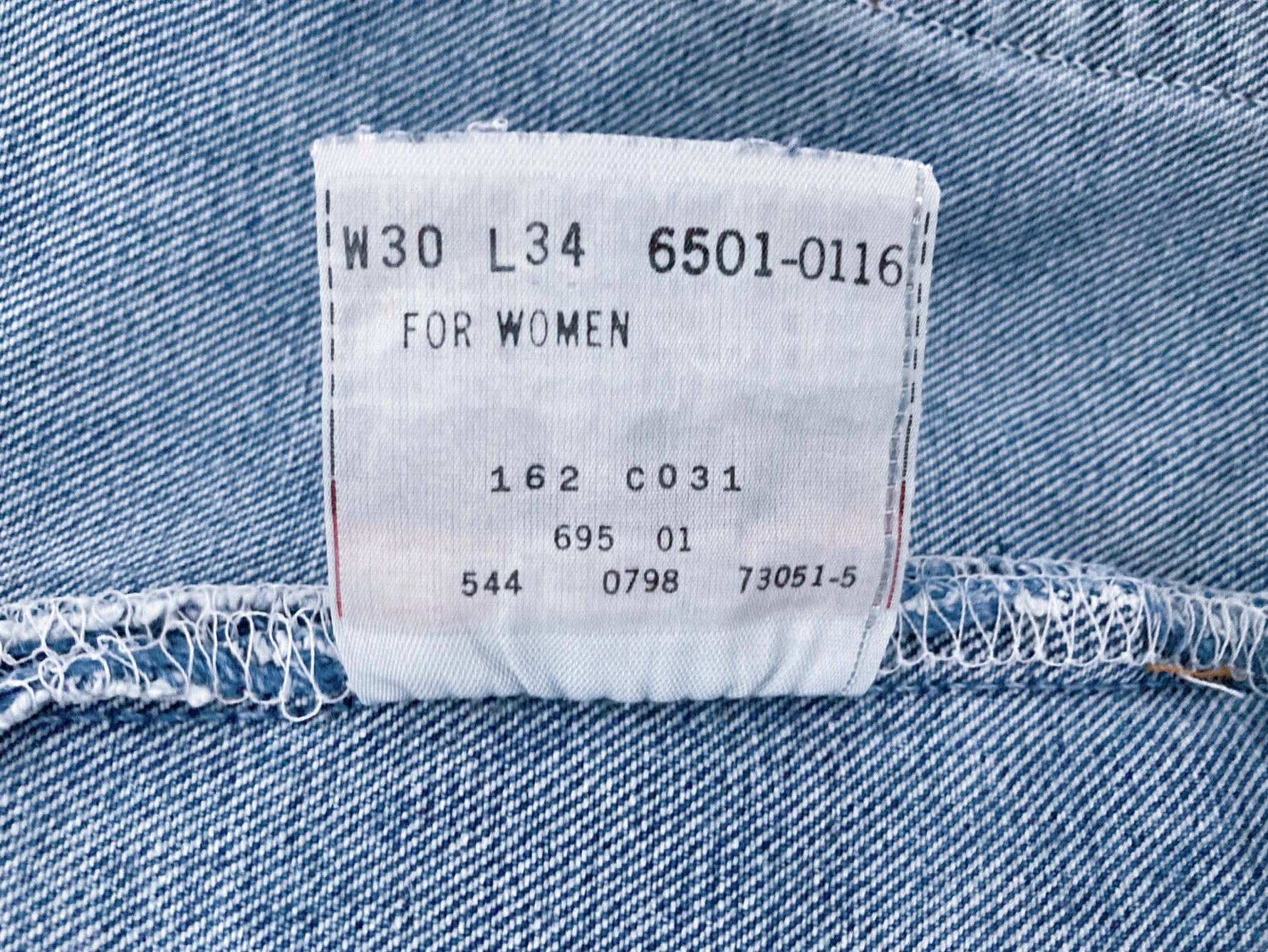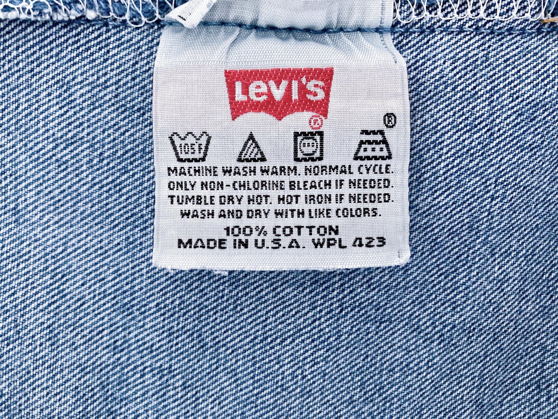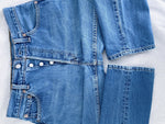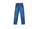 Coupe femme, bleu moyen, made in USA. Coupe et ourlets d’origine.