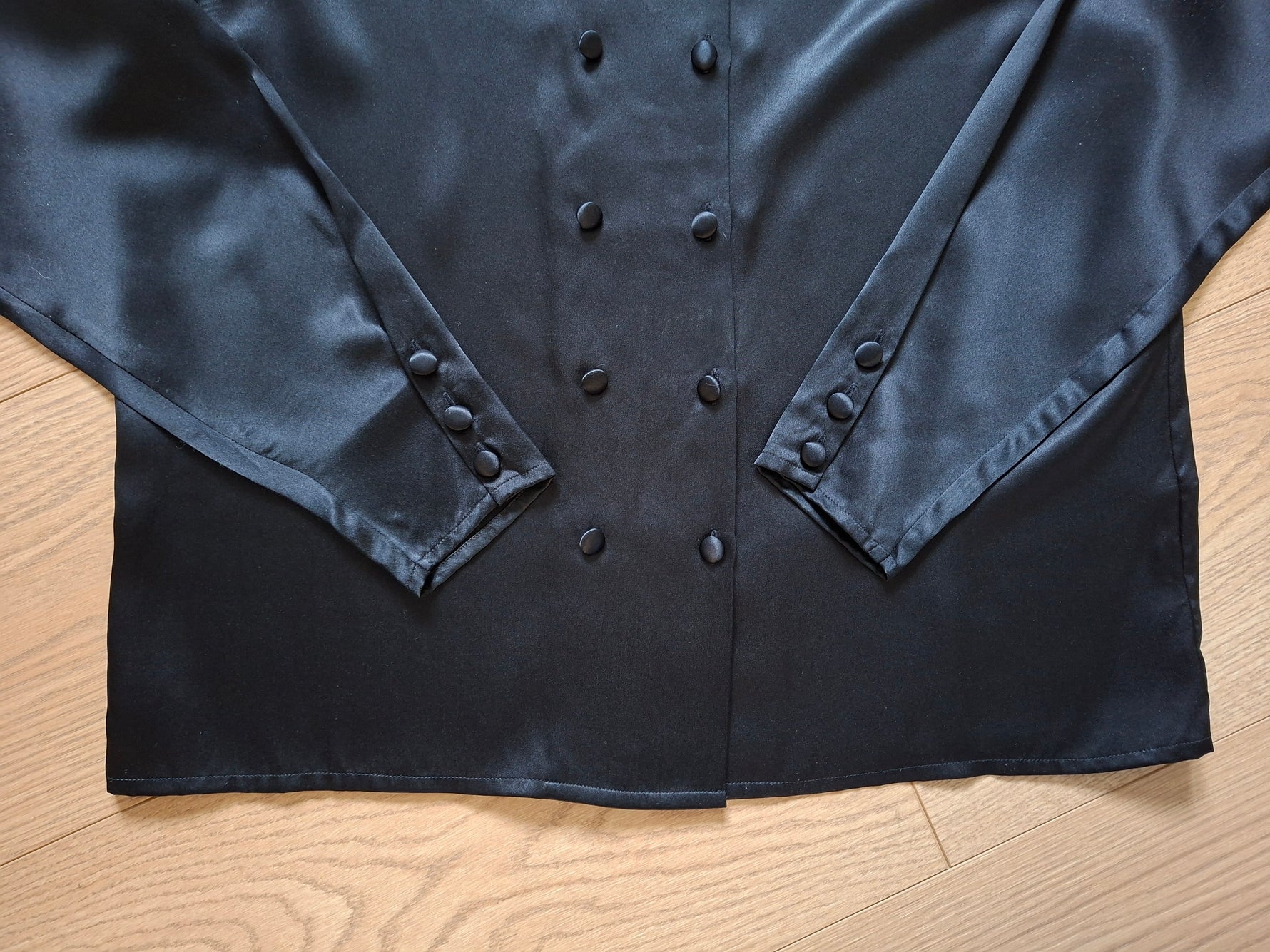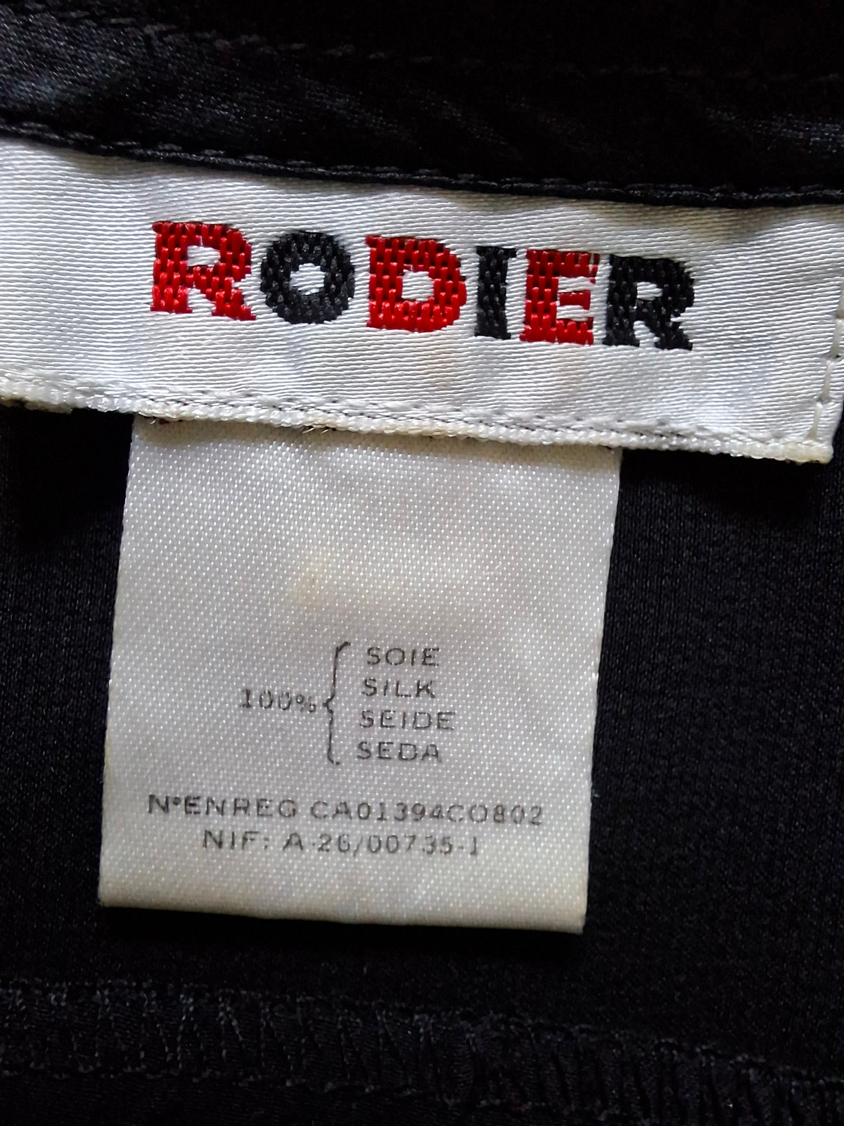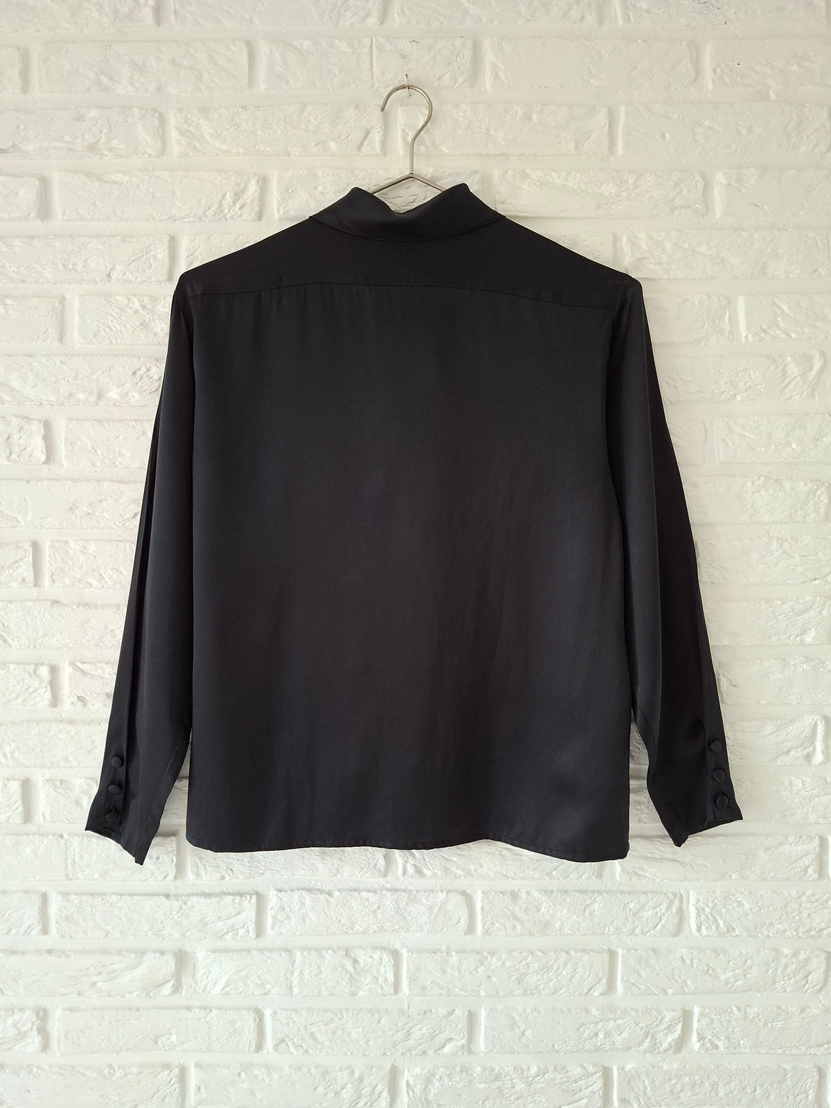 Top en soie noir Rodier.Double Boutonnage Finition fantaisie sur les poignets. Col drapée Épaules 44cm.Poitrine 50 cm.Longueur 56 cm.Taille38/40