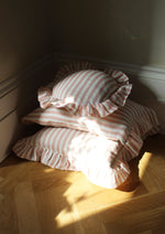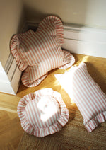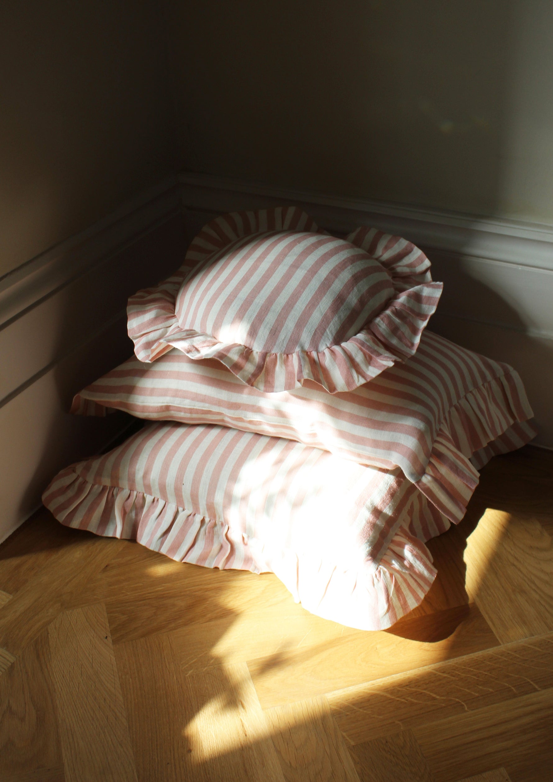 Crafted from premium European linen, this cushion cover is digitally printed with eco-friendly dyes finished with striped piping and ribbons at each corner. Each piece is 30 x 30 cm.