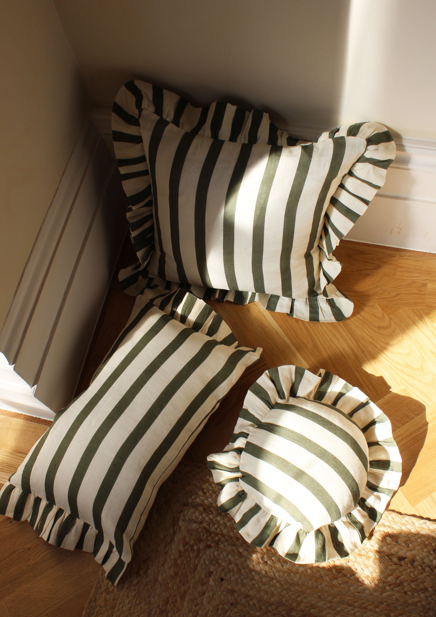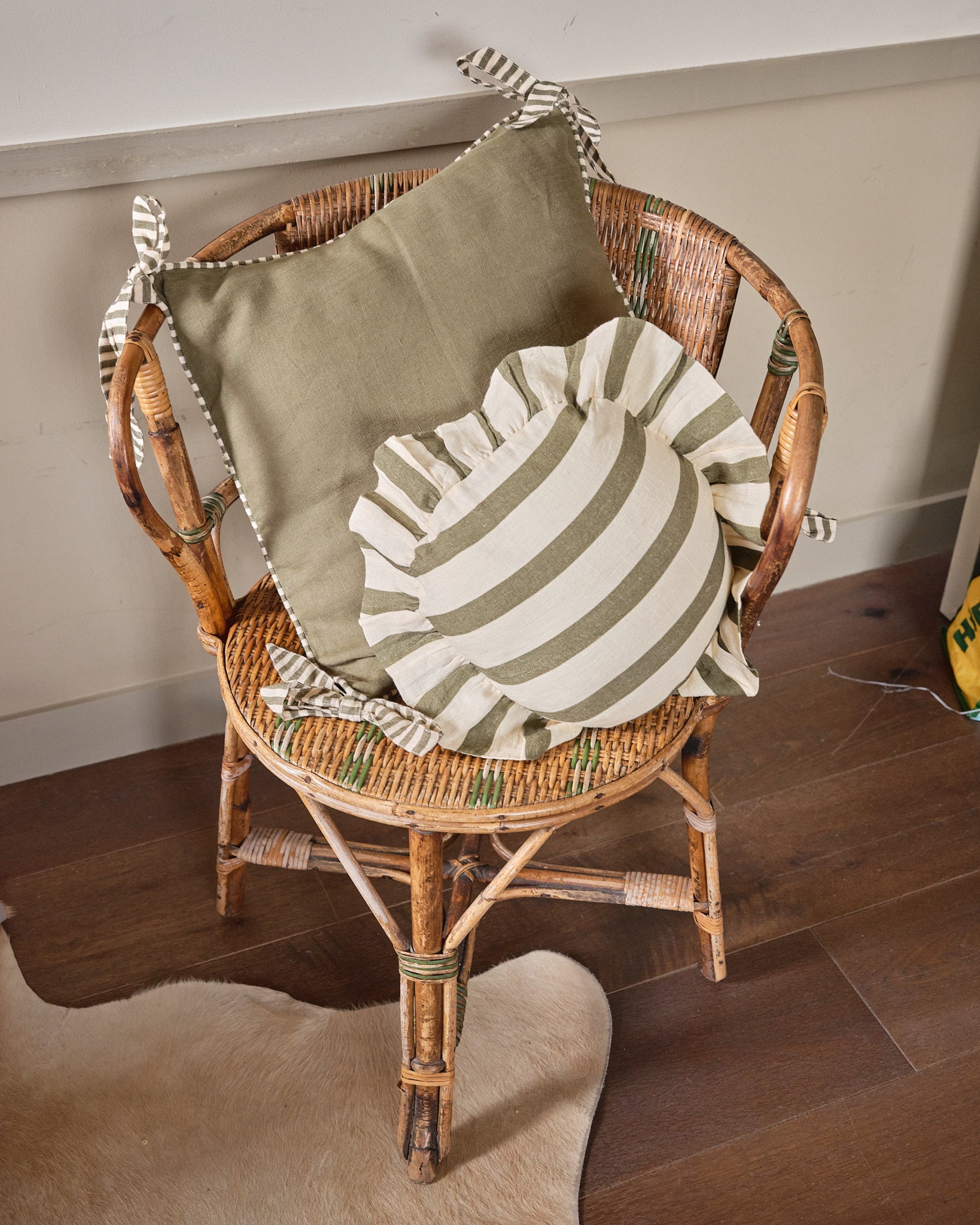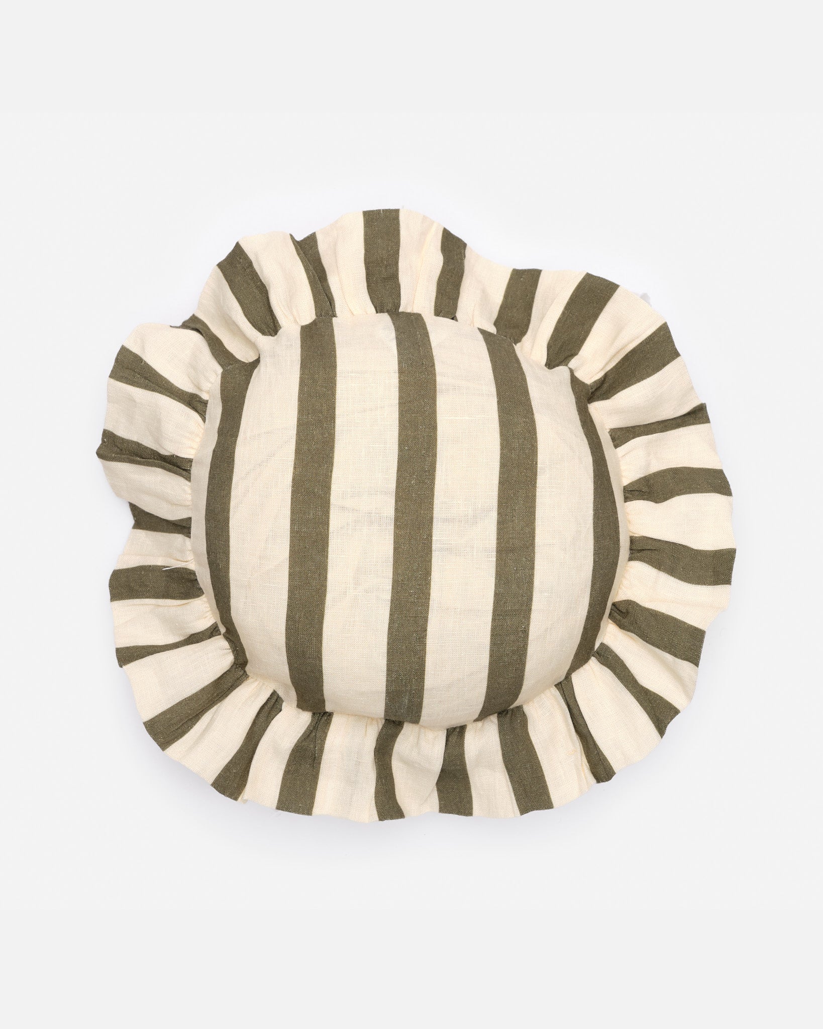 Olive & Ivory Thin Stripe Round Cushion Cover
