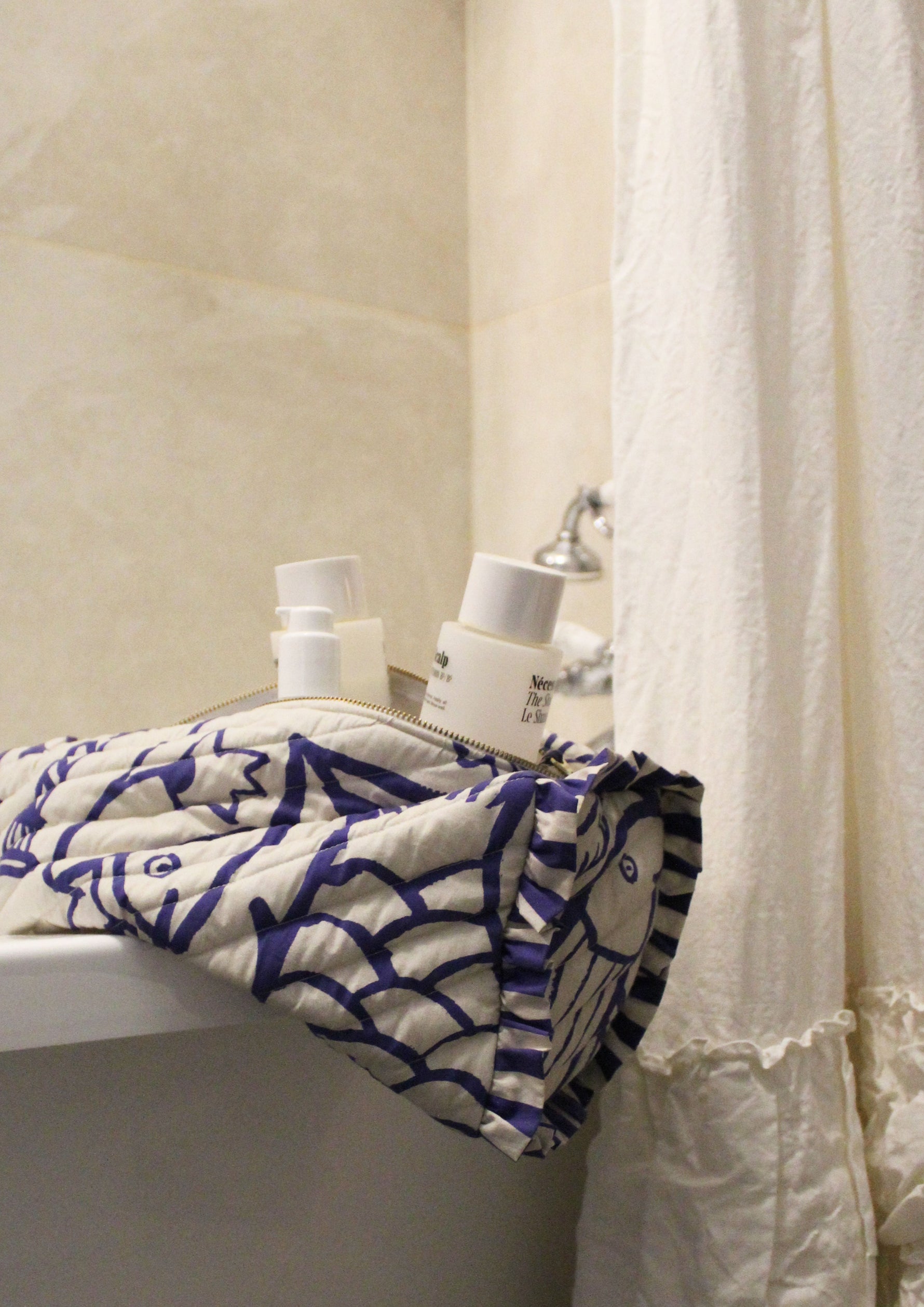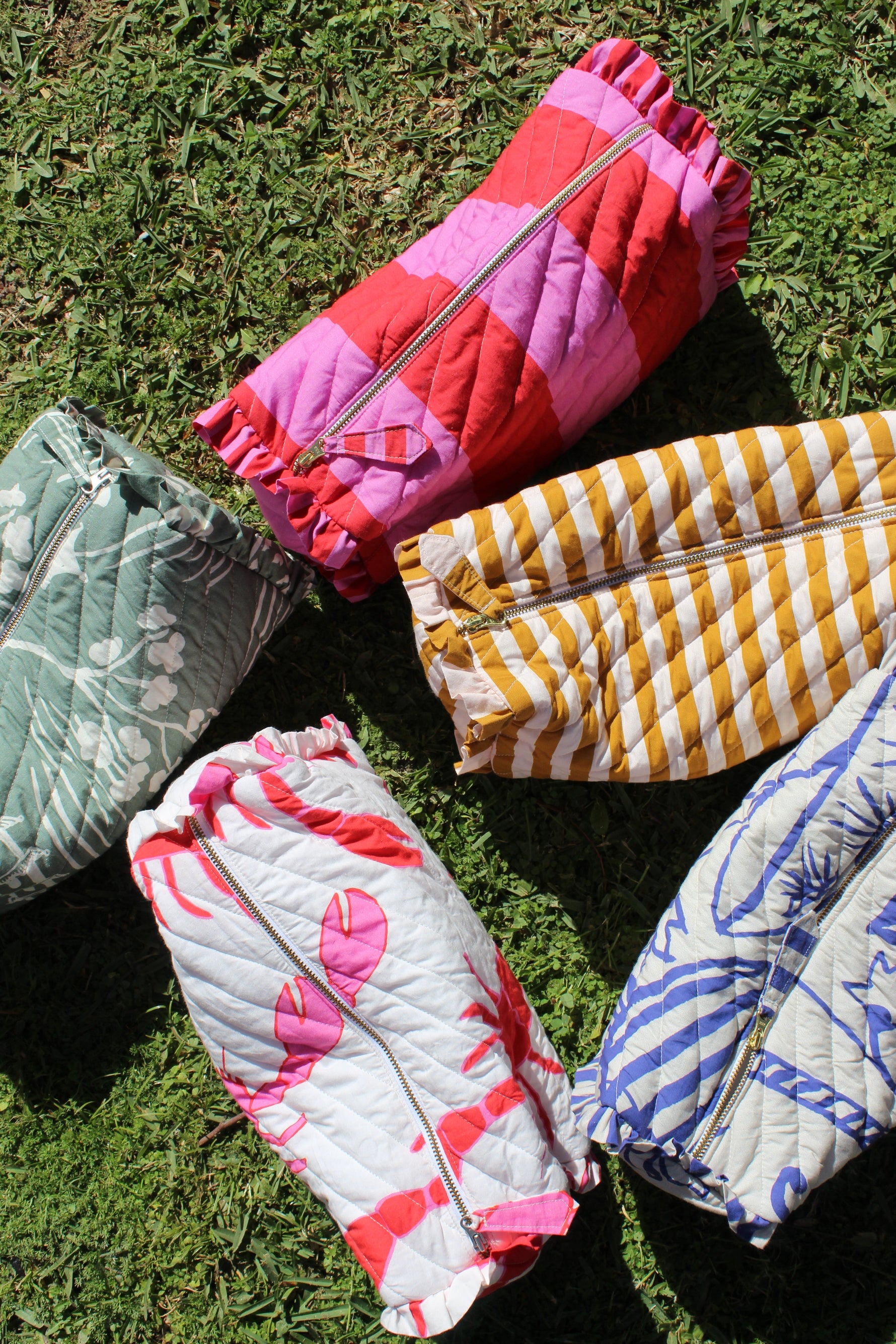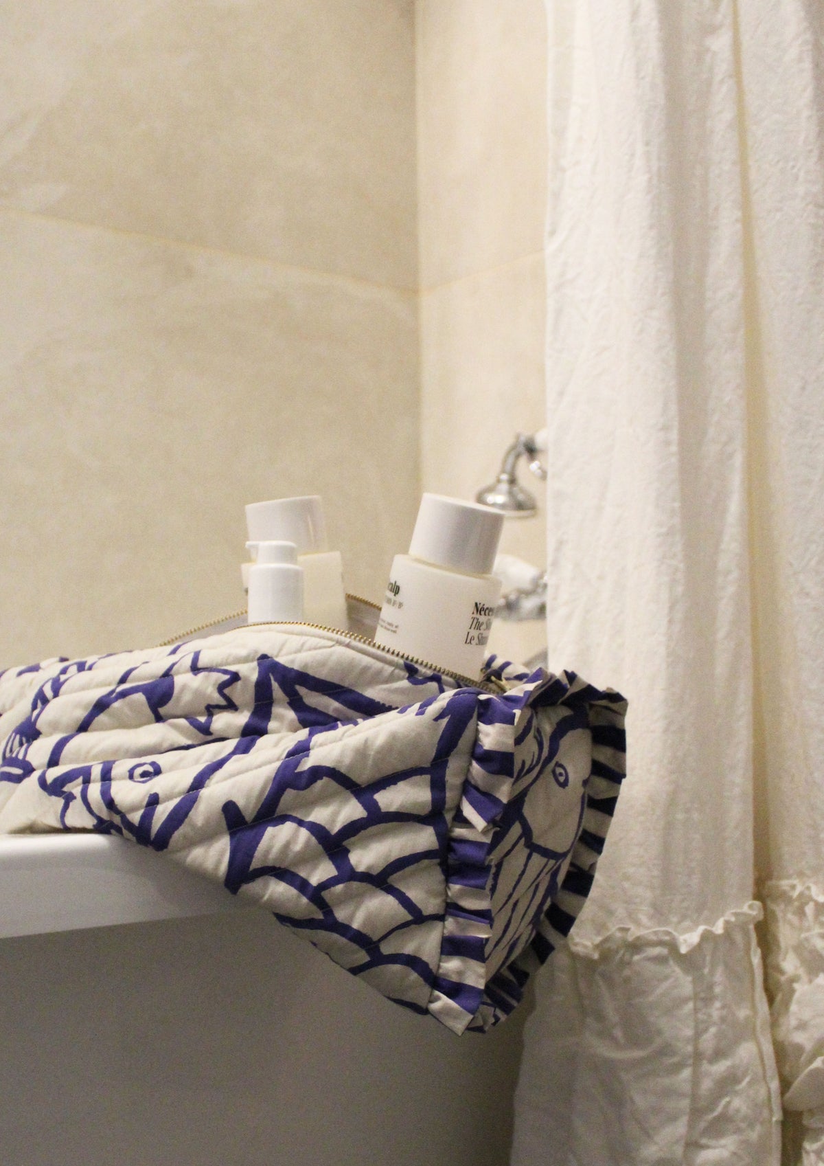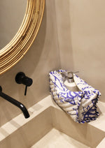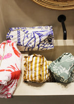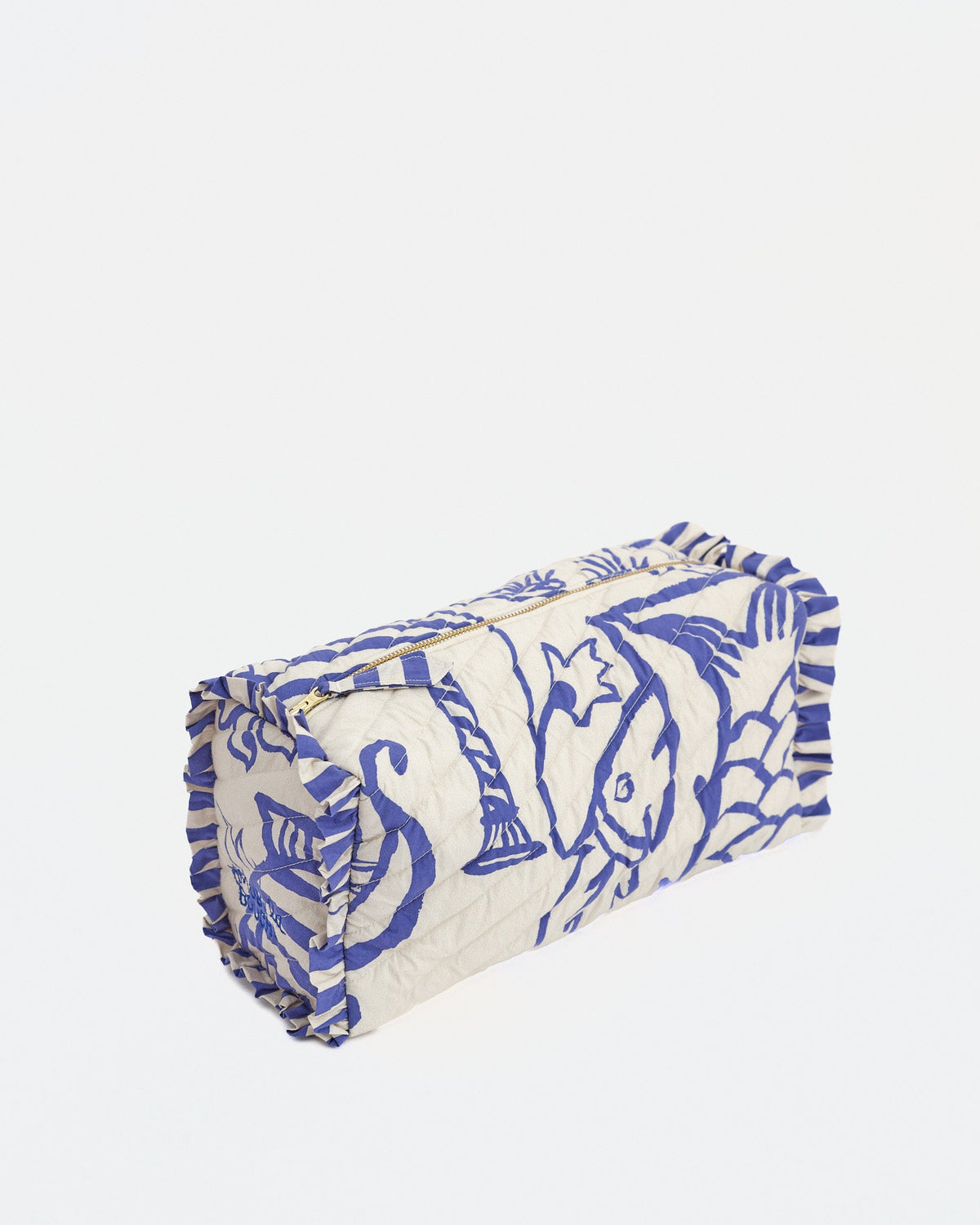 This makeup bag is made from 100% cotton and printed with eco-friendly dyes. Measuring 29 x 15 x 13 cm, it offers a perfect balance of style and practicality.