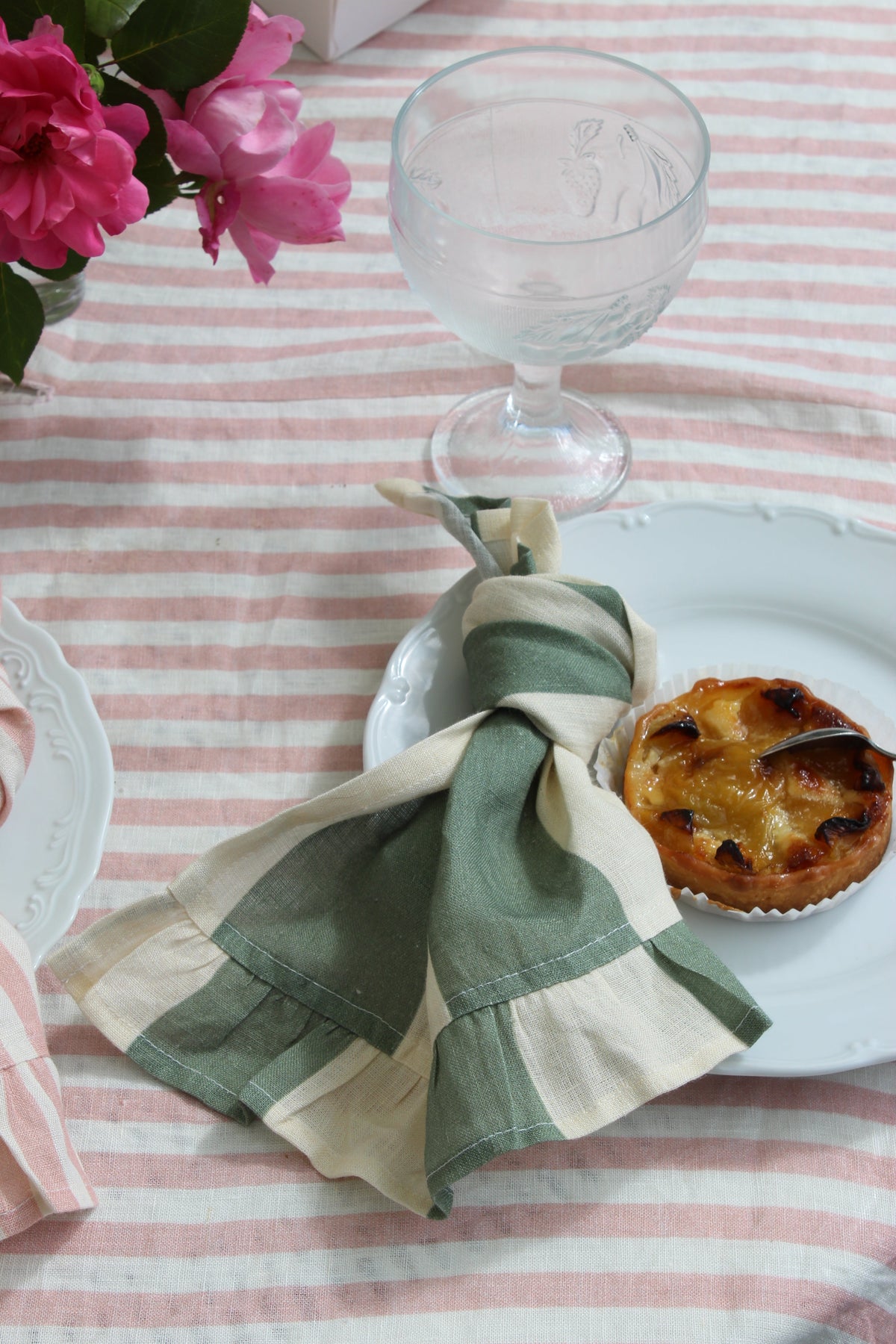 Crafted from premium European linen, these napkins are digitally printed with eco-friendly dyes. Each piece is 40 x 40cm including 4cm frill.