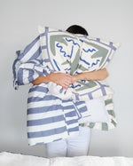 Thoughtfully made in small batches by skilled artisans using natural materials, eco-friendly pigment dyes, and recyclable packaging. The 100% linen fabric is derived from the flax plant—a resilient, eco-conscious crop that requires no irrigation or harmful pesticides and is often harvested by hand. This ensures every piece reflects our commitment to quality, elegance, and environmental responsibility.