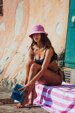 Rince-moi doucement à l'eau froide, j'aime le lavage délicat à la main avec un savon doux pour maintenir ma qualité. Sèche-moi à plat à l'abri de la chaleur, ne me repasse pas et ne me mets pas au sèche-linge. Évite mon contact avec des surfaces rugueuses, des crèmes, des lotions et des huiles, l'eau chlorée peut altérer mon aspect et mes couleurs. Ne me laisse pas humide et plié dans ton sac.